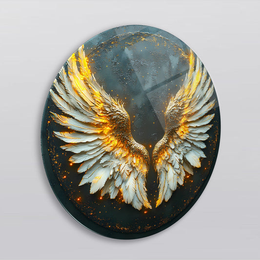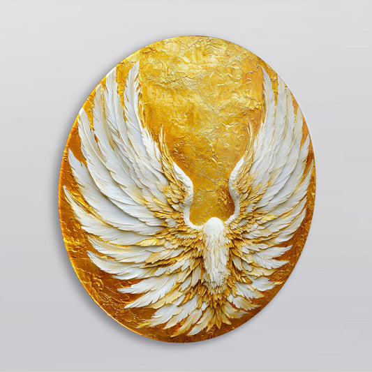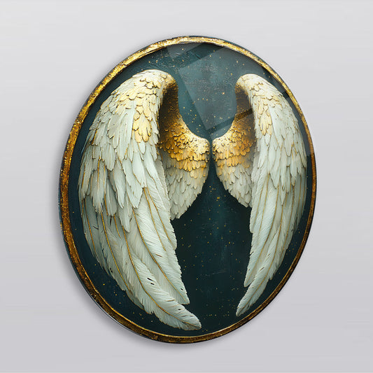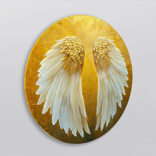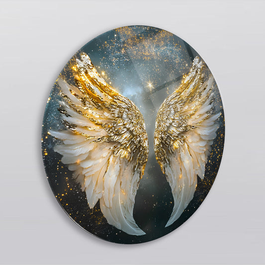 Gold Beyaz Melek Kanadı Yuvarlak Cam Tablo