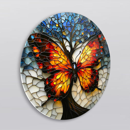 Mozaik Desen Renkli Kelebek Yuvarlak Cam Tablo