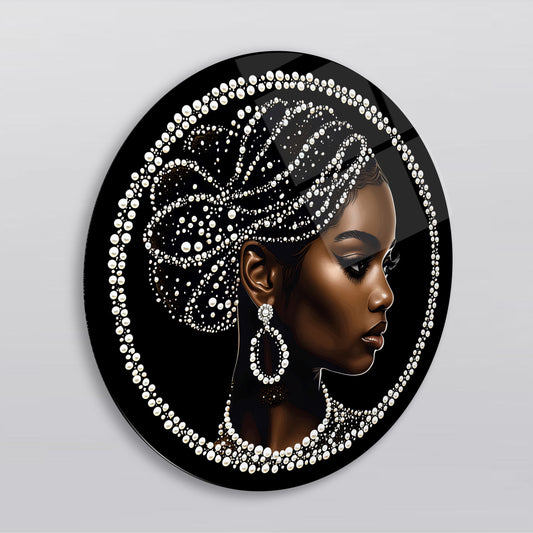 Mücevherli Siyahi Kadın Model Yuvarlak Cam Tablo