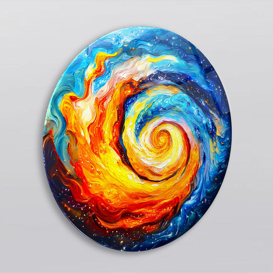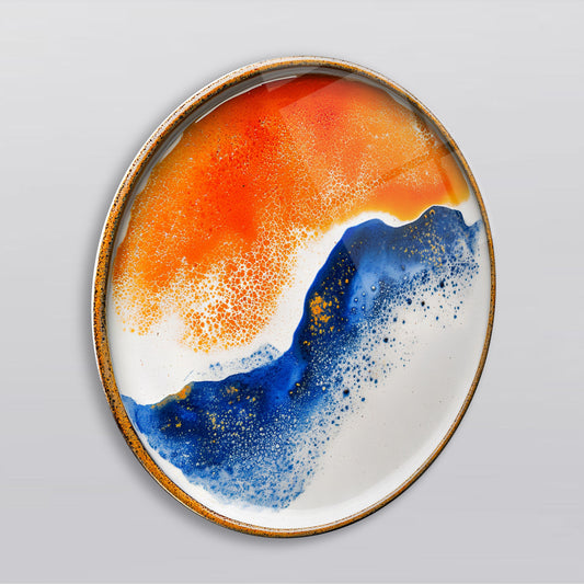 Mavi Turuncu Soyut Yuvarlak Cam Tablo