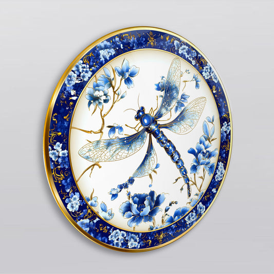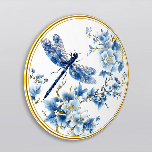 Mavi Çiçekler ve Yusufcuk Yuvarlak Cam Tablo