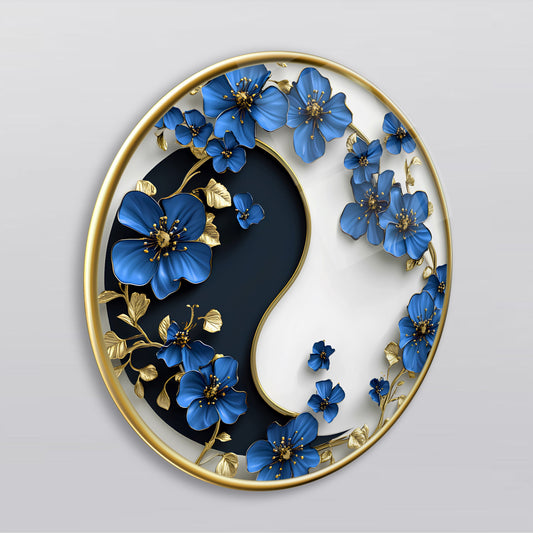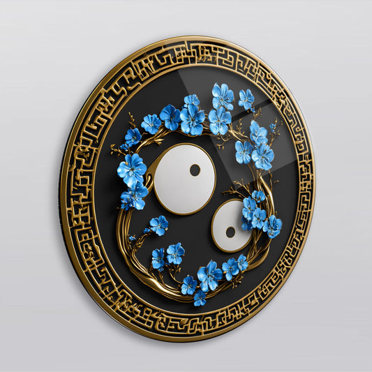 Çiçekli Ying Yang Yuvarlak Cam Tablo