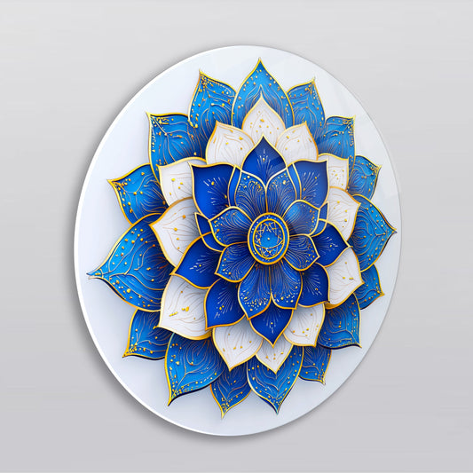Mavi Gold Mandala Yuvarlak Cam Tablo