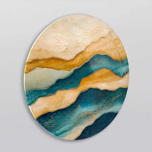 Sarı Mavi Soyut Yuvarlak Cam Tablo