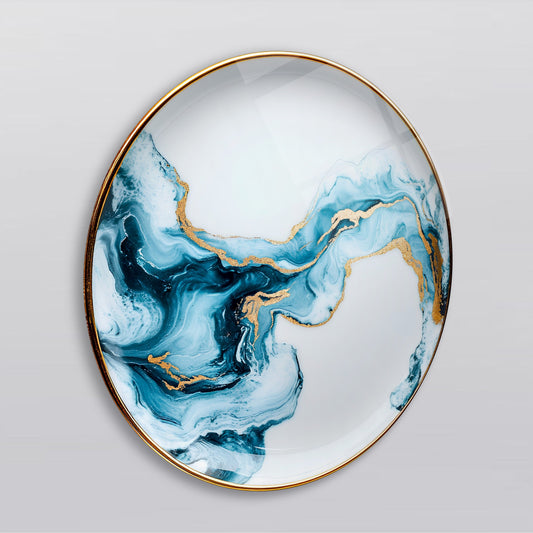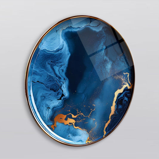 Mavi Mermer Desen Soyut Yuvarlak Cam Tablo