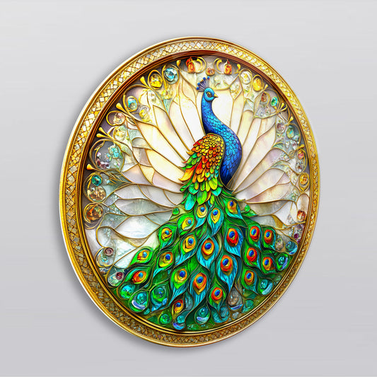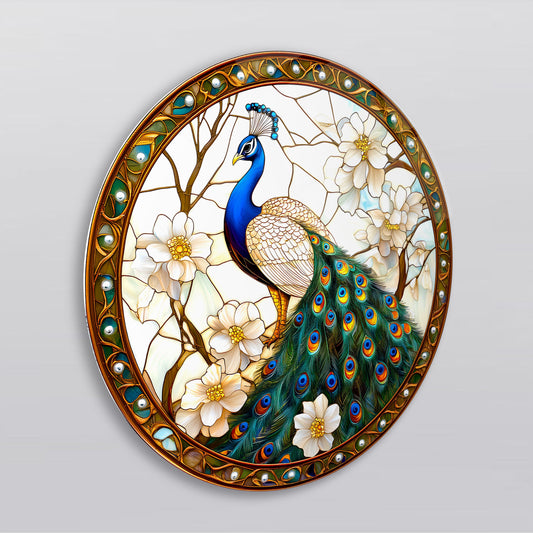 Vitray Desen Tavus Kuşu Yuvarlak Cam Tablo