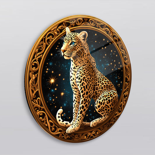 Gold Leopar Yuvarlak Cam Tablo