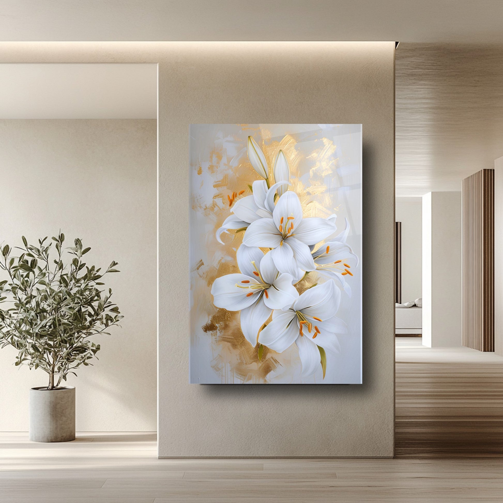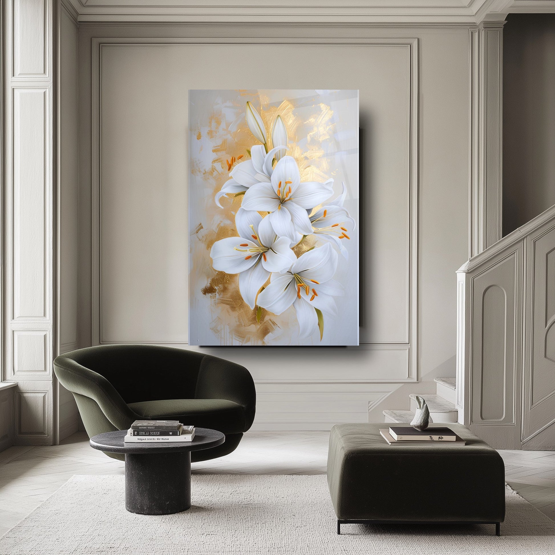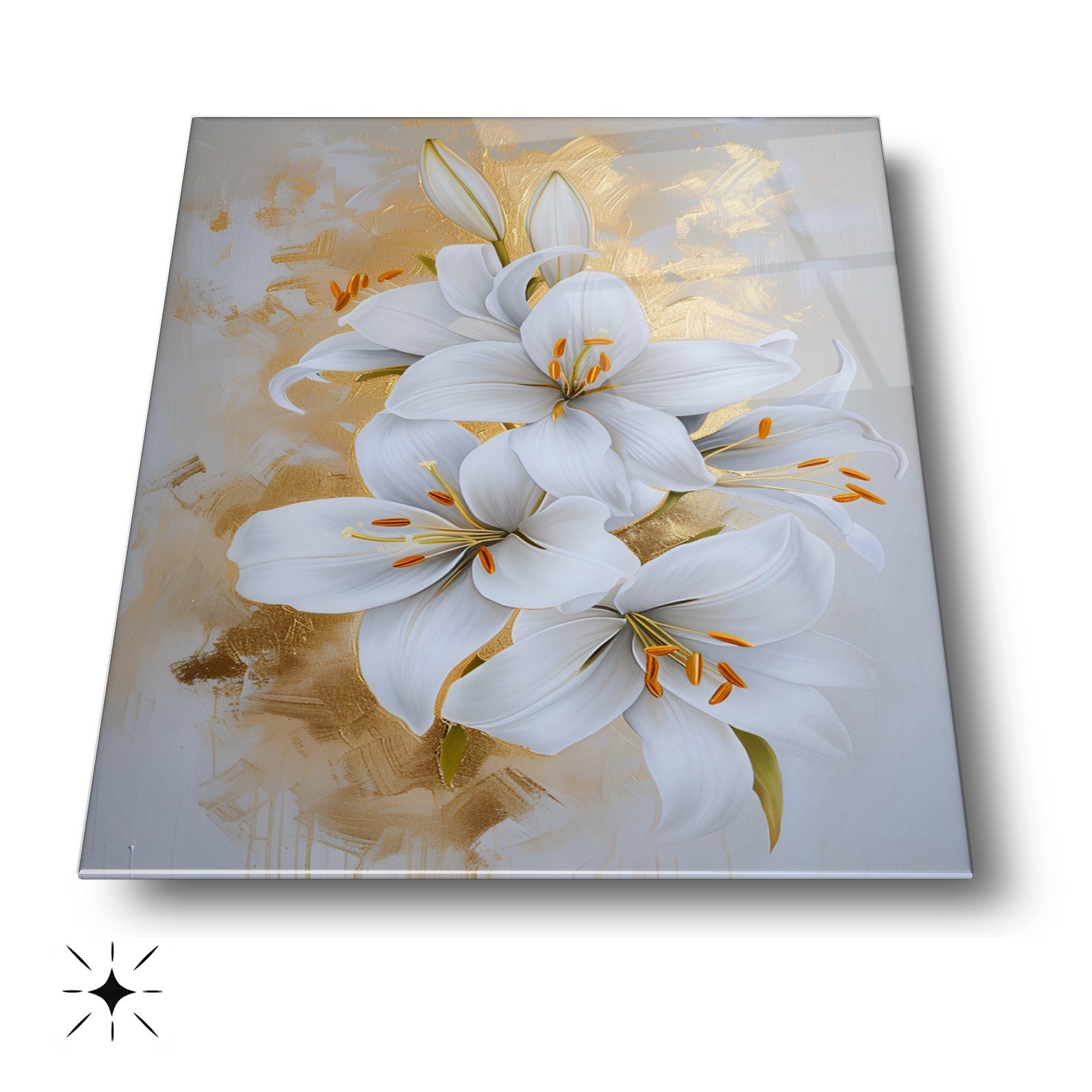 Bu etkileyici tablo, beyaz arka plan üzerinde 3D boyutlu gold detaylı çiçek figürleriyle dikkat çekiyor. Modern tasarımı, mekânınıza zarif bir dokunuş katıyor. 4 mm kalınlığındaki ultra-clear temperli cam, standart camlara göre 10 kat daha dayanıklıdır ve rodajlanmış kenarlarıyla güvenli kullanım sağlar. UV dijital baskı teknolojisiyle uygulanan yüksek çözünürlüklü baskı, renklerin solmasını engeller ve uzun ömürlü kullanım sunar. Kolay montajı sayesinde hemen duvarınıza asılabilir. Salon, oturma odası veya ofis gibi farklı alanlarda şıklığıyla öne çıkar. Evinize veya iş yerinize modern bir atmosfer kazandırmak için bu tablo mükemmel bir tercih olacaktır.