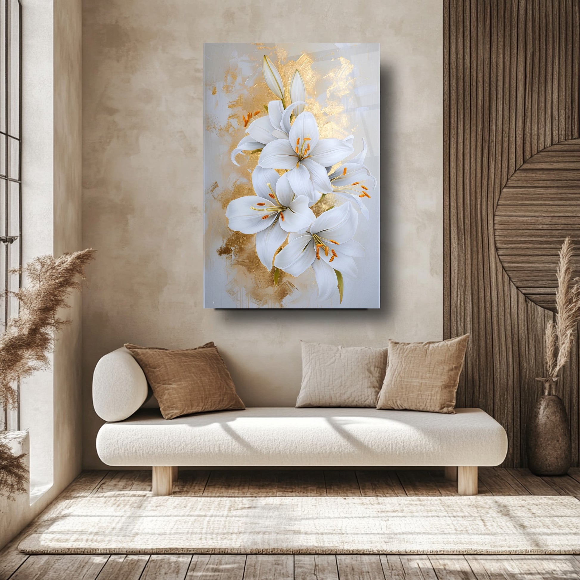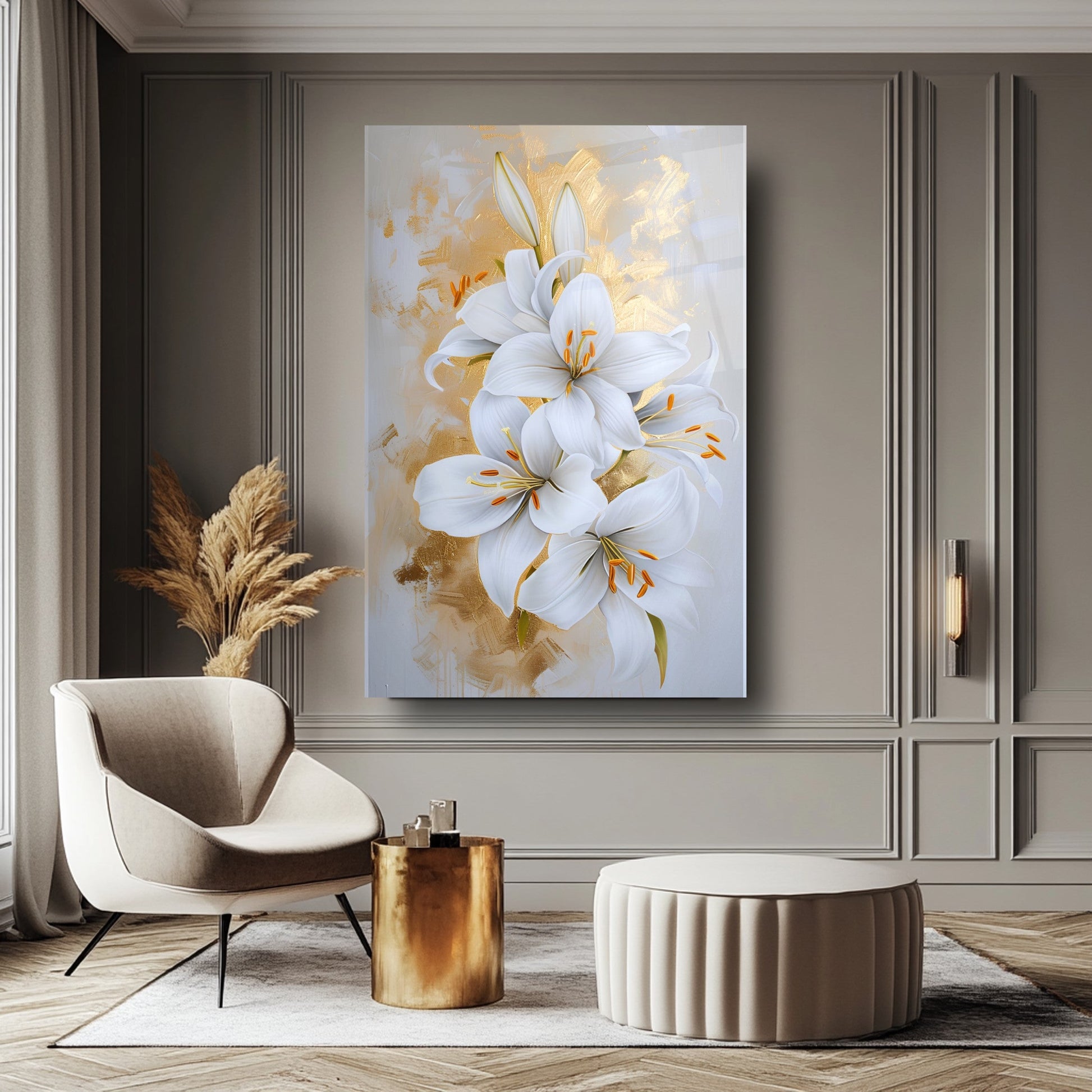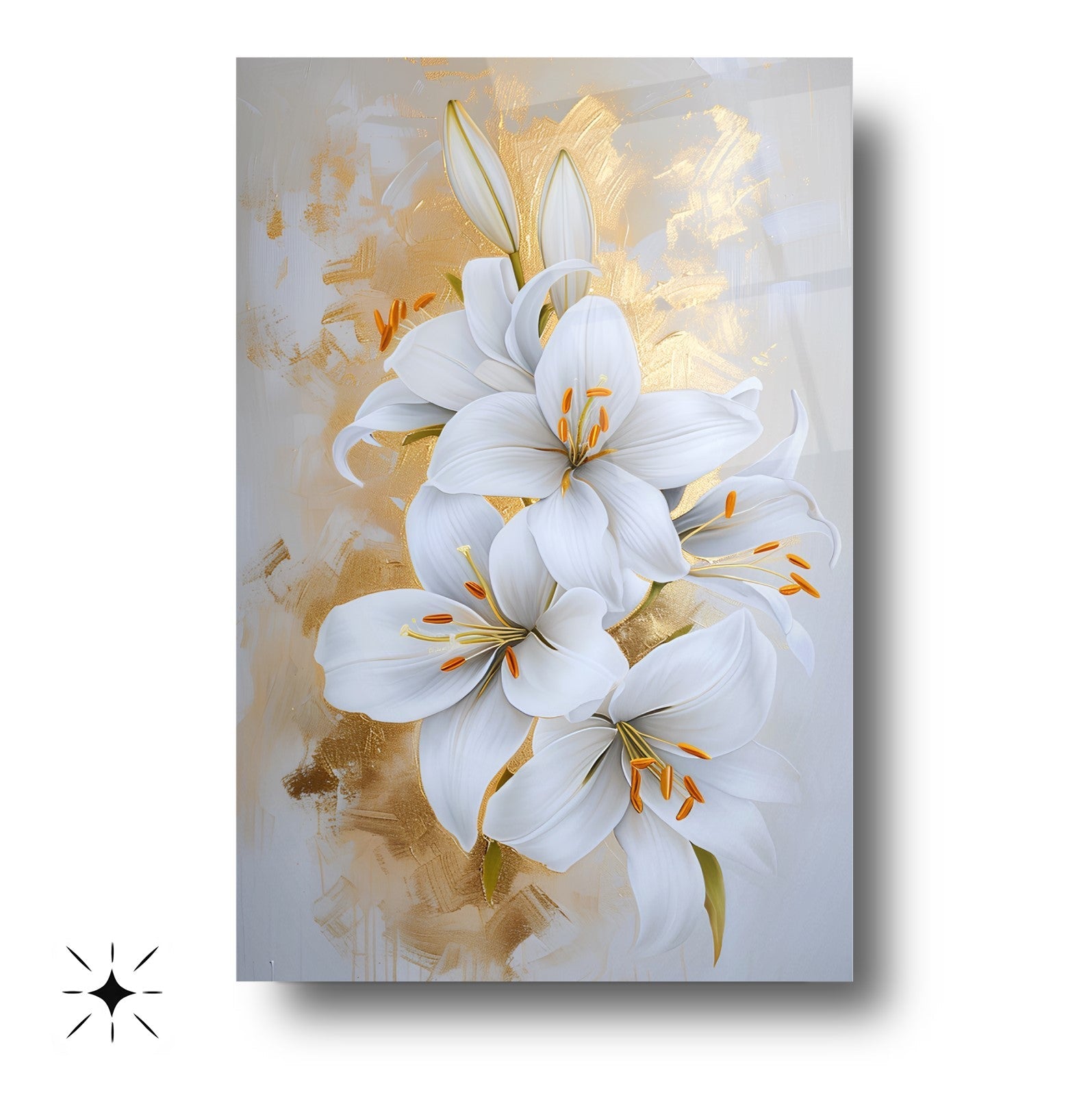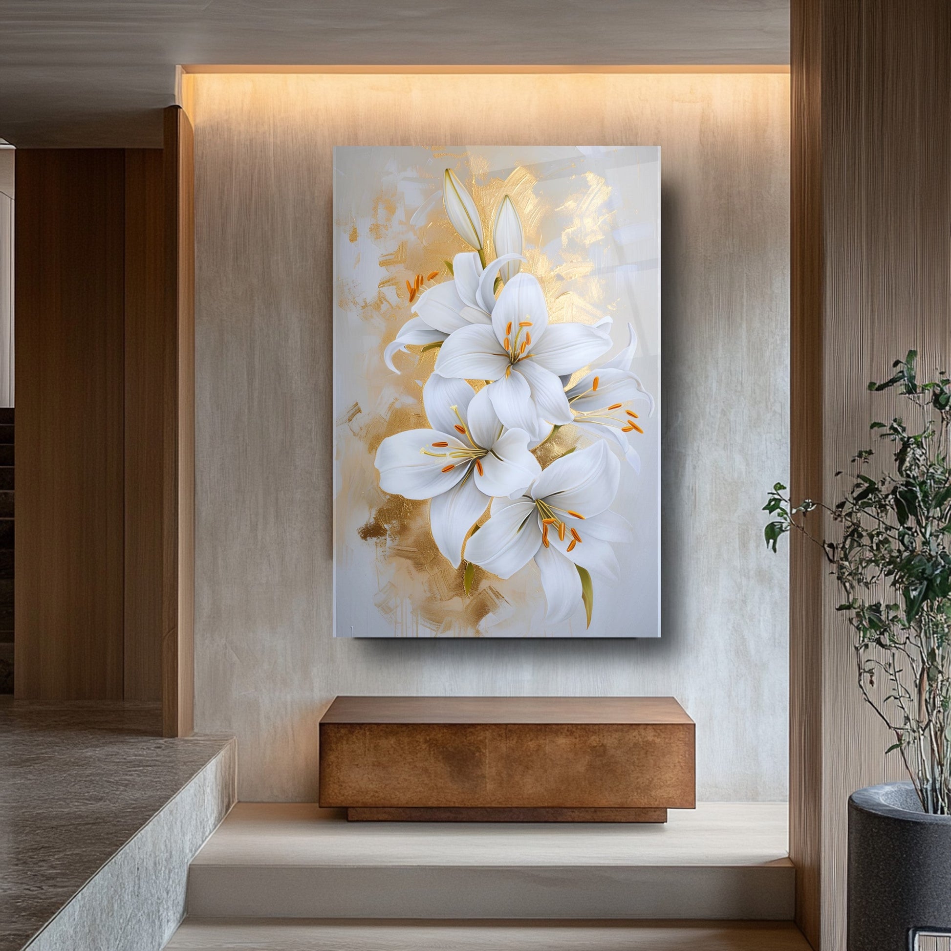 Bu etkileyici tablo, beyaz arka plan üzerinde 3D boyutlu gold detaylı çiçek figürleriyle dikkat çekiyor. Modern tasarımı, mekânınıza zarif bir dokunuş katıyor. 4 mm kalınlığındaki ultra-clear temperli cam, standart camlara göre 10 kat daha dayanıklıdır ve rodajlanmış kenarlarıyla güvenli kullanım sağlar. UV dijital baskı teknolojisiyle uygulanan yüksek çözünürlüklü baskı, renklerin solmasını engeller ve uzun ömürlü kullanım sunar. Kolay montajı sayesinde hemen duvarınıza asılabilir. Salon, oturma odası veya ofis gibi farklı alanlarda şıklığıyla öne çıkar. Evinize veya iş yerinize modern bir atmosfer kazandırmak için bu tablo mükemmel bir tercih olacaktır.