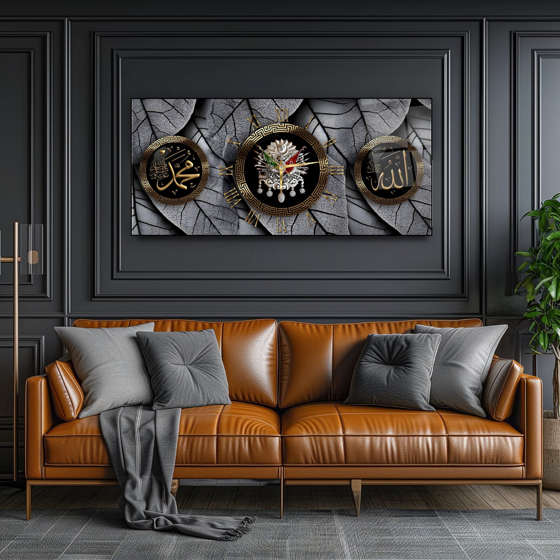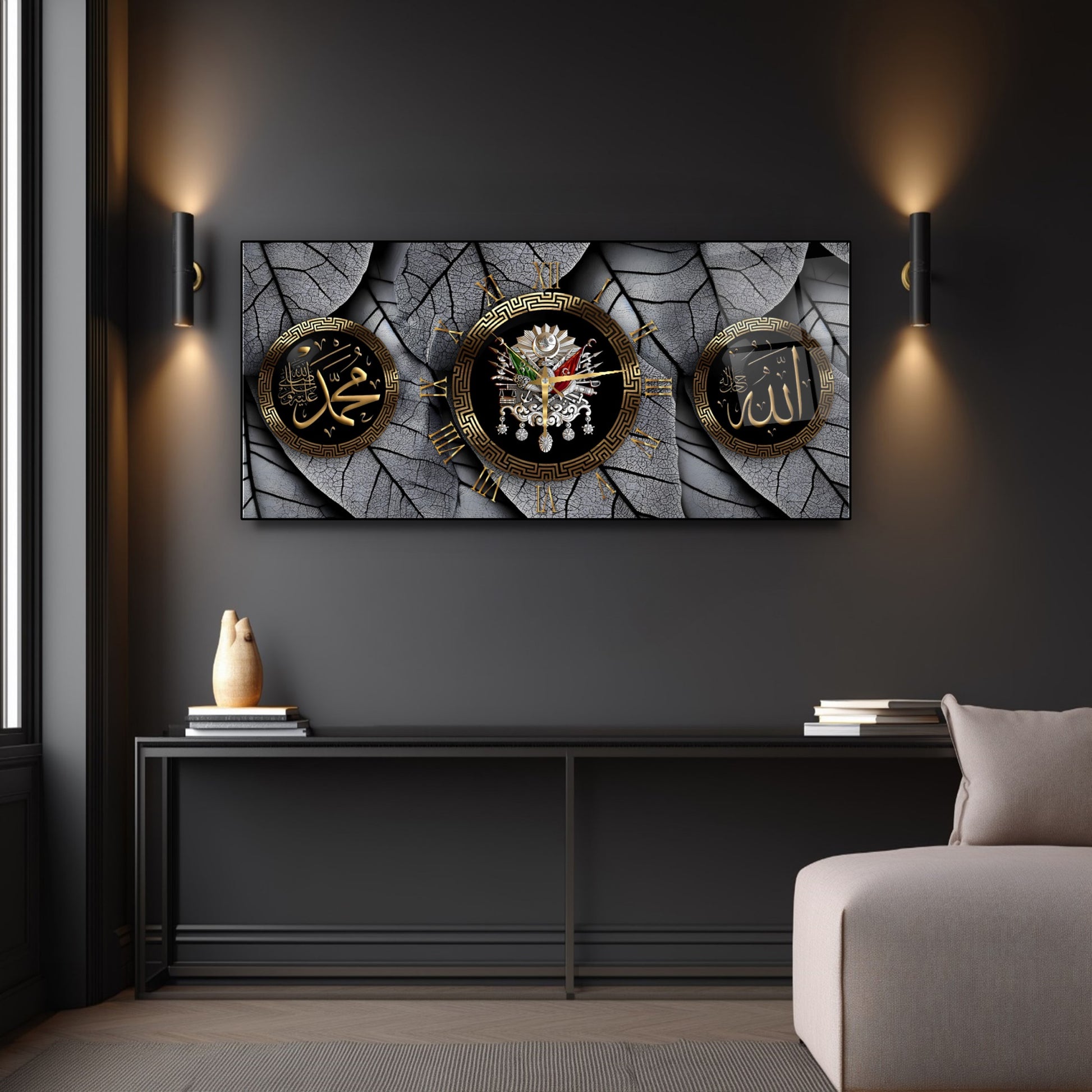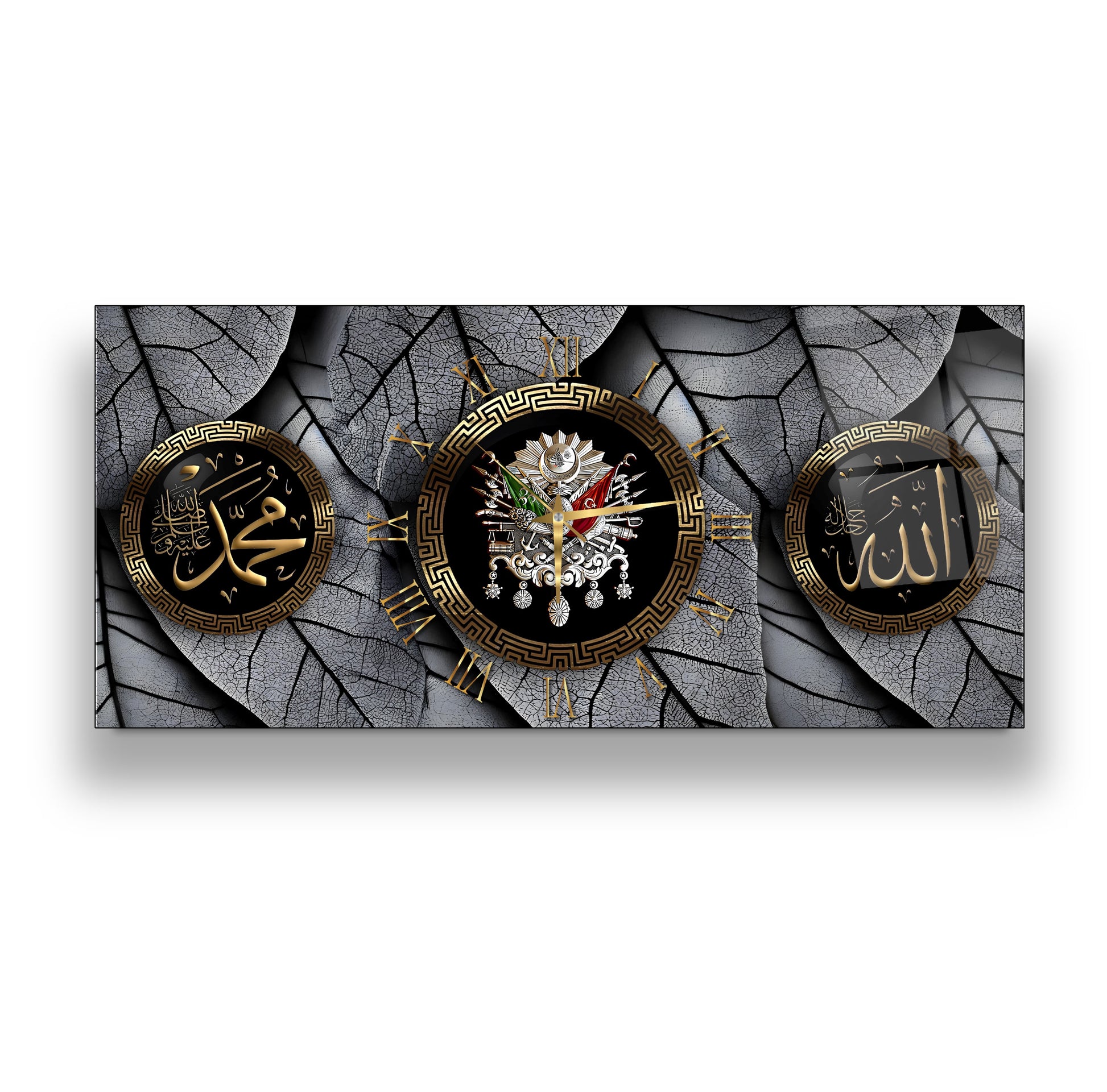 Allah ve Muhammed Yazılı Osmanlı Arması Cam Duvar Saati