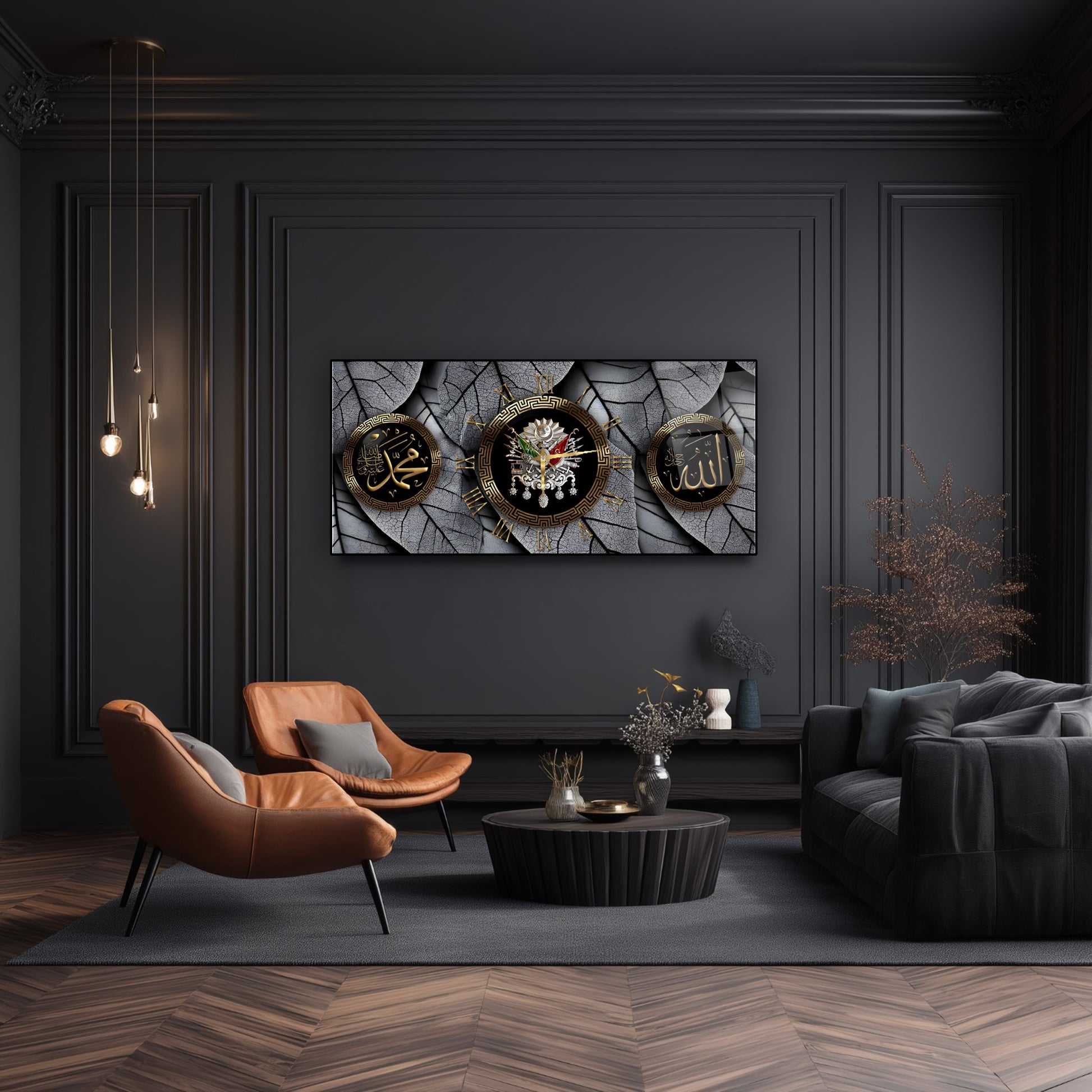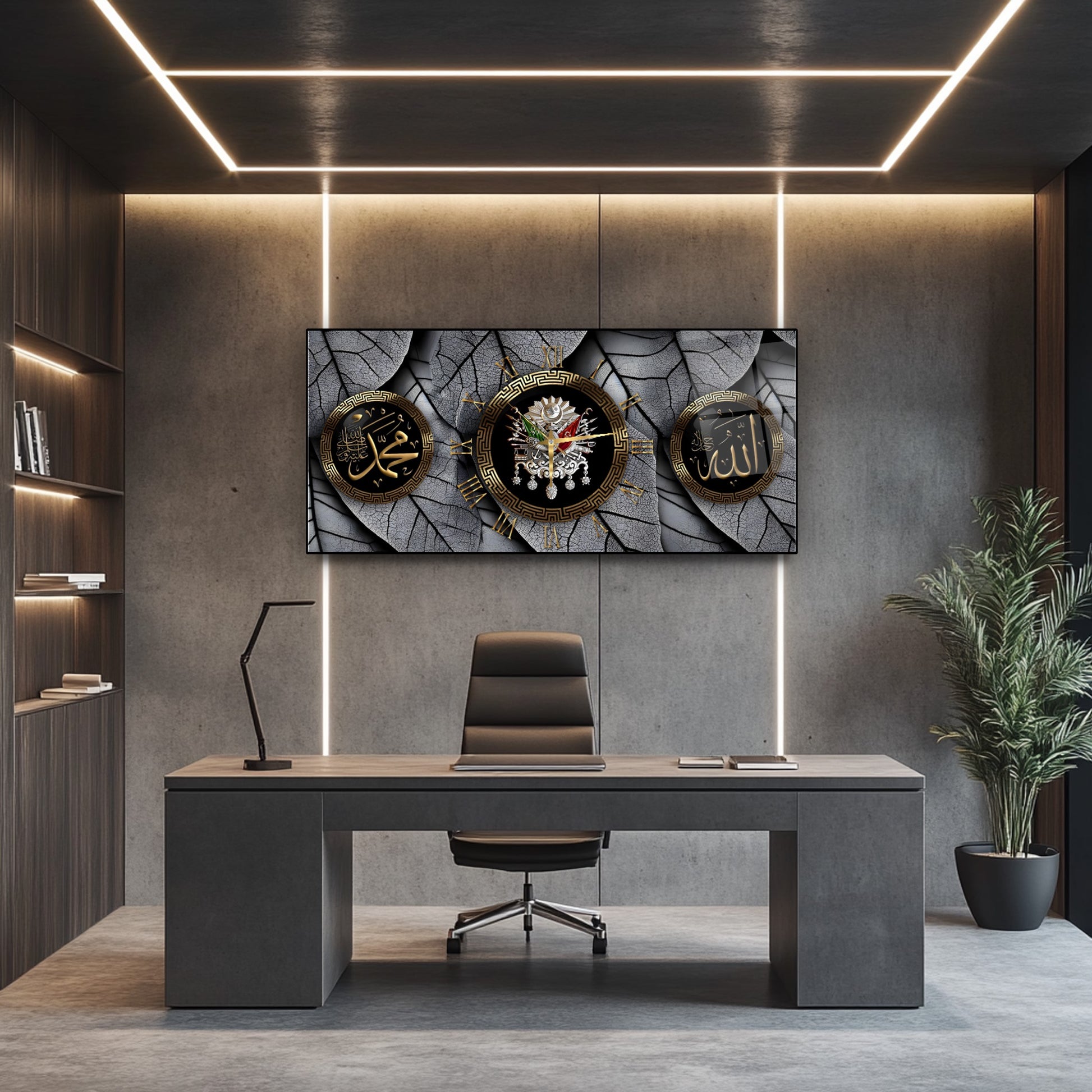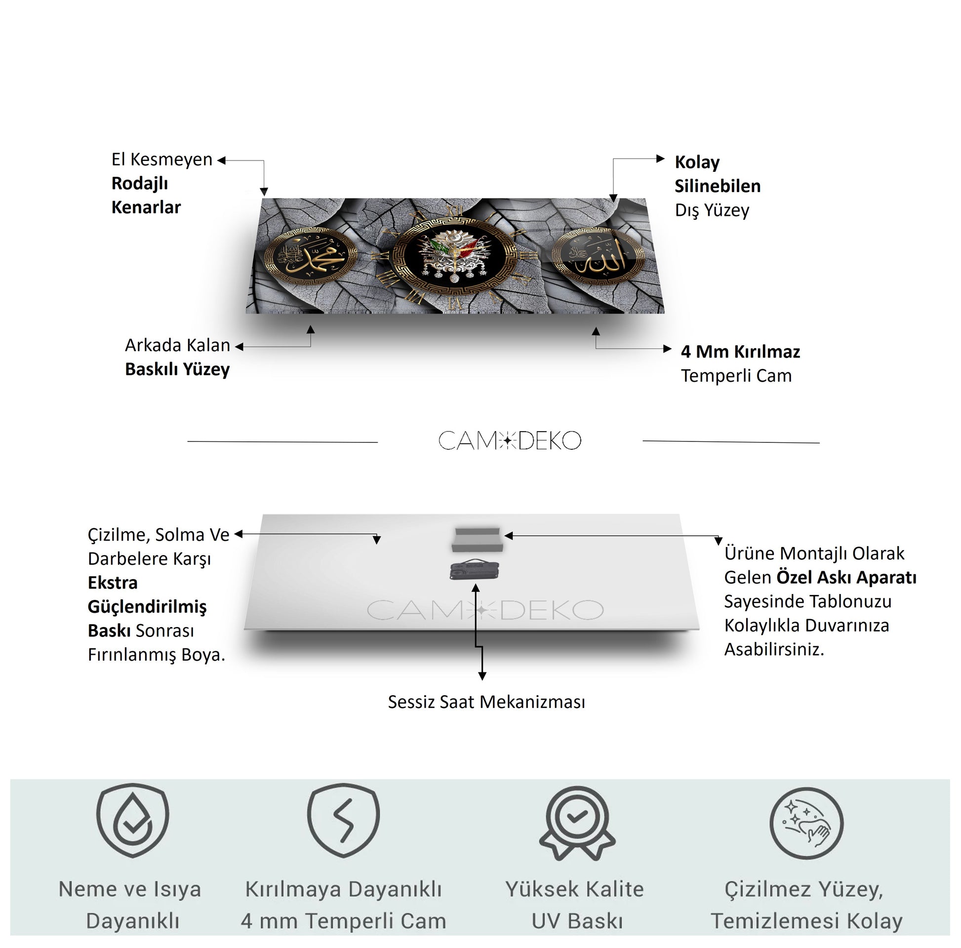 Allah ve Muhammed Yazılı Osmanlı Arması Cam Duvar Saati