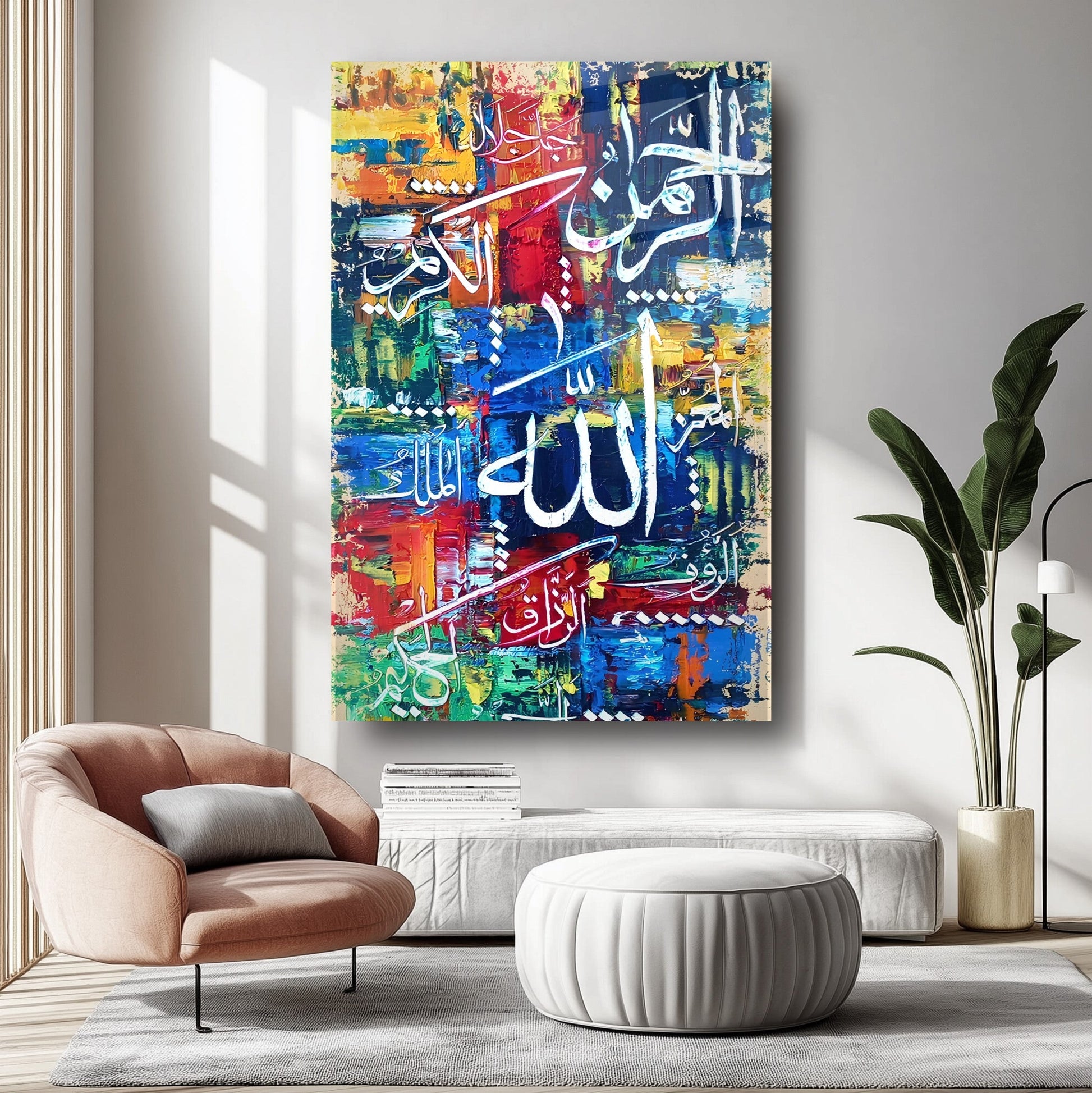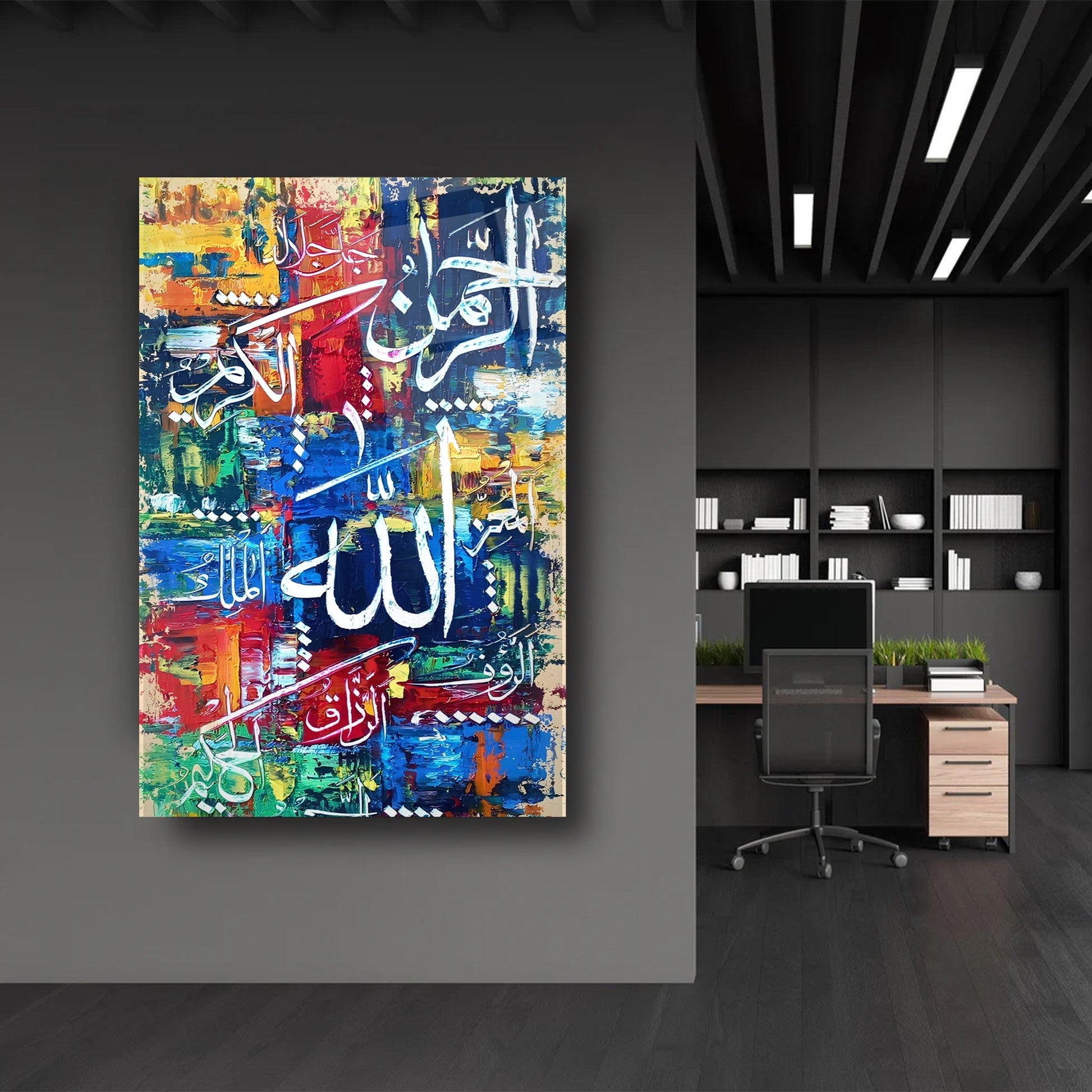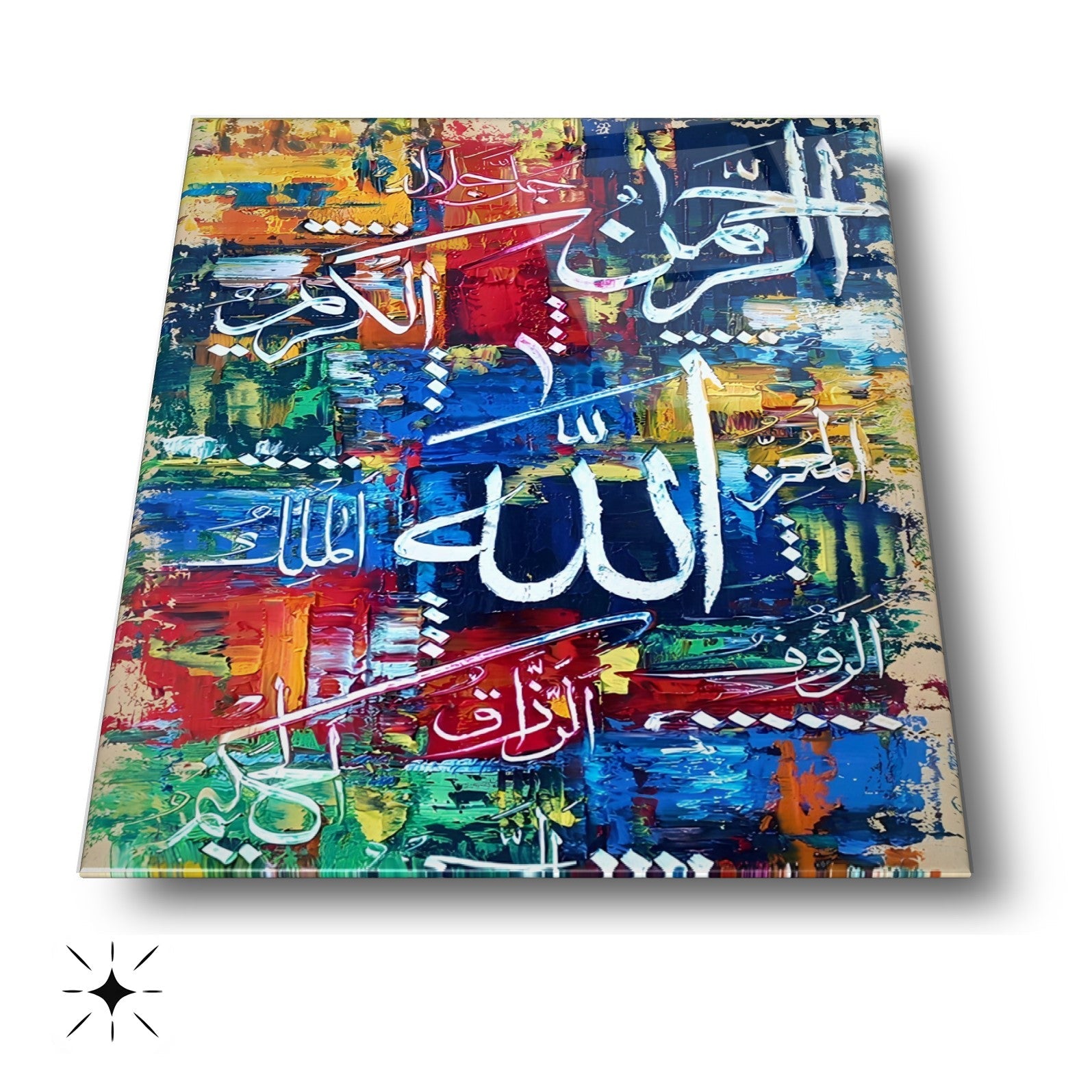 Mekanlarınıza Manevi Bir Huzur Katın: Allah Yazılı Renkli Dini İslami Cam Tablo