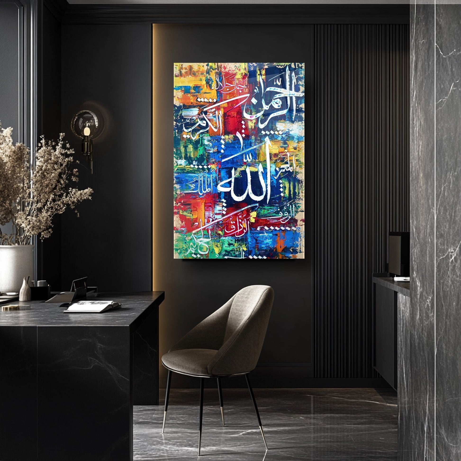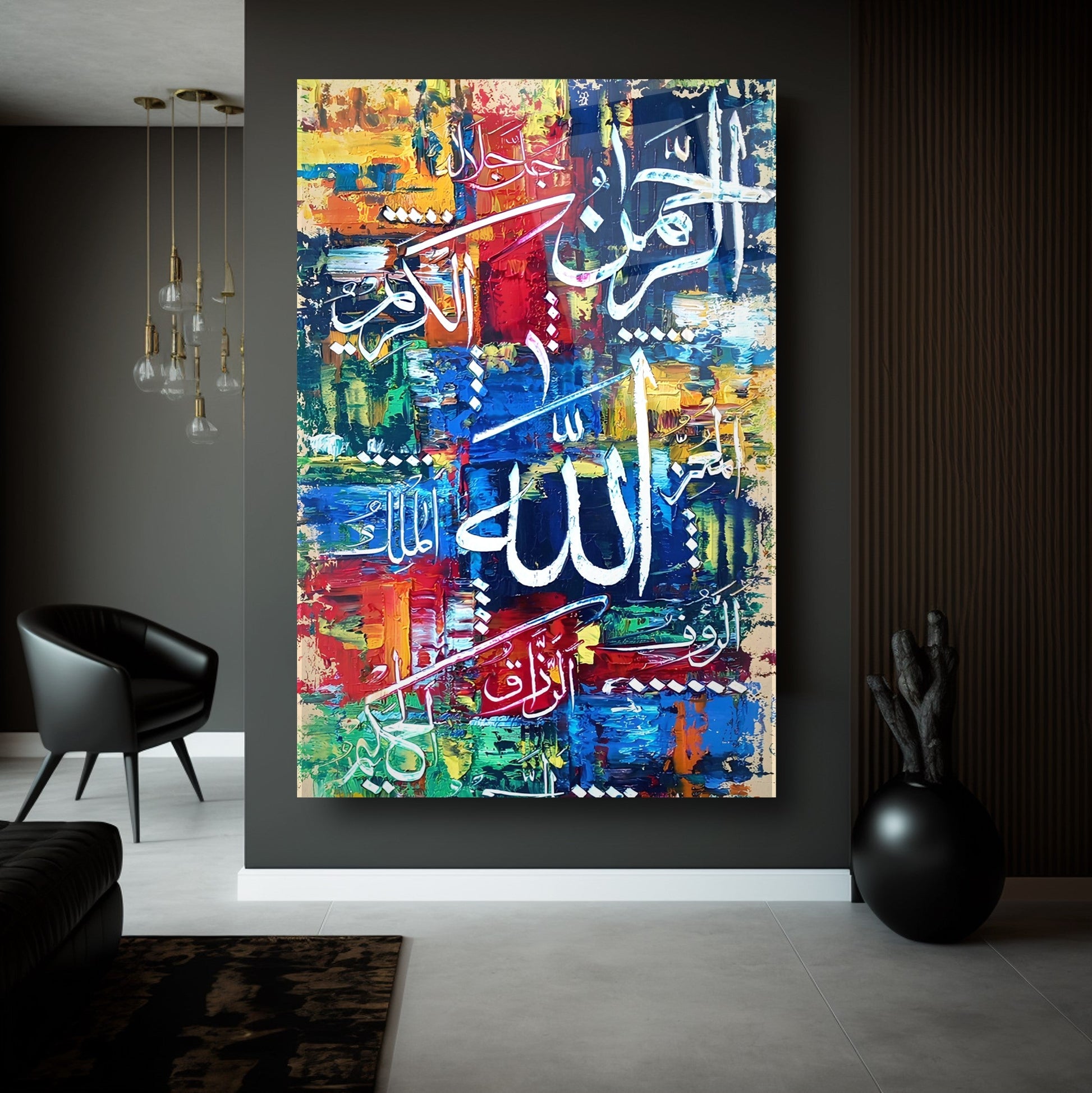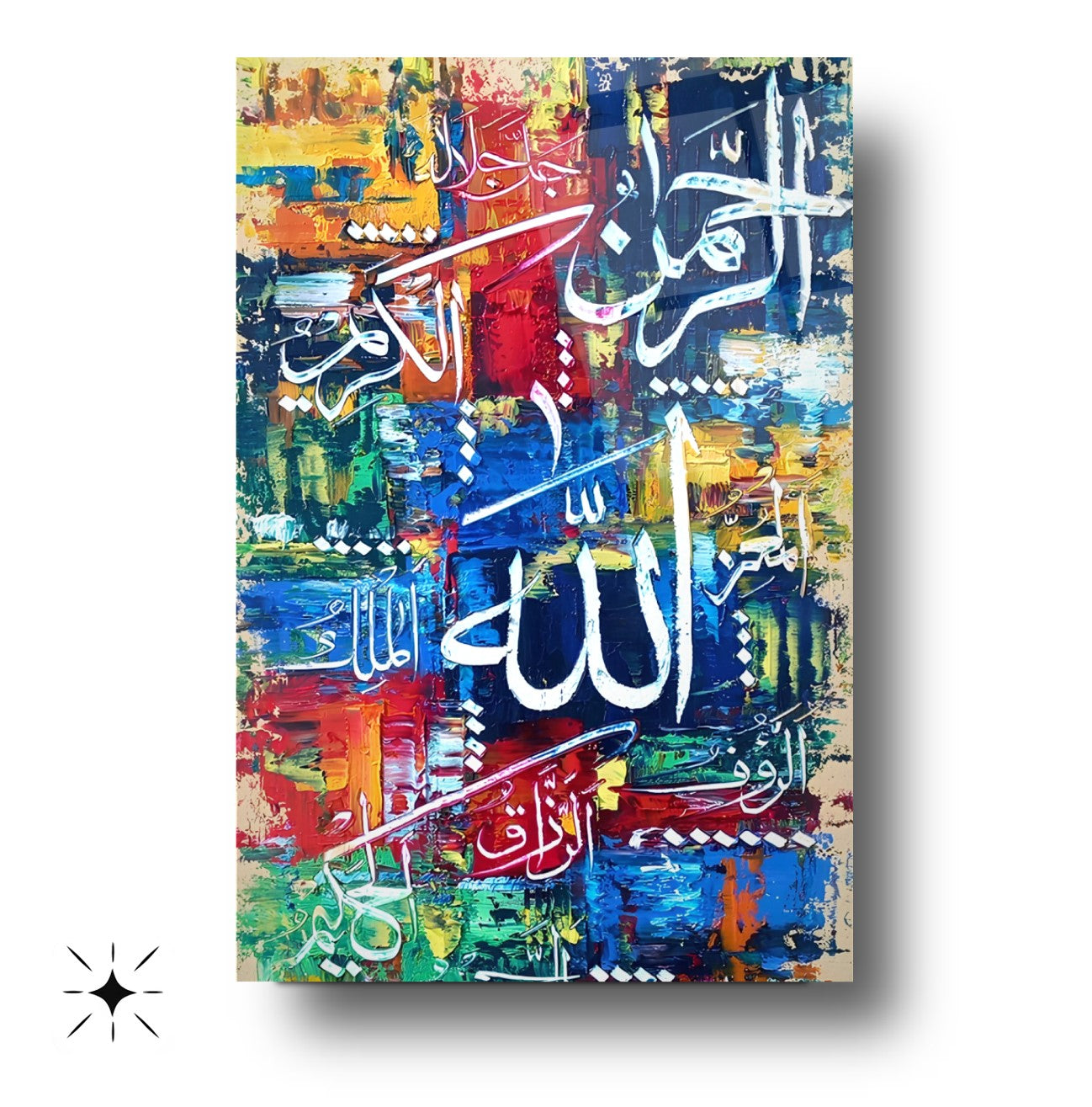 Mekanlarınıza Manevi Bir Huzur Katın: Allah Yazılı Renkli Dini İslami Cam Tablo