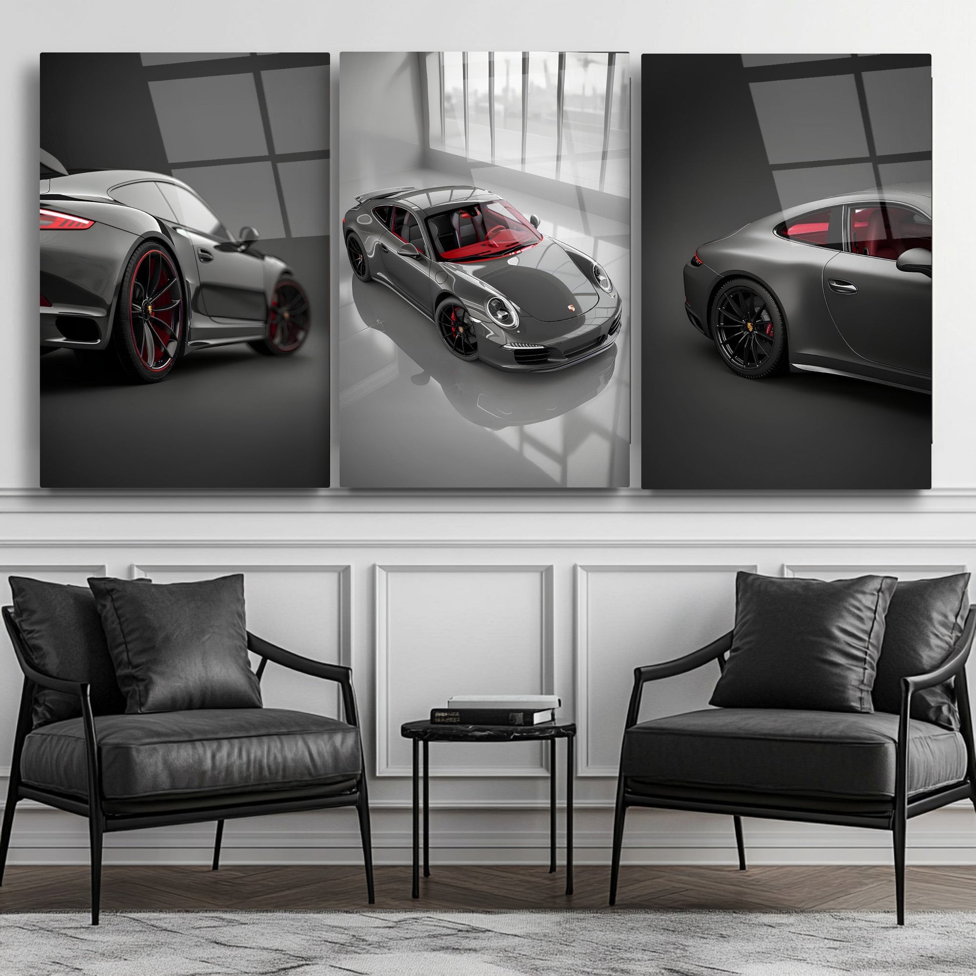 Spor otomobil tutkunlarına özel tasarlanan bu üçlü cam tablo seti, araba galerileri, oto showroom’ları ve modern ofisler için çarpıcı bir dekorasyon öğesidir. Gri ve kırmızı tonlardaki lüks spor araba görselleri, güçlü bir dinamizm ve estetik sunar. Kırılmaz temperli cam yapısı sayesinde uzun ömürlü ve dayanıklıdır. UV baskı teknolojisiyle renkleri canlılığını korur. Cam tablo şıklığı, modern mekanlara prestijli bir hava katar. Spor, hız ve tasarım tutkusu bu özel üçlü set ile duvarlarınıza yansır.