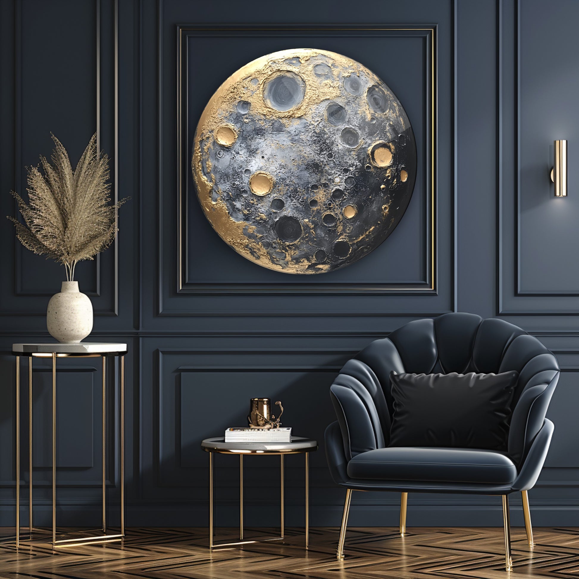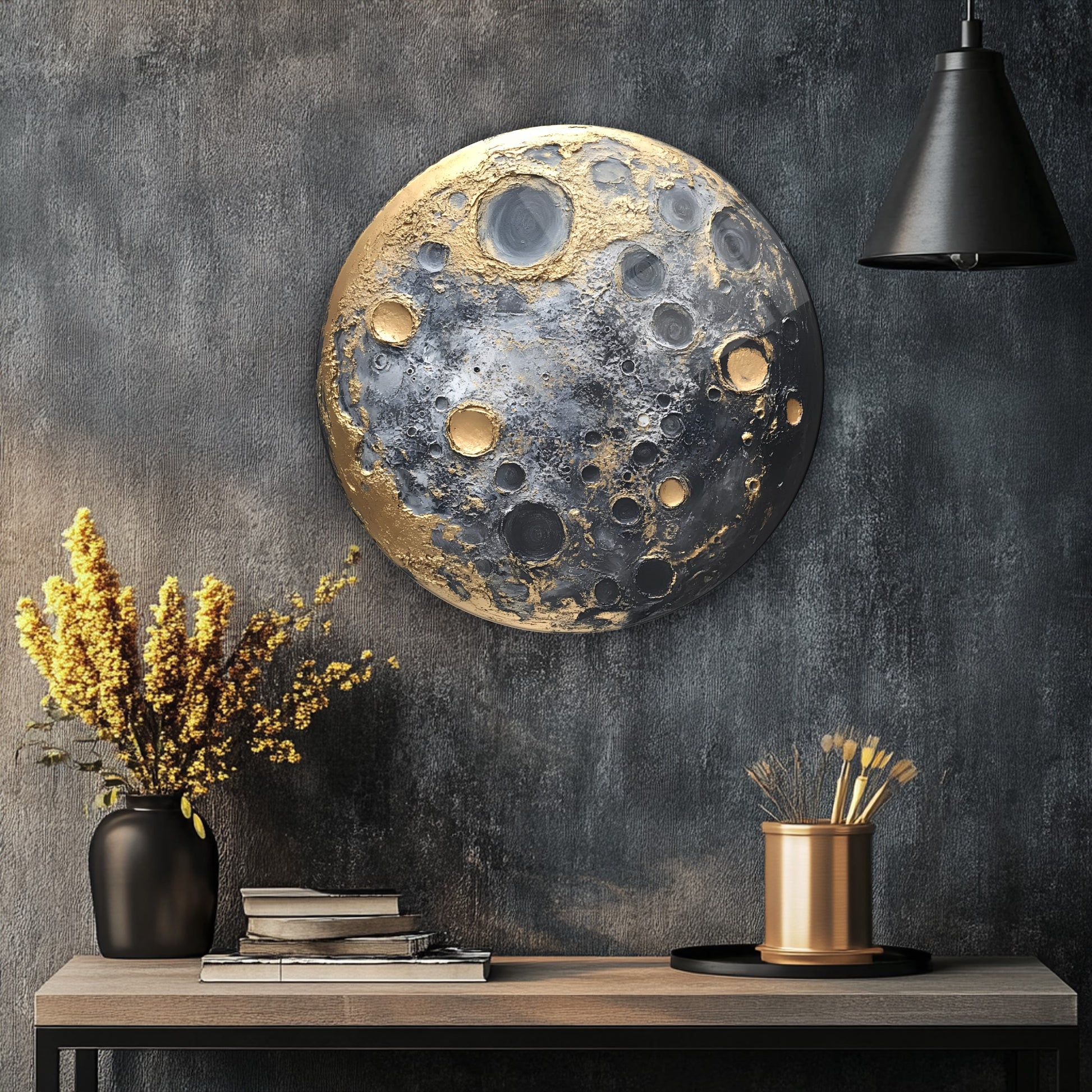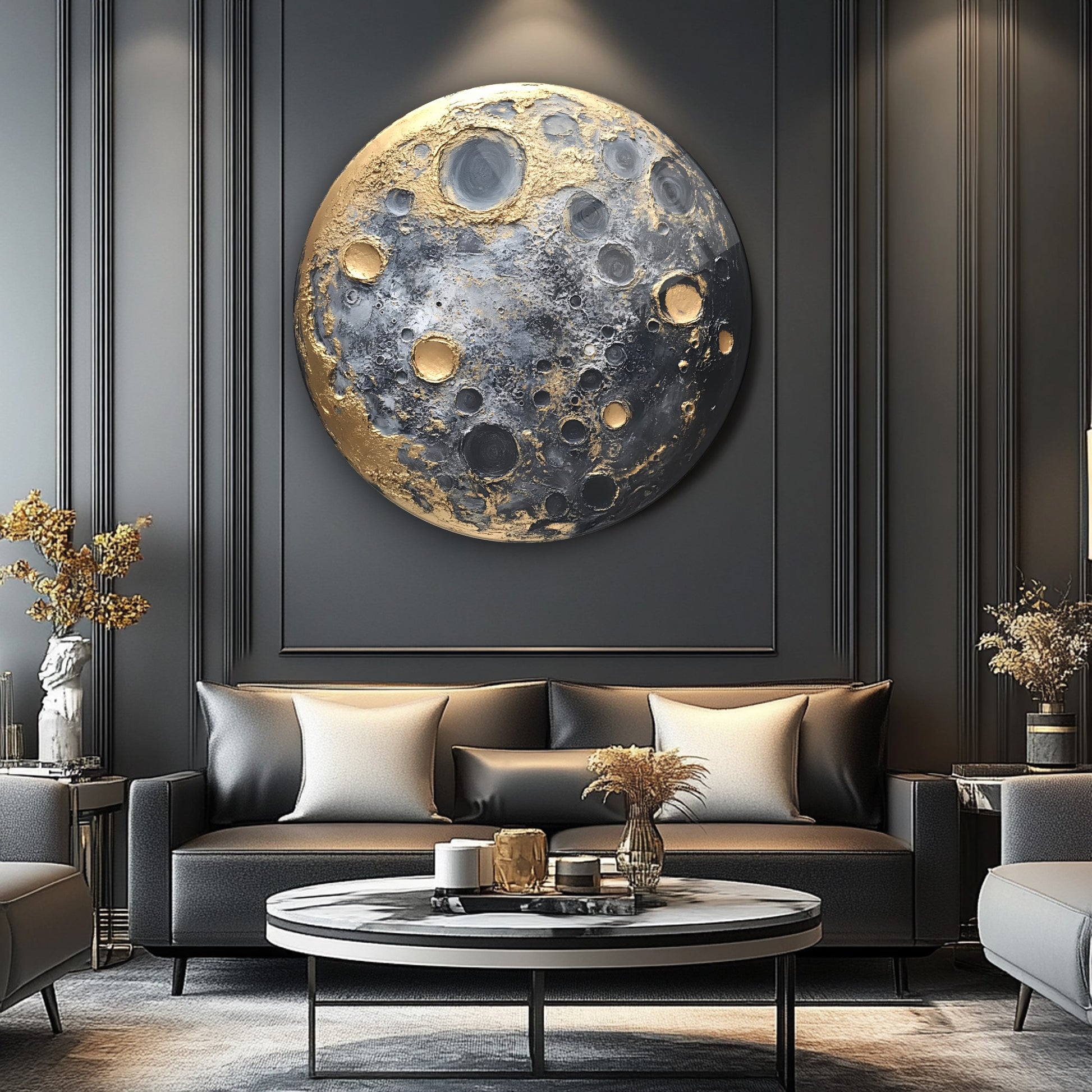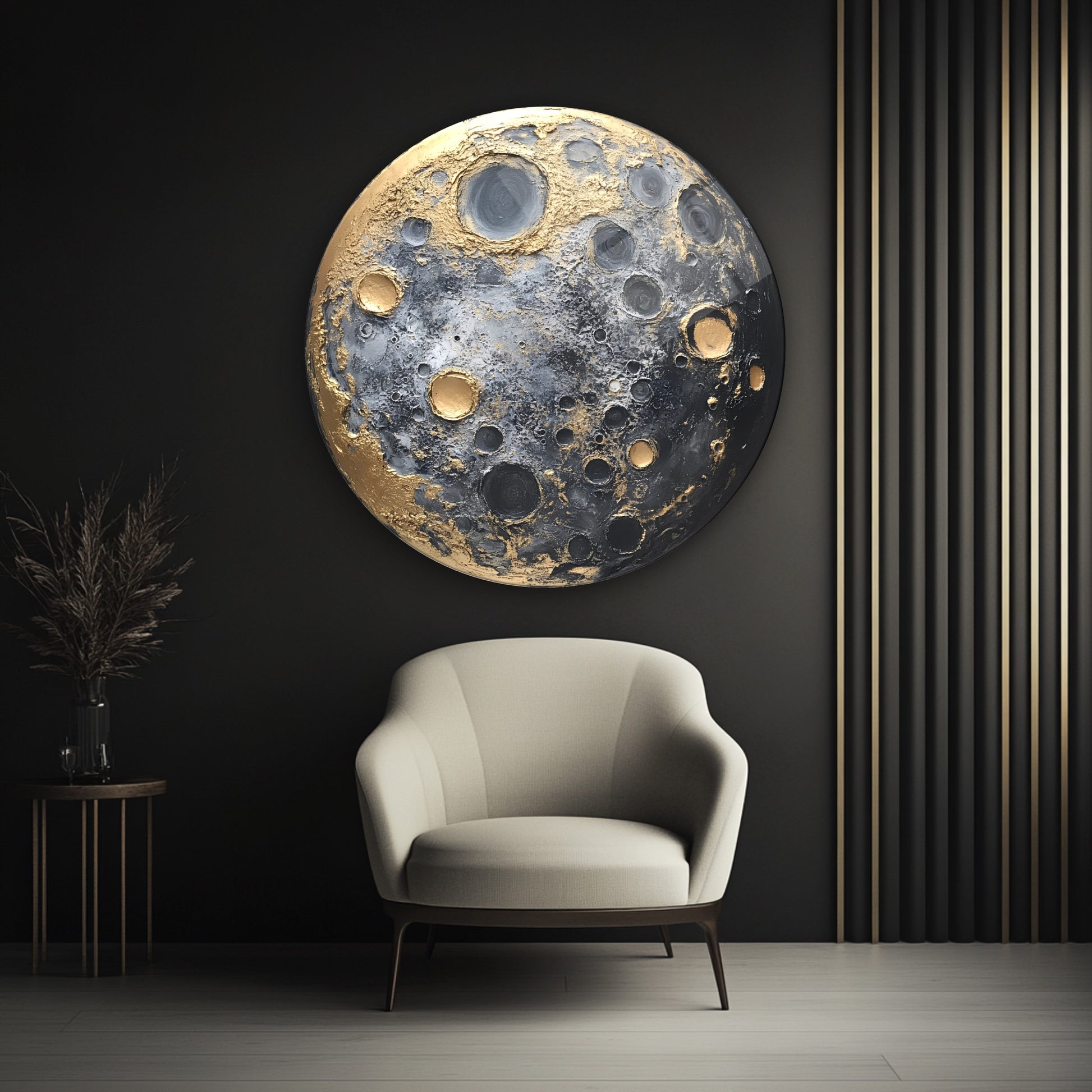 Modern çizgilerle tasarlanmış ay manzarası, bu yuvarlak cam tabloya çağdaş ve şık bir görünüm kazandırıyor. CamDeko kalitesiyle kırılmaz temperli cam üzerine UV baskı teknolojisiyle üretilen ürün, evlerden ofislere, otel ve restoran gibi yaşam alanlarından çalışma odalarına kadar geniş kullanım alanlarına uygundur. Minimalist ama etkileyici tasarımı sayesinde mekâna huzur ve zarafet katar. Modern dekorasyon anlayışını benimseyenler için hem estetik hem de dayanıklı bir seçenek sunar.