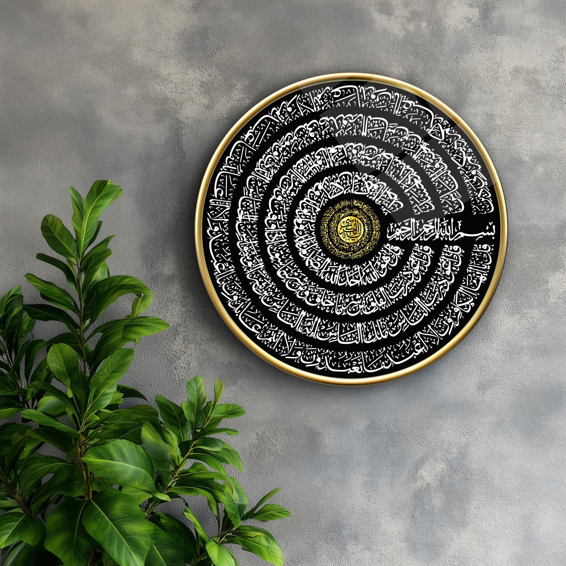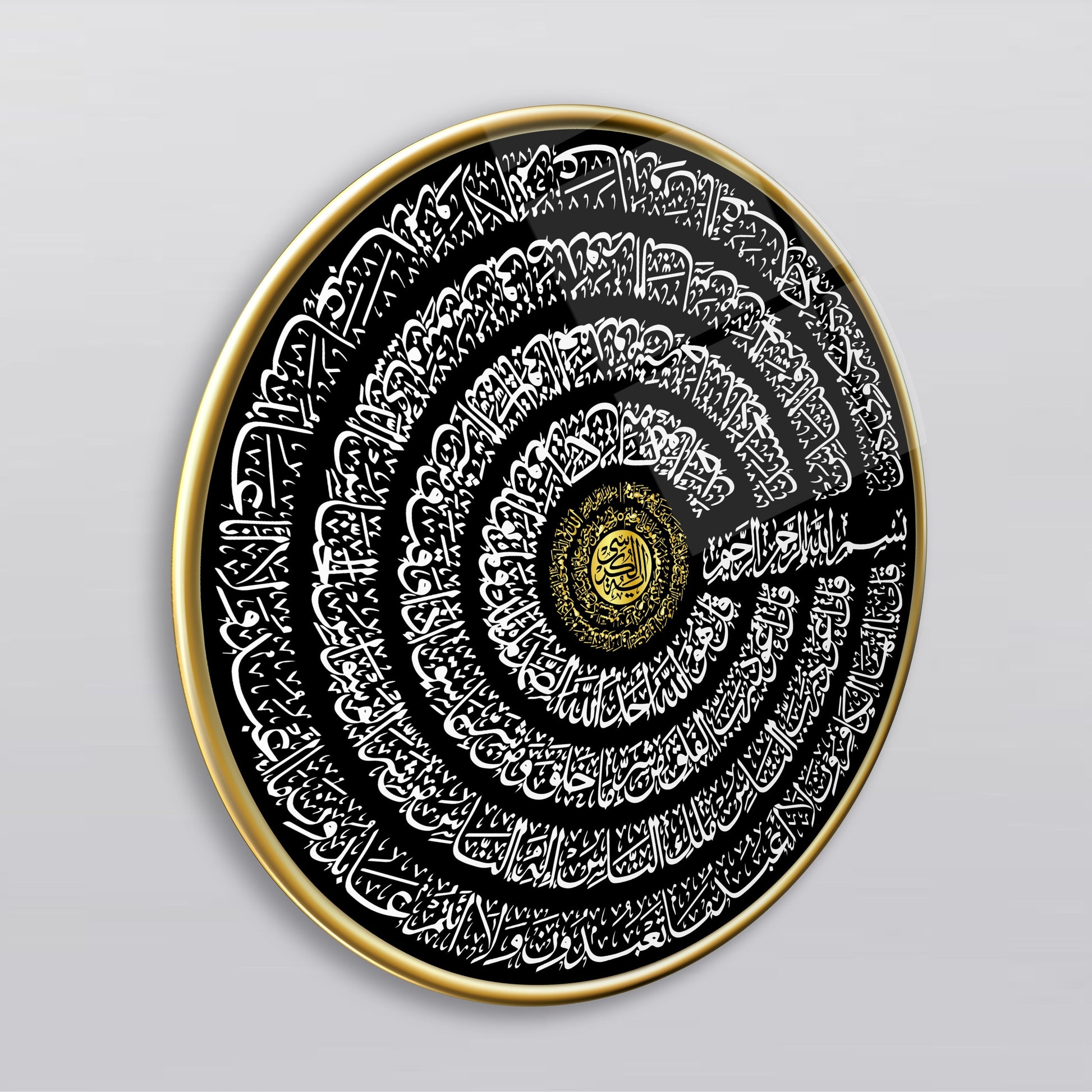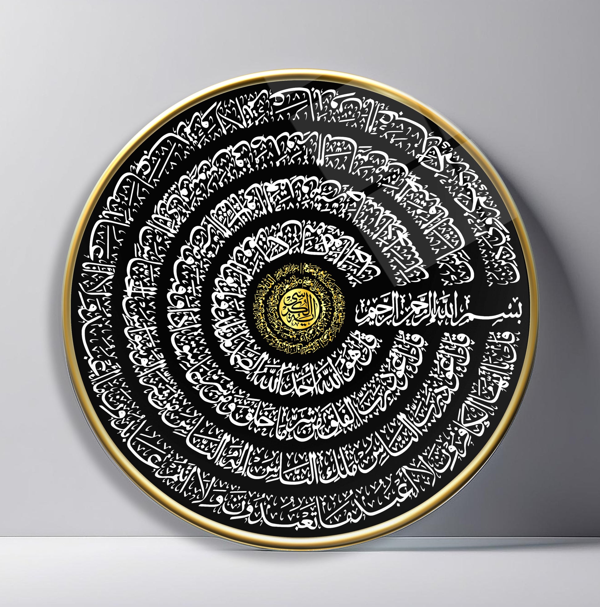Ayetel Kursi ve İhlas Felak Nas Sureleri Yuvarlak Cam Tablo