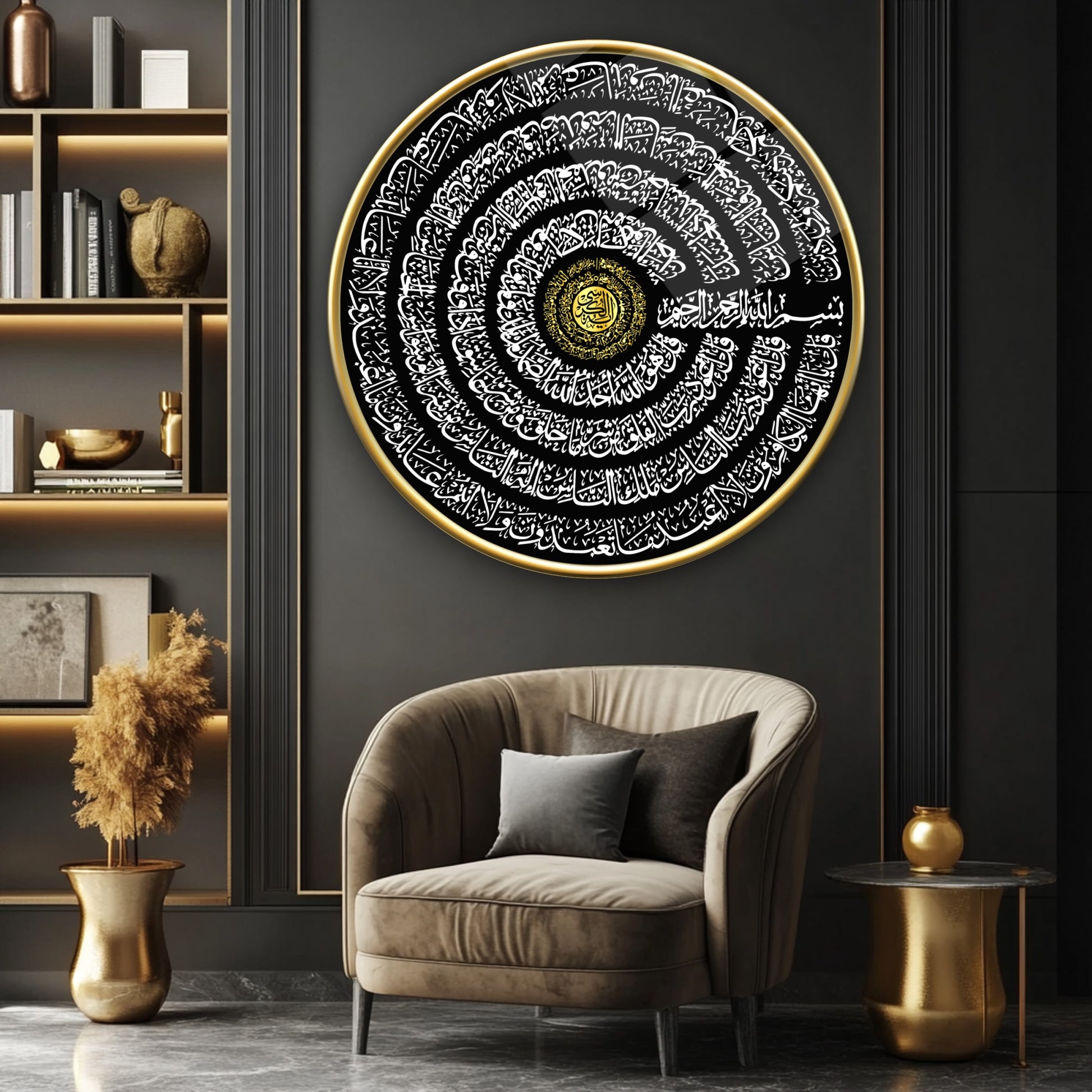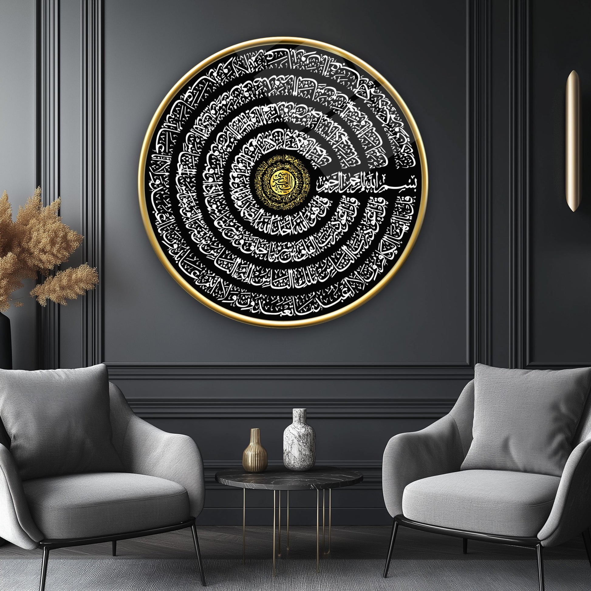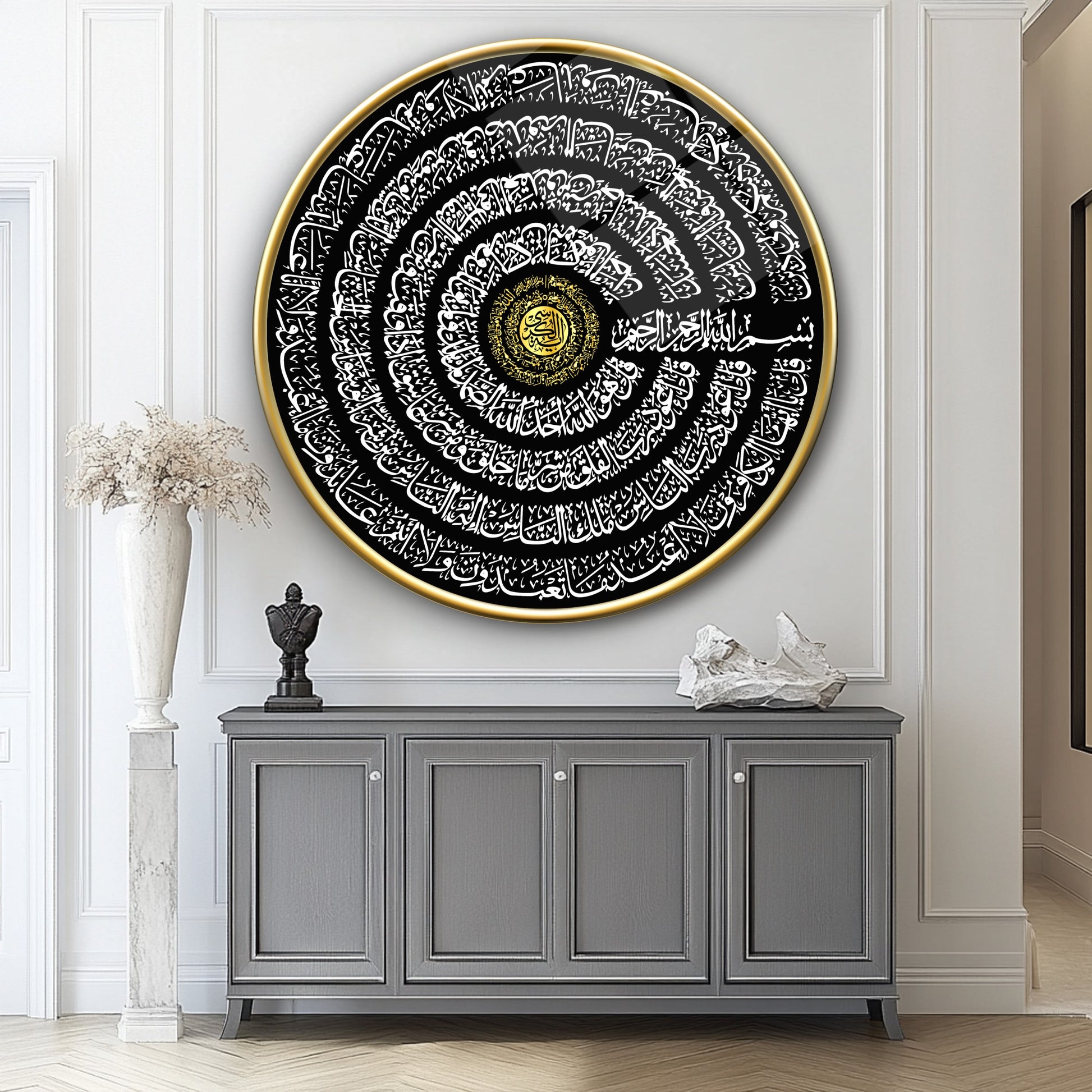 Ayetel Kursi ve İhlas Felak Nas Sureleri Yuvarlak Cam Tablo
