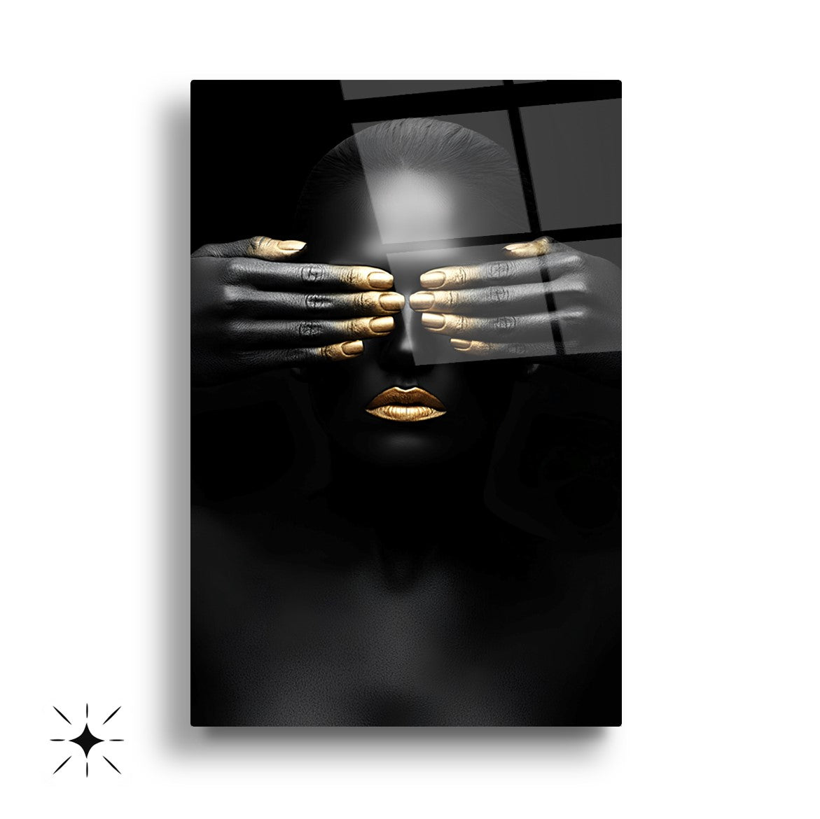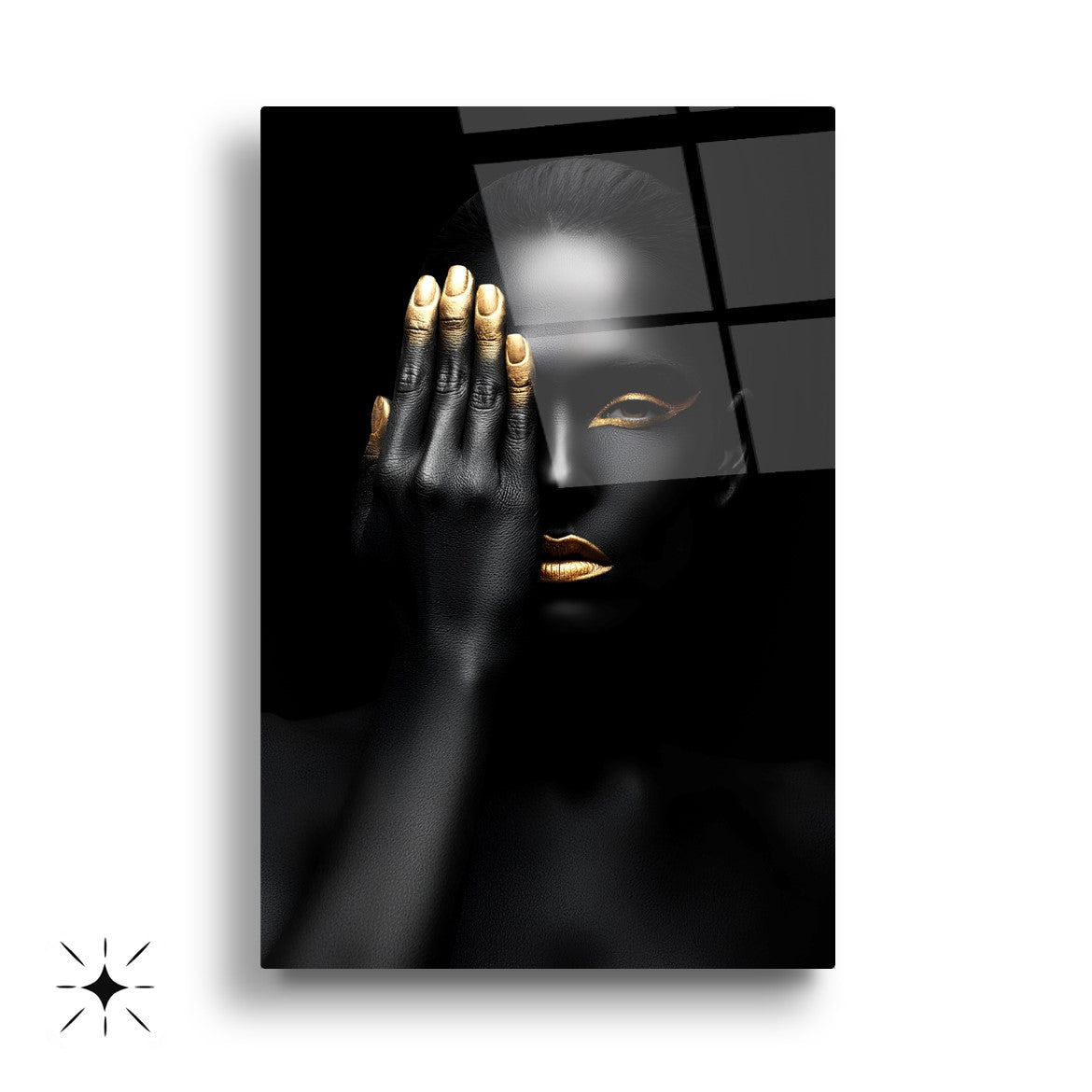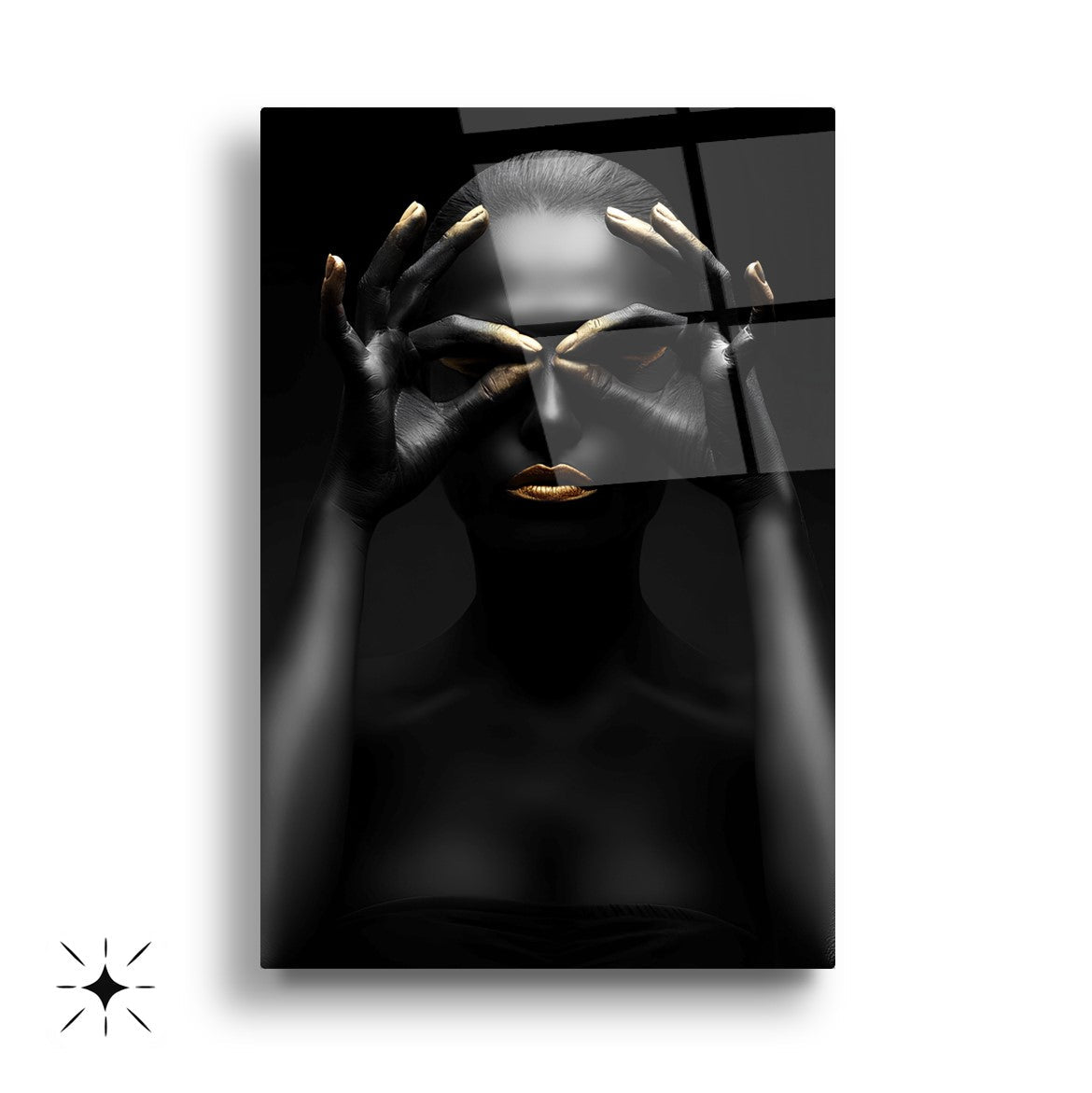 Siyah Gold Kadın Model Üçlü Set Cam Tablo