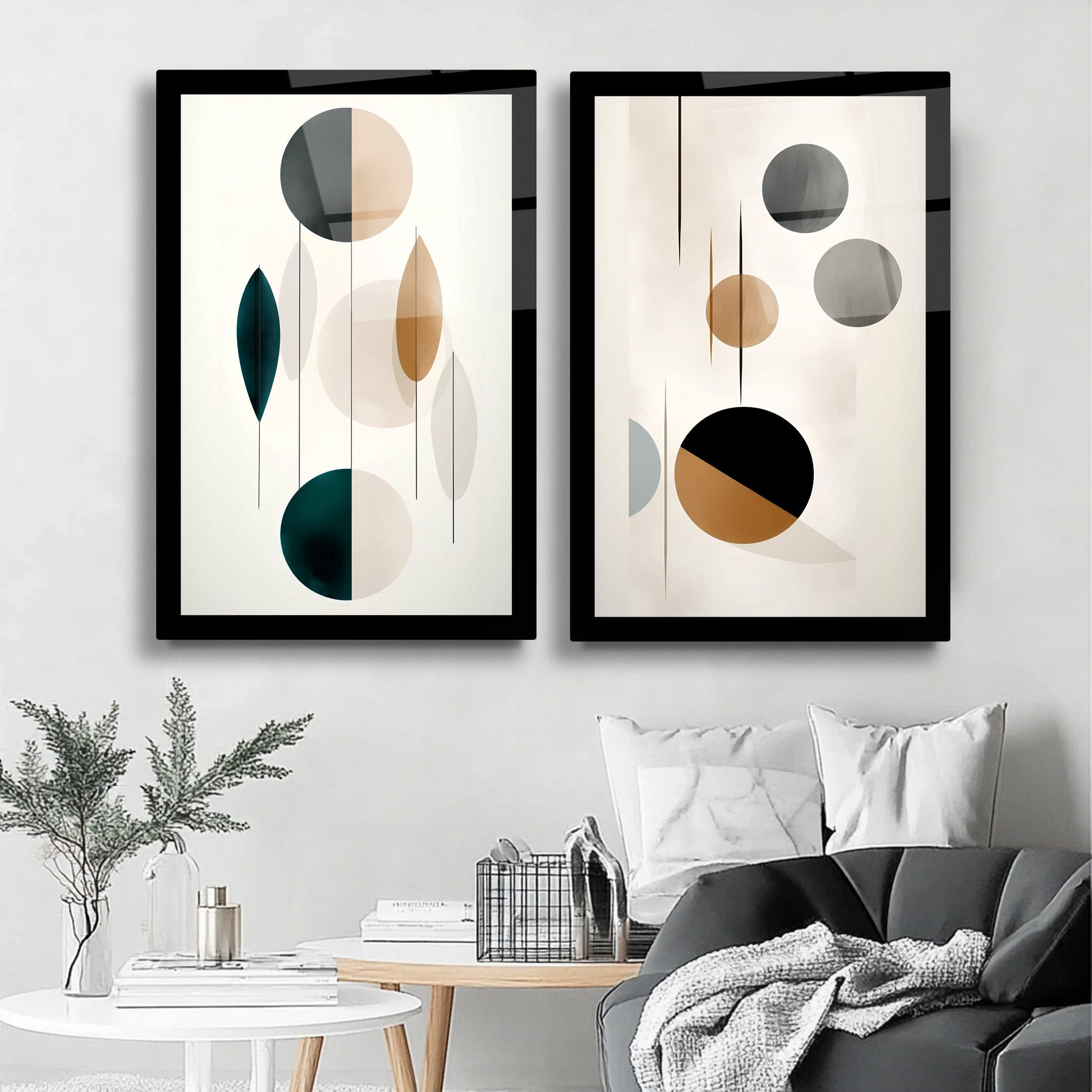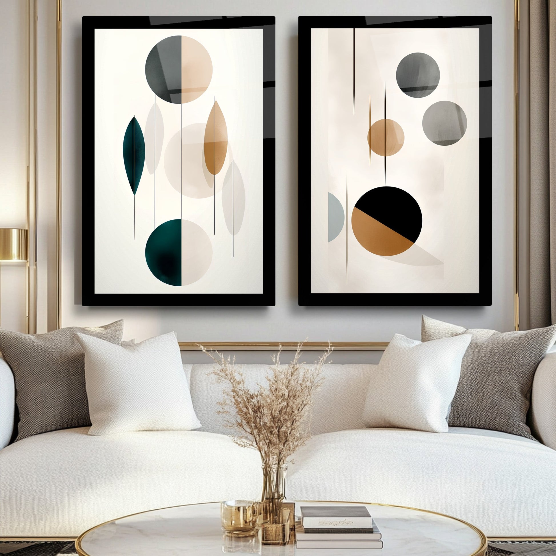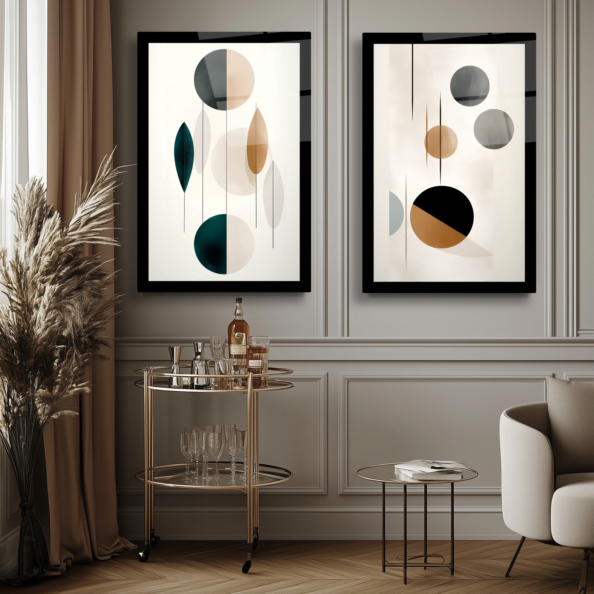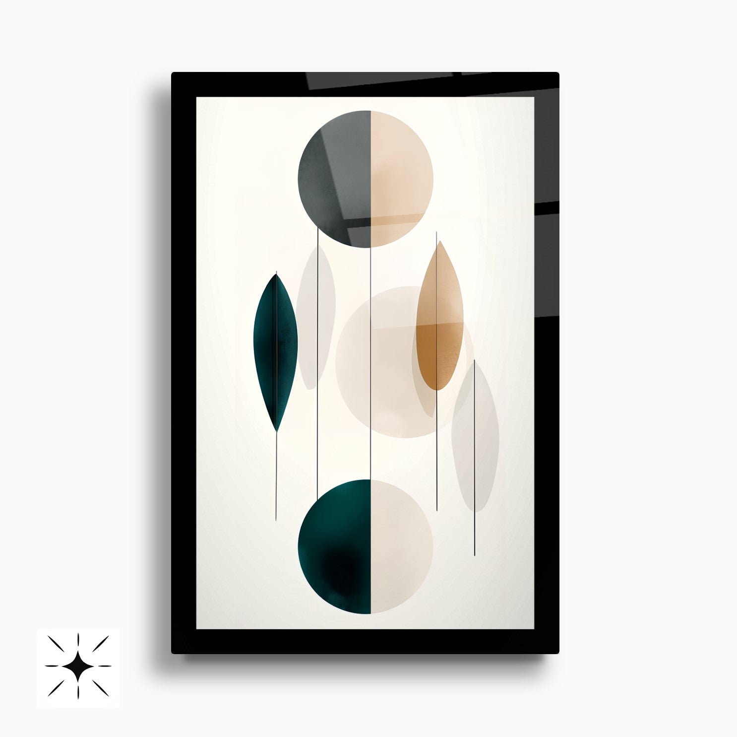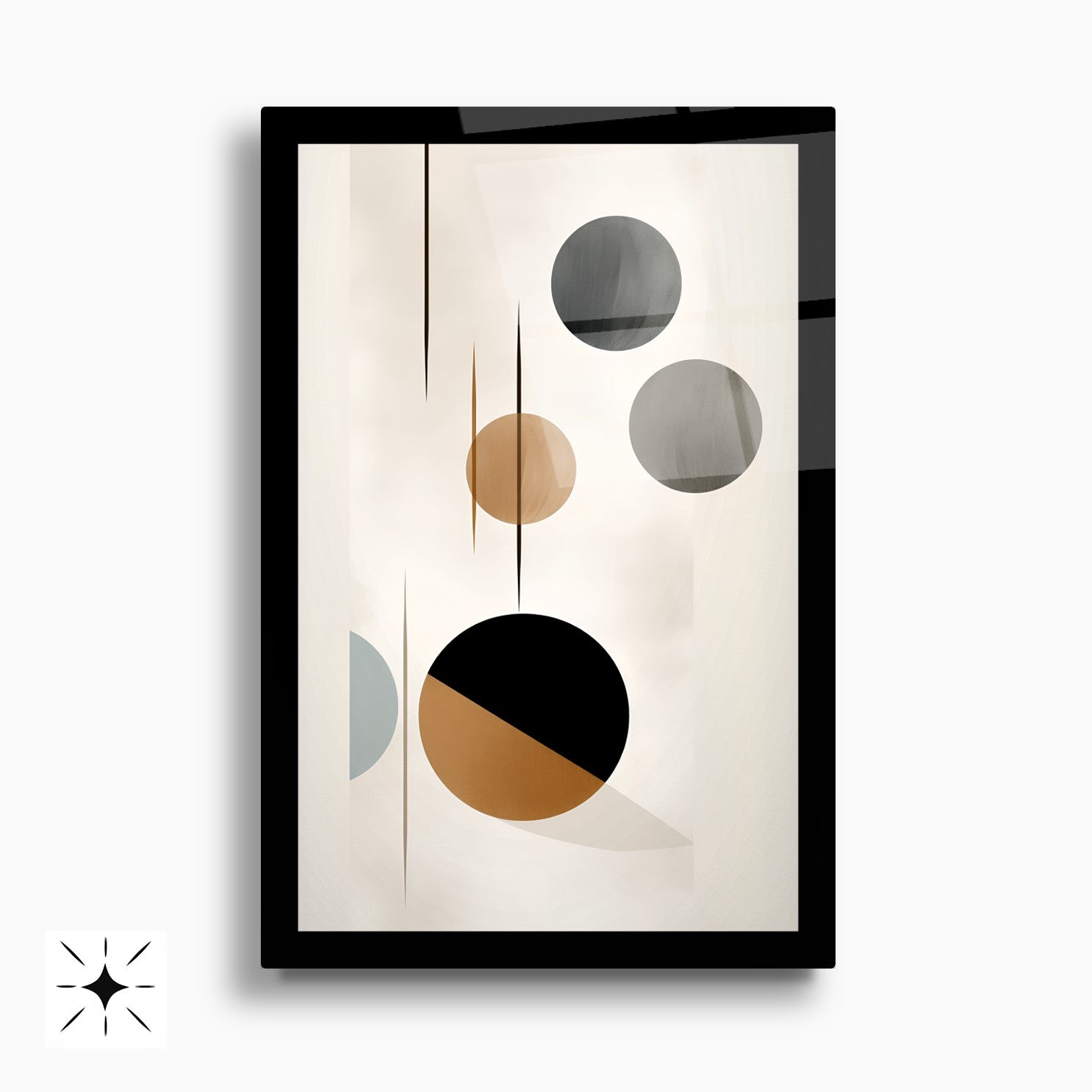 Bej, gold ve siyah renklerde yuvarlak geometrik desenlerle süslenmiş kahverengi arka planlı bu kırılmaz cam tablo, bohem ve minimalist tarzı mükemmel şekilde yansıtır. Dayanıklı yapısı uzun ömür sağlar. İkili tasarımıyla mekanlara şıklık ve denge katar. Modern ve zarif dekorasyon arayanlar için ideal, estetik bir seçimdir.