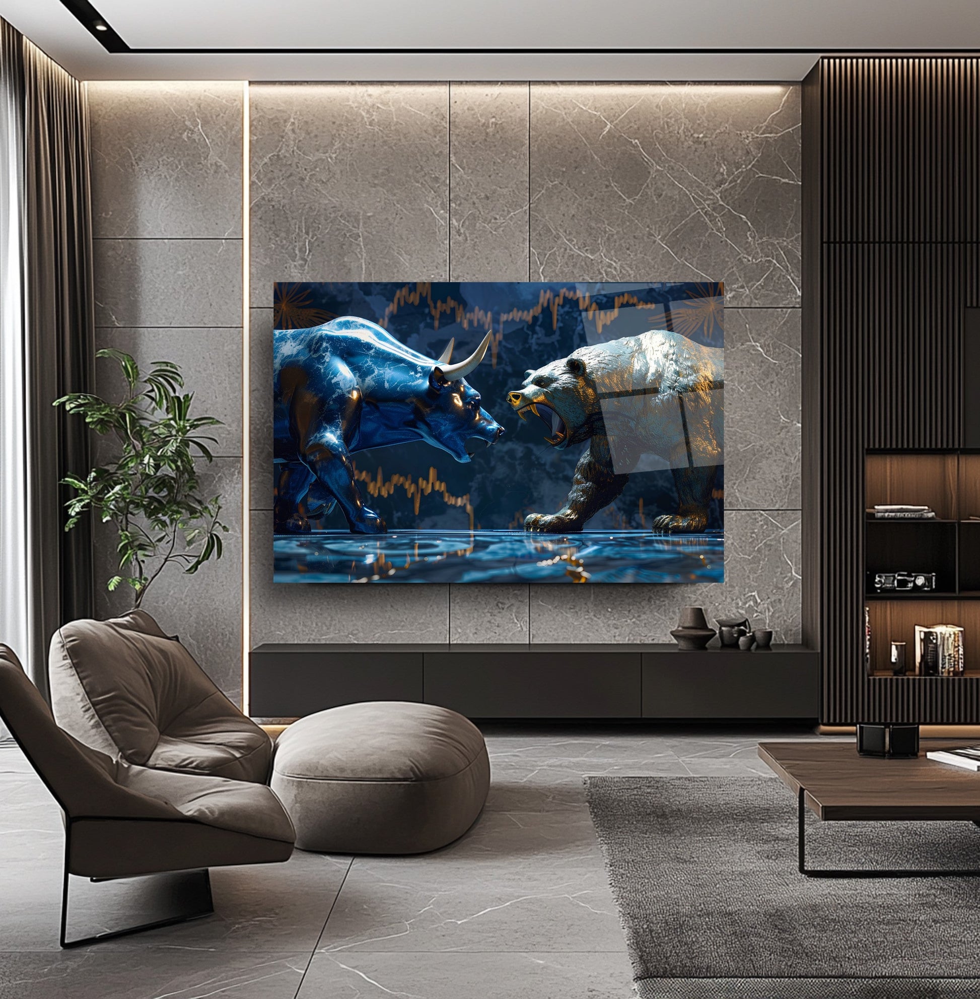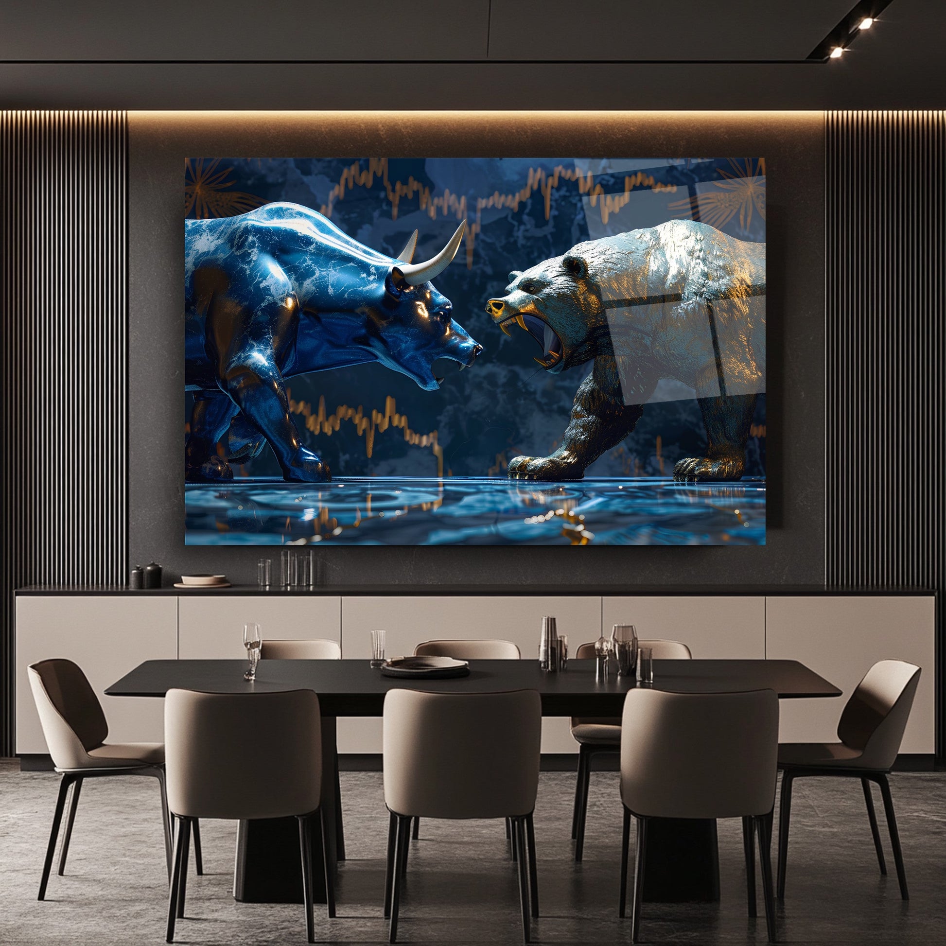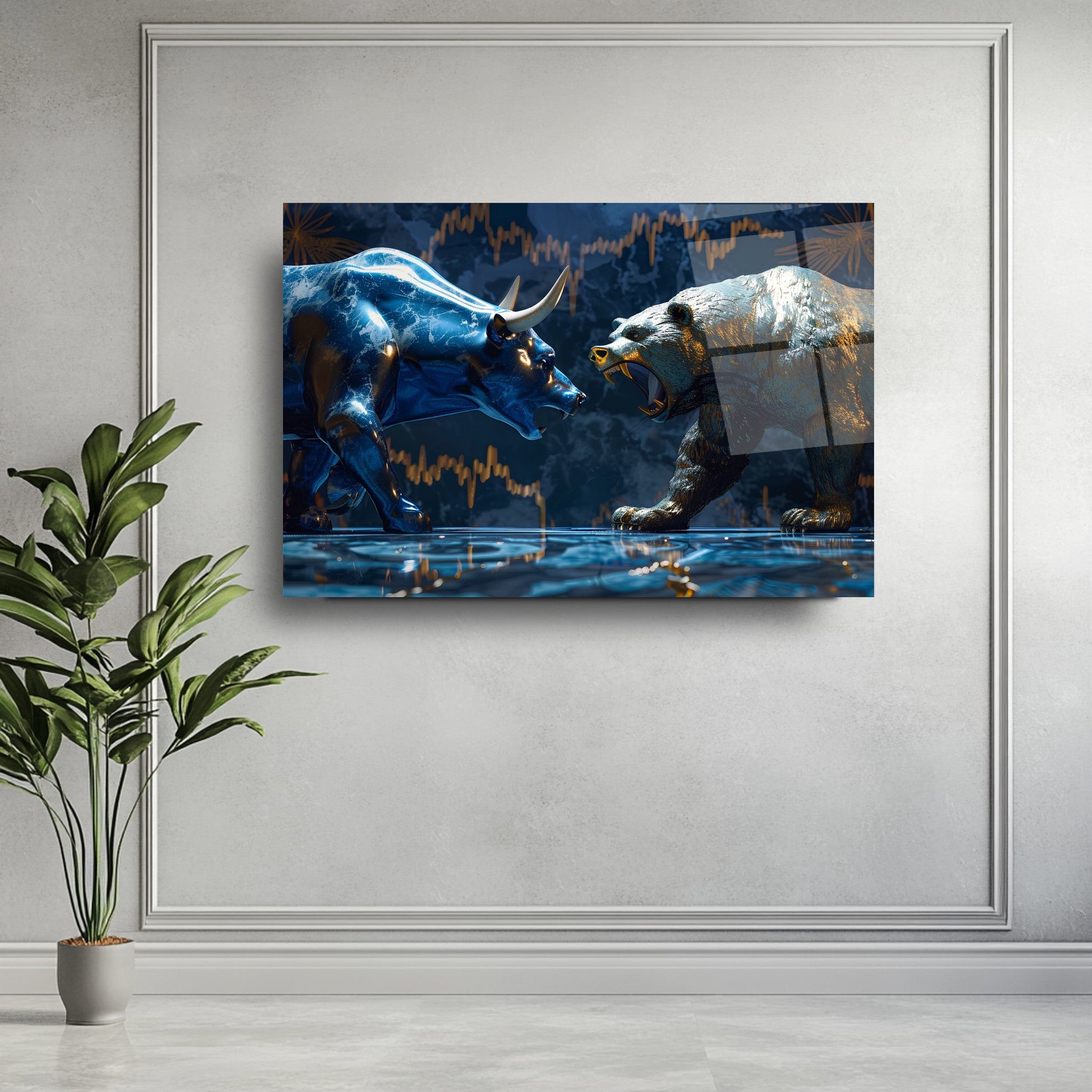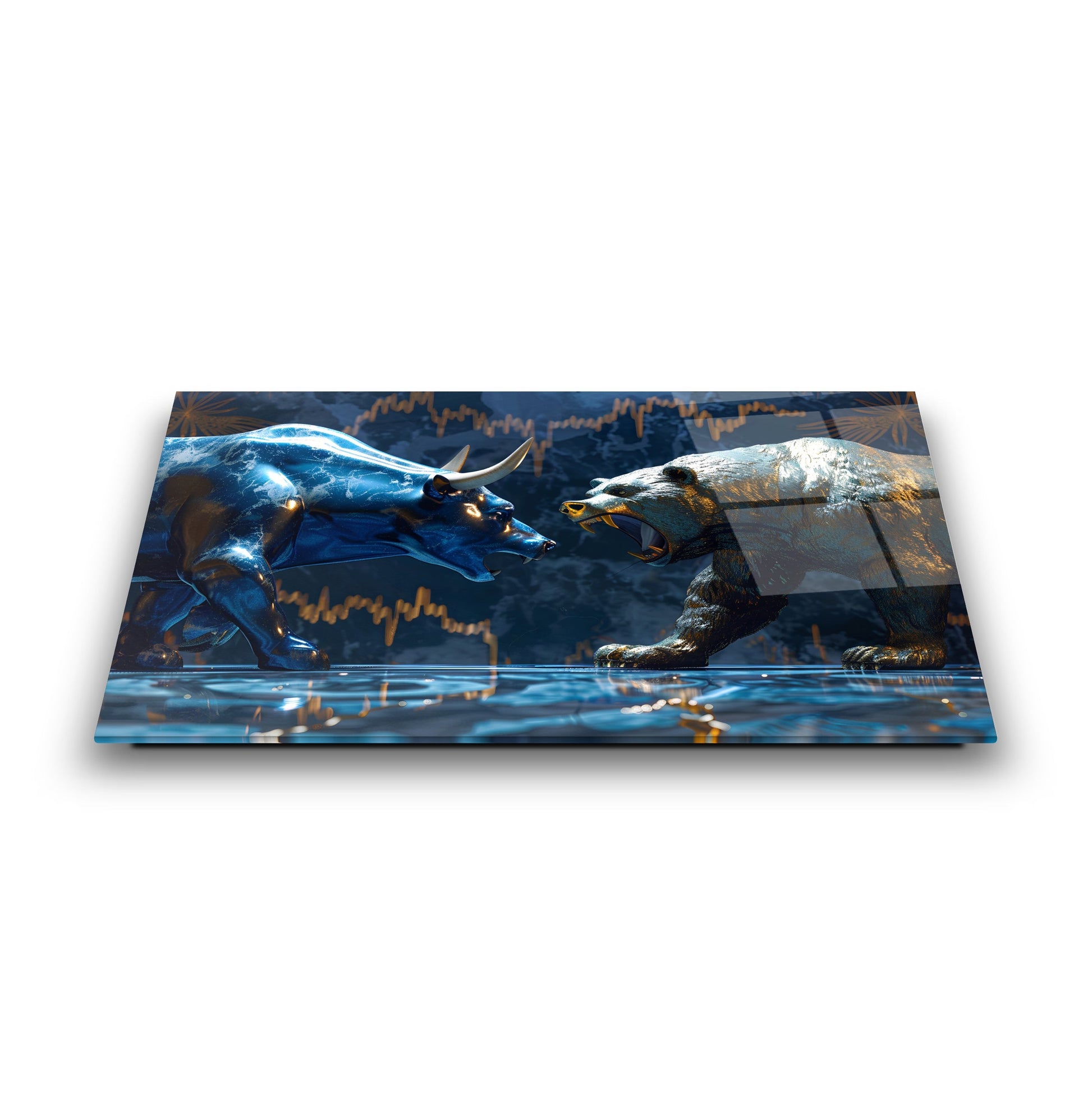 Camdeko’nun Boğa ve Ayı Borsa Temalı Cam Tablosu, finans dünyasının ikonik simgelerini modern bir tasarımla duvarınıza taşıyor. Borsa piyasasının yükseliş ve düşüşünü simgeleyen boğa ve ayı figürleri, UV baskı teknolojisiyle cam yüzeye işlenerek canlı ve kalıcı renkler elde edilmiştir. 4 mm kalınlığındaki temperli cam, darbelere karşı dayanıklı olup, kenarları rodajlanarak estetik ve güvenli bir kullanım sağlar. Suya, neme ve çizilmeye dayanıklı yüzeyiyle uzun yıllar ilk günkü gibi kalır. Kolay montaj için gerekli tüm aksesuarlar kutuda yer alır. Ofis, döviz bürosu, kuyumcu dükkanı veya finansla ilgilenen herkesin çalışma alanına prestij katacak bu tablo, yatırımcılar için de anlamlı bir hediye alternatifi sunuyor. Finansal başarıyı ve dinamizmi simgeleyen bu tabloyu şimdi keşfedin ve mekanınıza değer katın