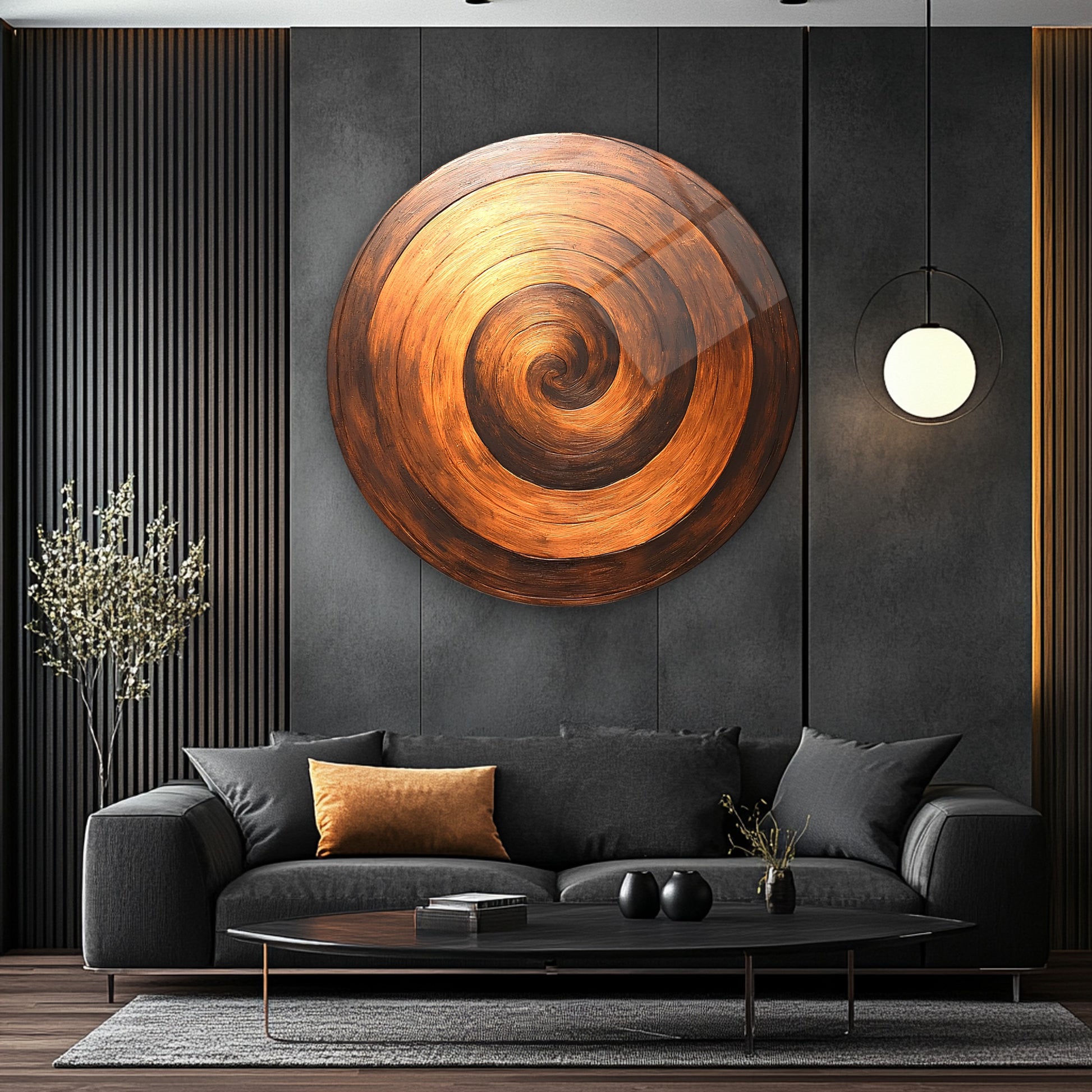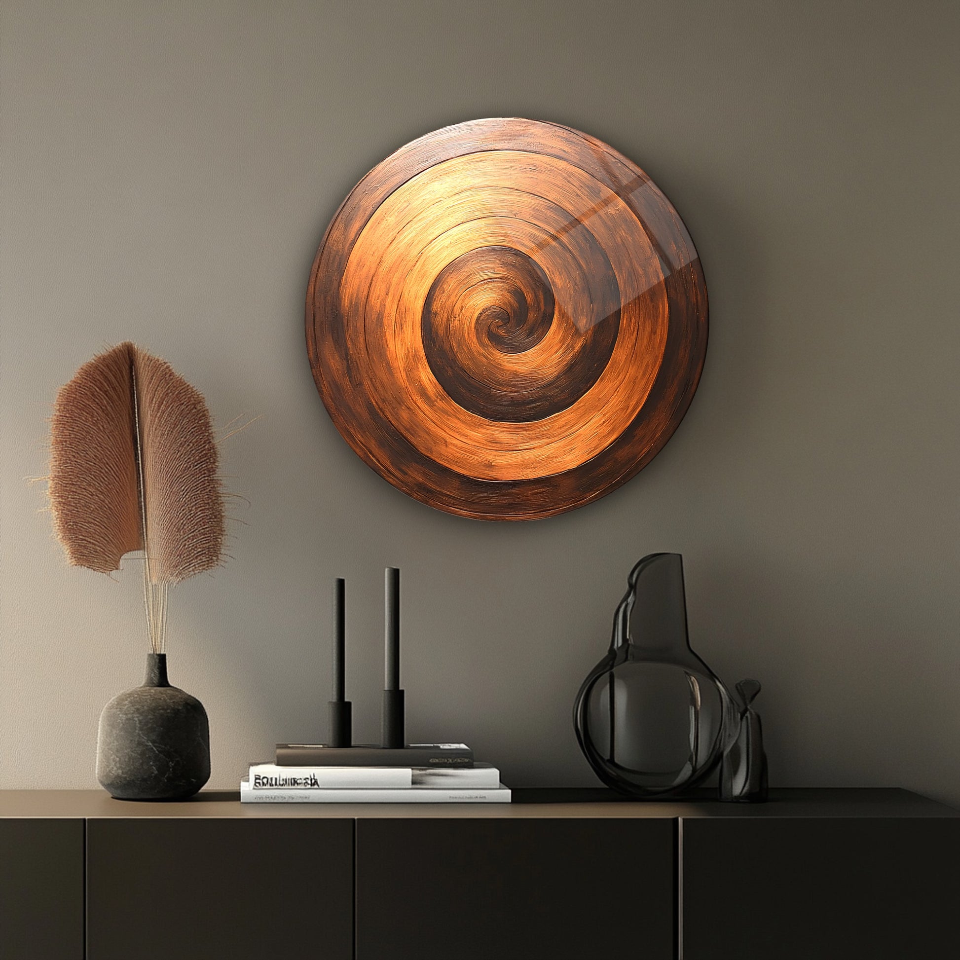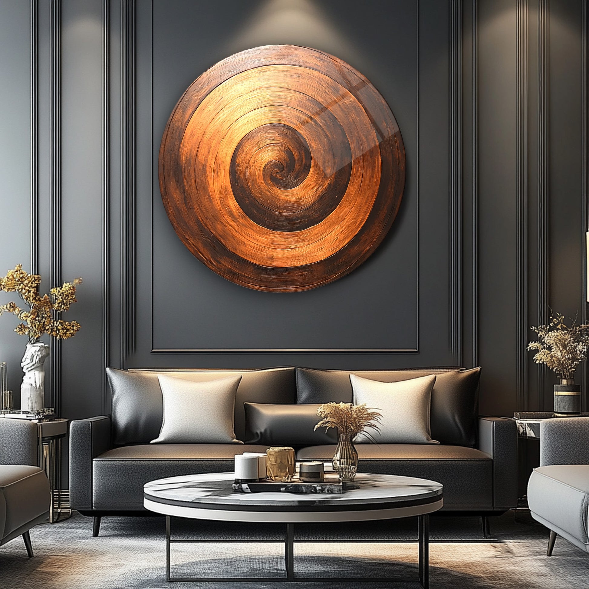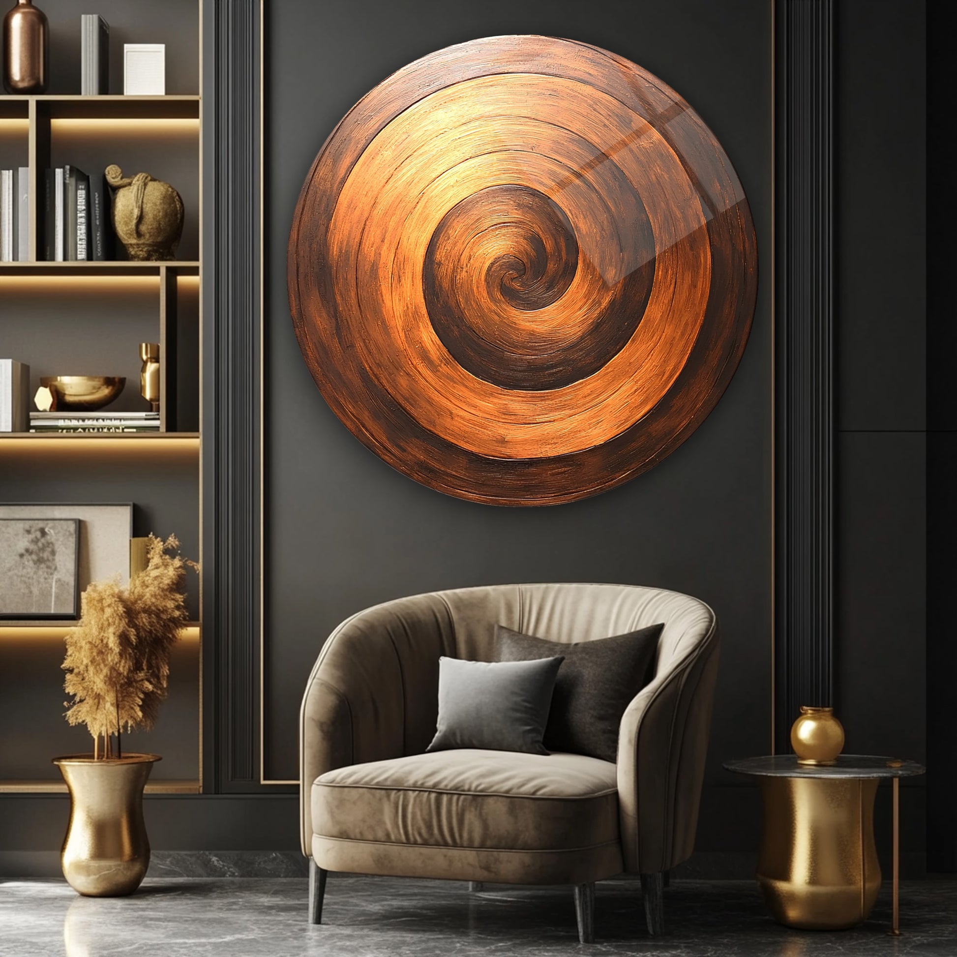 Bronz Soyut Halkalar Yuvarlak Cam Tablo