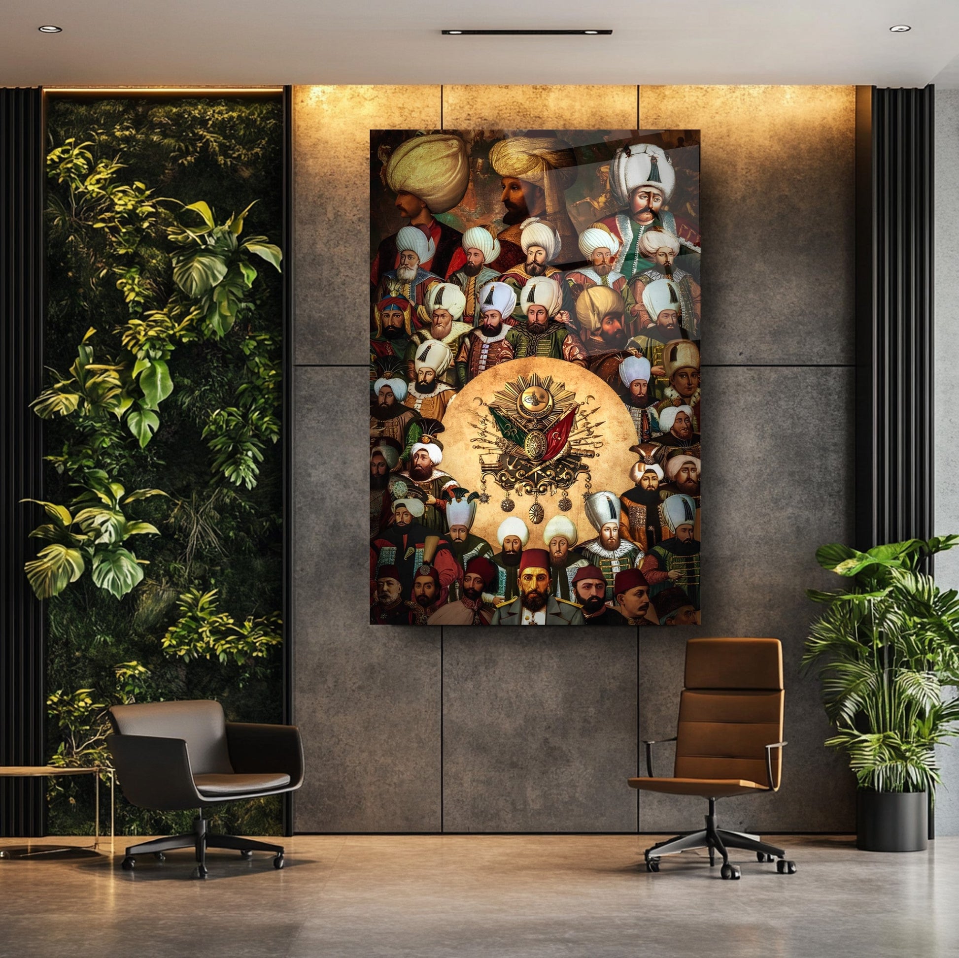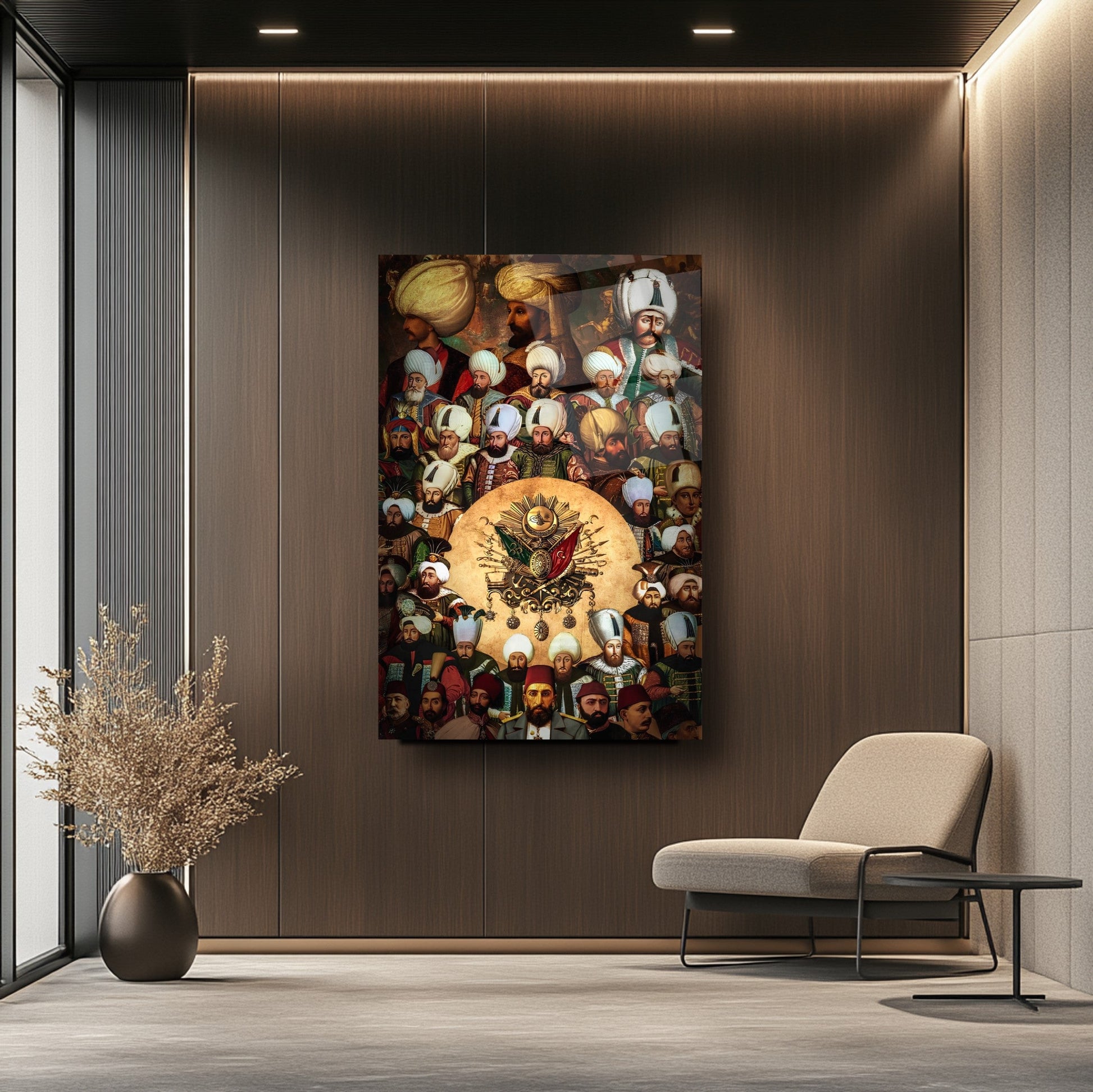 Osmanlı İmparatorluğu'nun kudretini ve zarafetini duvarlarınıza taşıyın! Bu özel tasarım cam tablo, Osmanlı padişahlarının devlet arması ve tuğrasını modern bir dokunuşla sunar. 4 mm kalınlığındaki ultra-clear temperli cam, standart camlara göre 10 kat daha dayanıklıdır ve rodajlanmış kenarlarıyla güvenli kullanım sağlar. UV dijital baskı teknolojisiyle uygulanan yüksek çözünürlüklü baskı, renklerin solmasını engeller ve uzun ömürlü kullanım sunar. Kolay montajı sayesinde hemen duvarınıza asılabilir. Salon, ofis veya toplantı odası gibi farklı alanlarda şıklığıyla öne çıkar. Evinize veya iş yerinize tarihi bir atmosfer kazandırmak için bu tablo mükemmel bir tercih olacaktır.