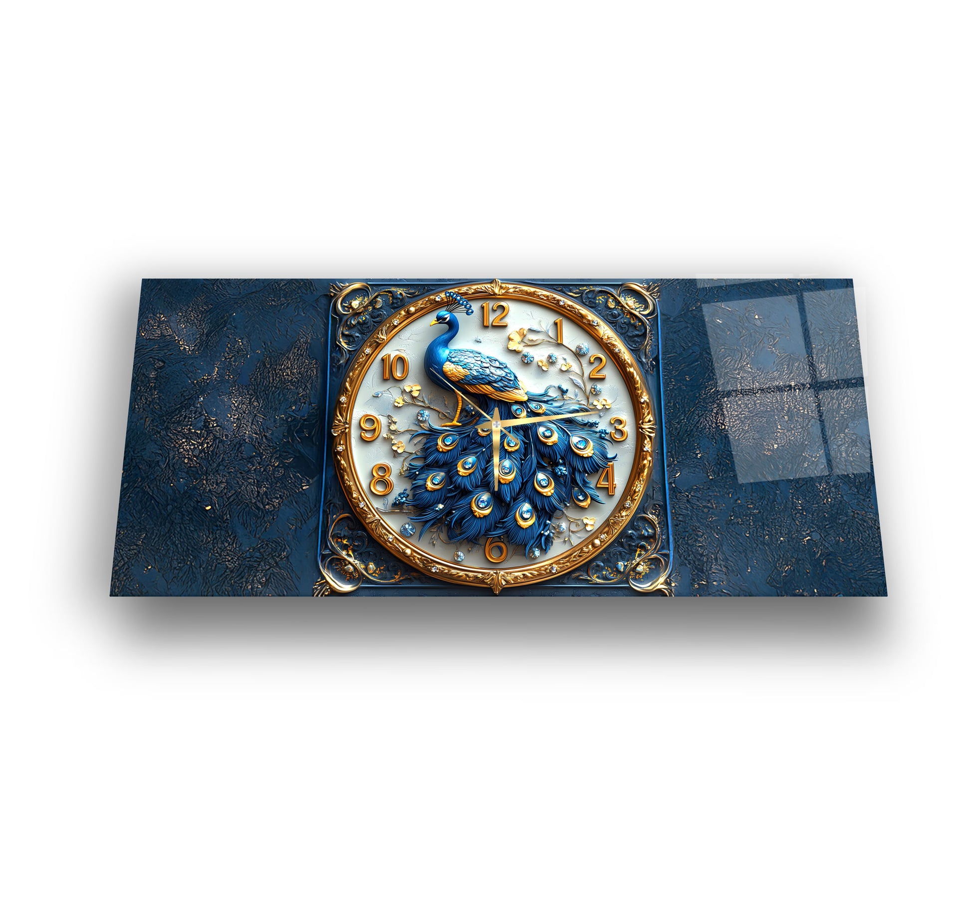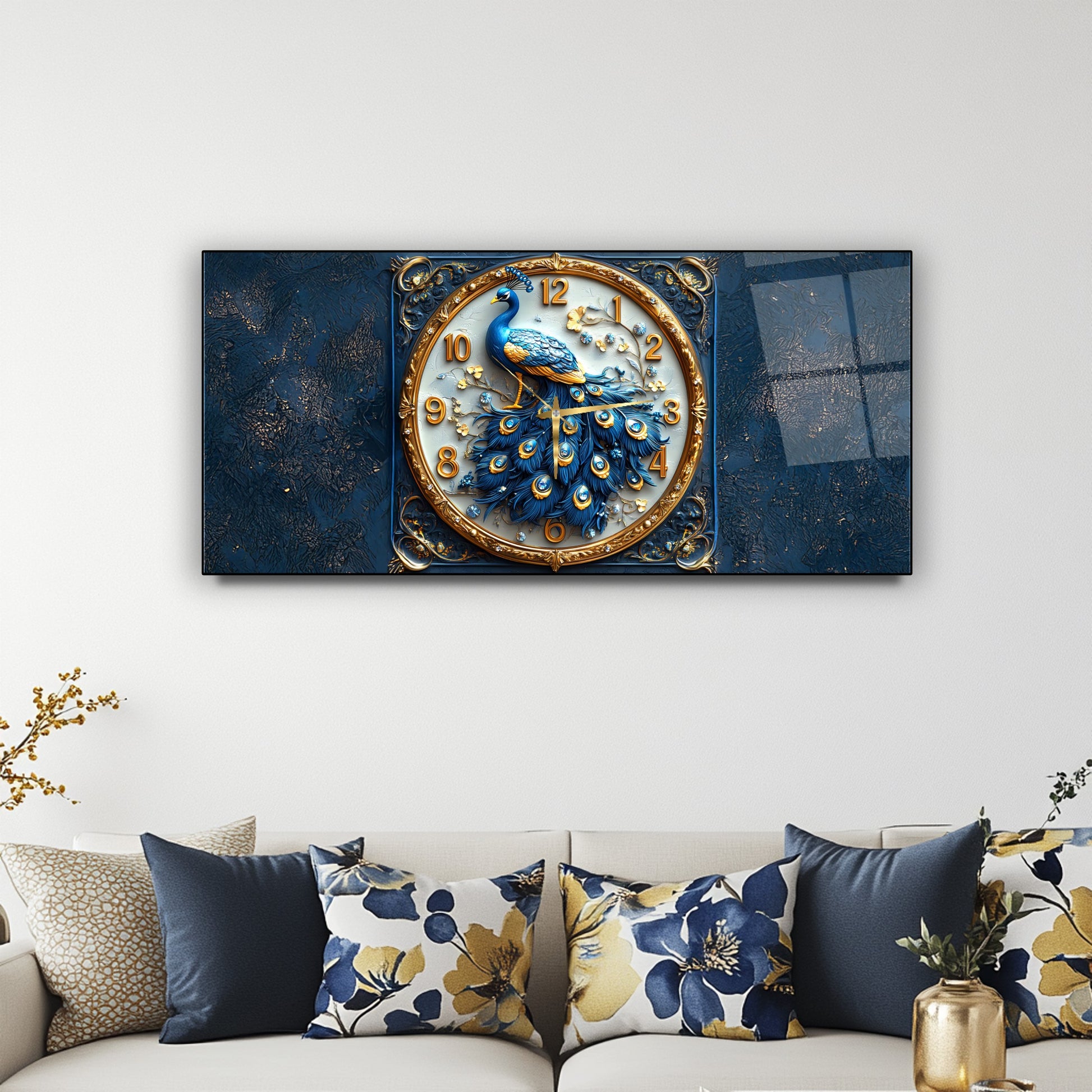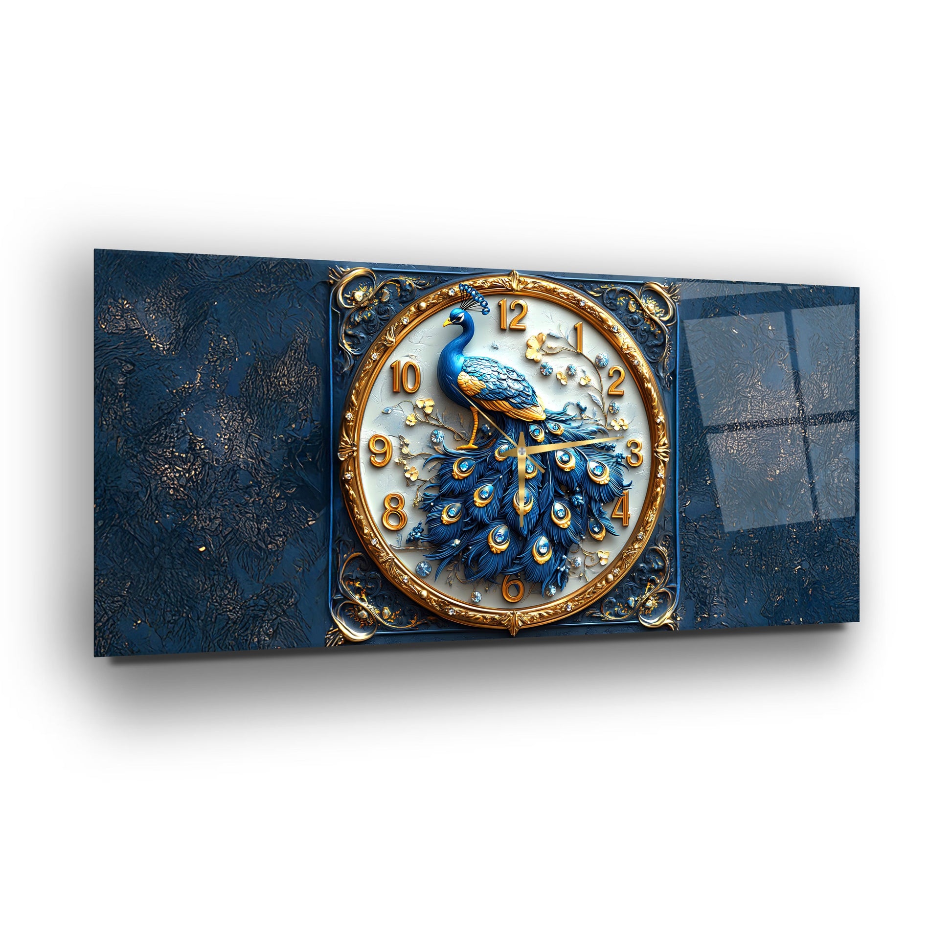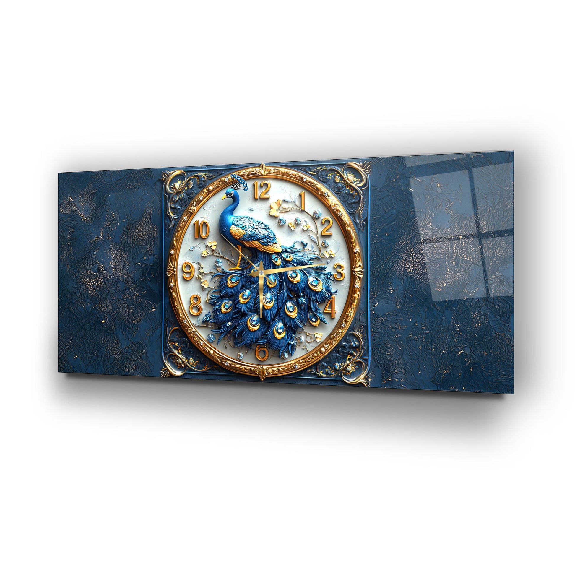 Mavi Tavus Kuşu Cam Duvar Saati