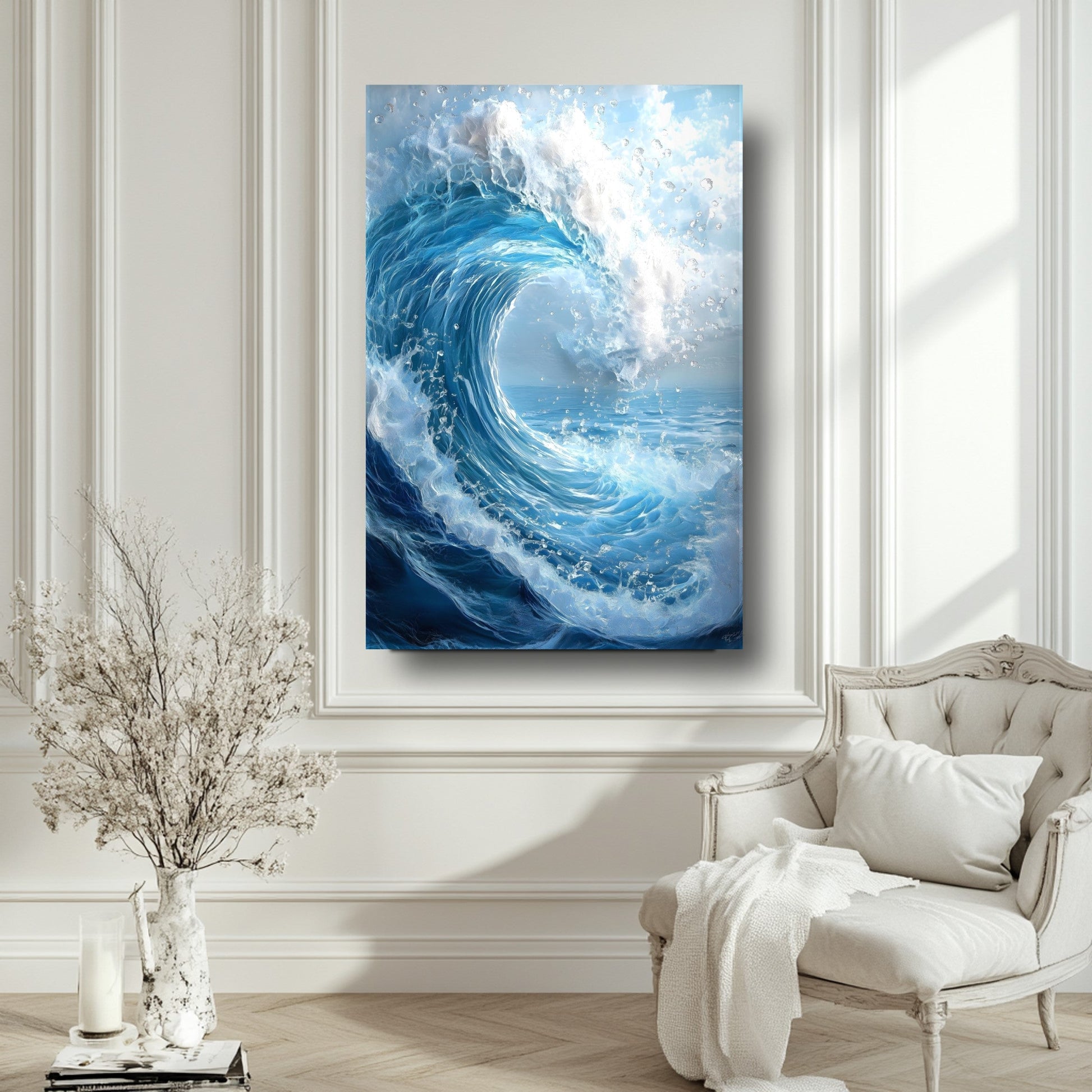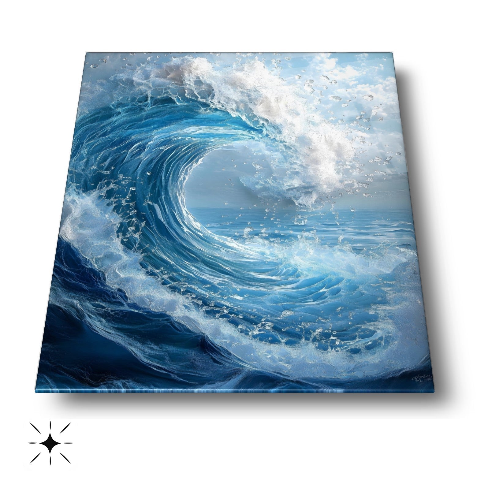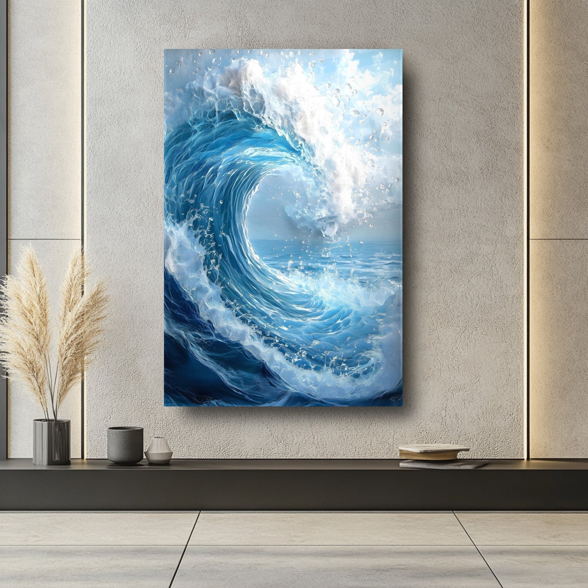 Hayranlık uyandıran büyük köpüklü dalga deseniyle bu cam tablo, denizin gücünü ve hareketini yaşam alanlarınıza taşır. Canlı mavi tonlar ve beyaz köpük ayrıntıları, 3D UV baskı teknolojisi ile solmadan derinlik kazanır. 4 mm ultra-clear temperli cam, darbelere karşı ekstra dayanıklılık sunarken rodajlı kenarları şıklıkla güvenliği birleştirir. Çerçevesiz ve kolay montajlı tasarımı sayesinde salon, oturma odası veya ofis duvarlarında modern duvar dekoru arayanları etkiler. Cam tablo, temperli cam baskı, modern duvar dekoru arayanlar için etkileyici bir tercih.