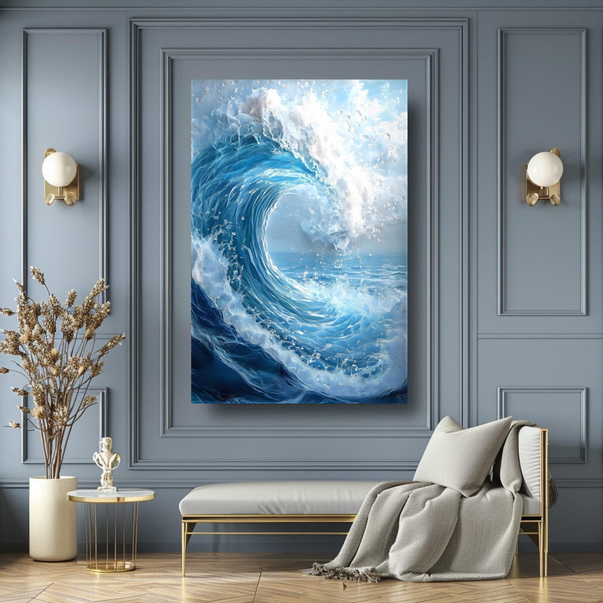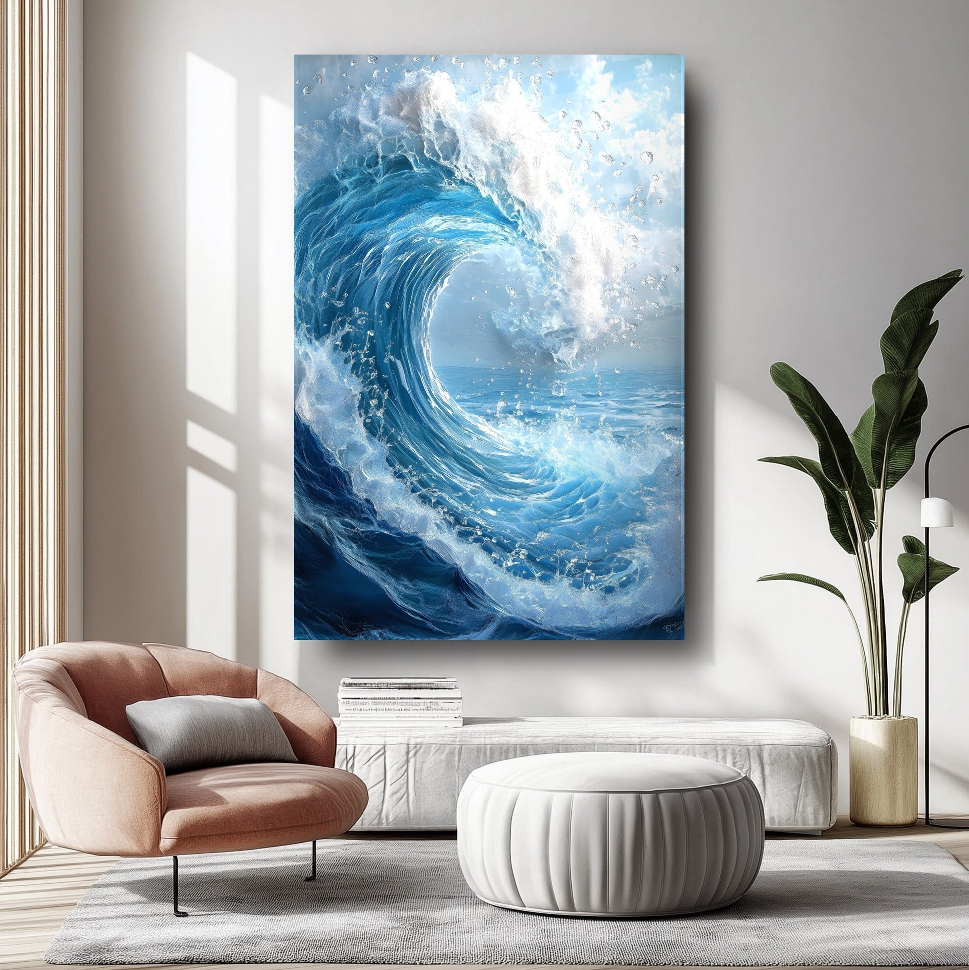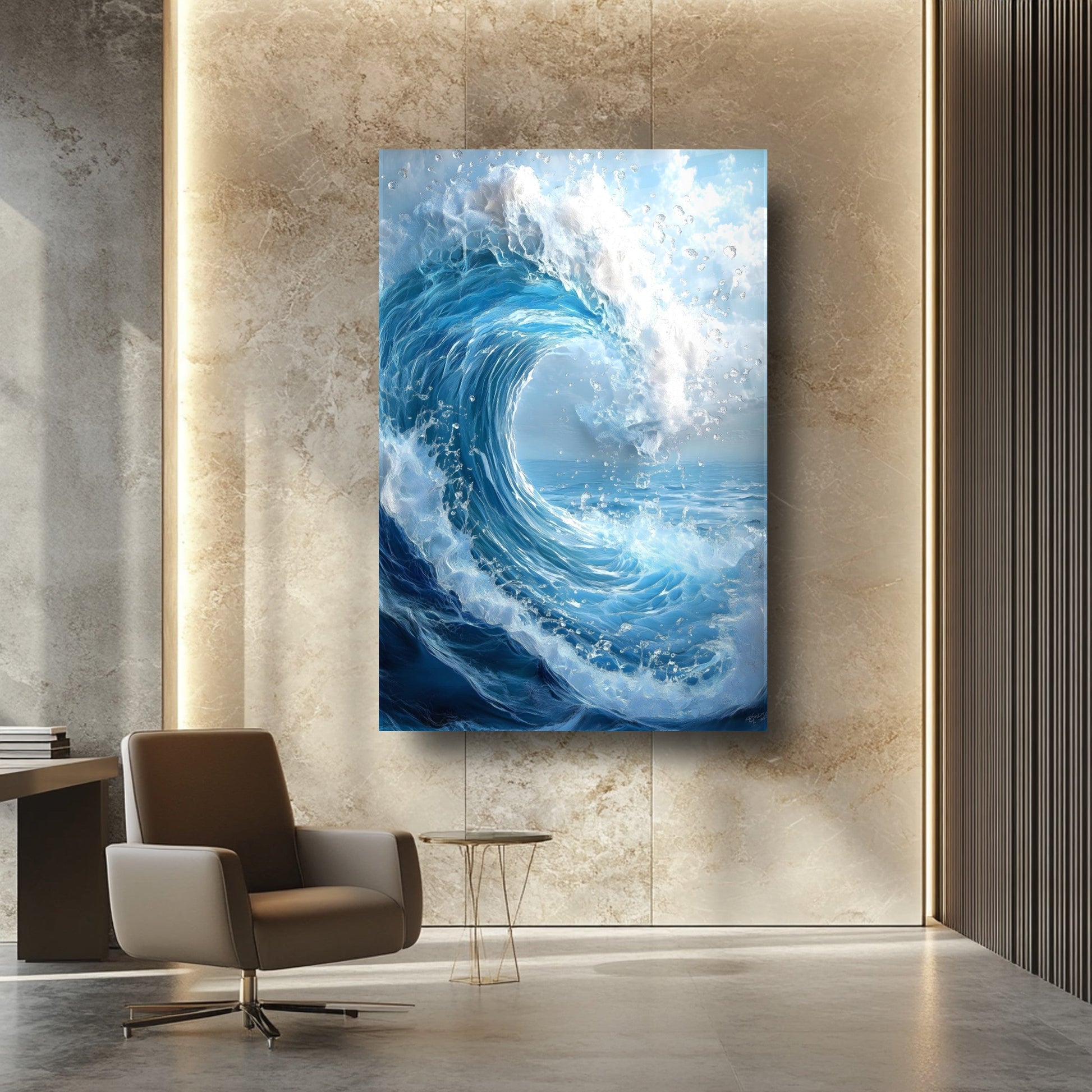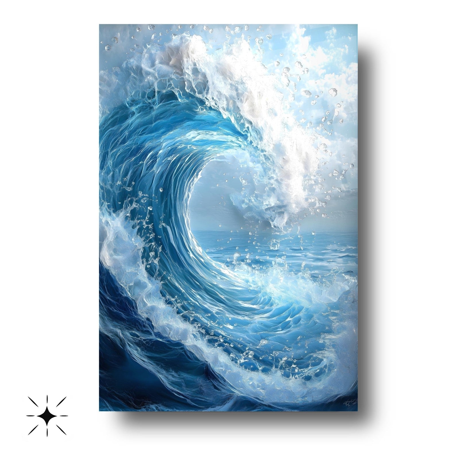Hayranlık uyandıran büyük köpüklü dalga deseniyle bu cam tablo, denizin gücünü ve hareketini yaşam alanlarınıza taşır. Canlı mavi tonlar ve beyaz köpük ayrıntıları, 3D UV baskı teknolojisi ile solmadan derinlik kazanır. 4 mm ultra-clear temperli cam, darbelere karşı ekstra dayanıklılık sunarken rodajlı kenarları şıklıkla güvenliği birleştirir. Çerçevesiz ve kolay montajlı tasarımı sayesinde salon, oturma odası veya ofis duvarlarında modern duvar dekoru arayanları etkiler. Cam tablo, temperli cam baskı, modern duvar dekoru arayanlar için etkileyici bir tercih.