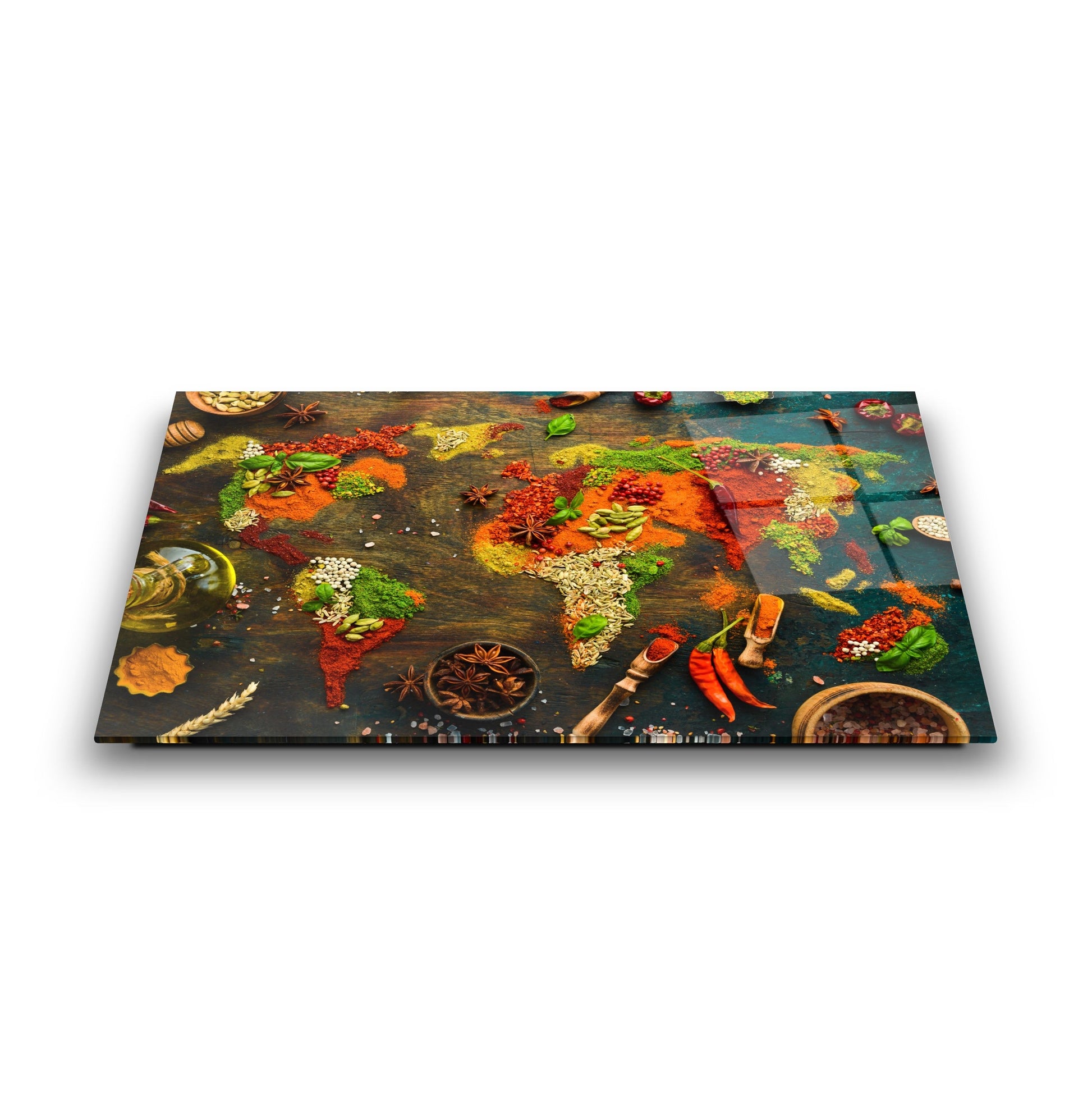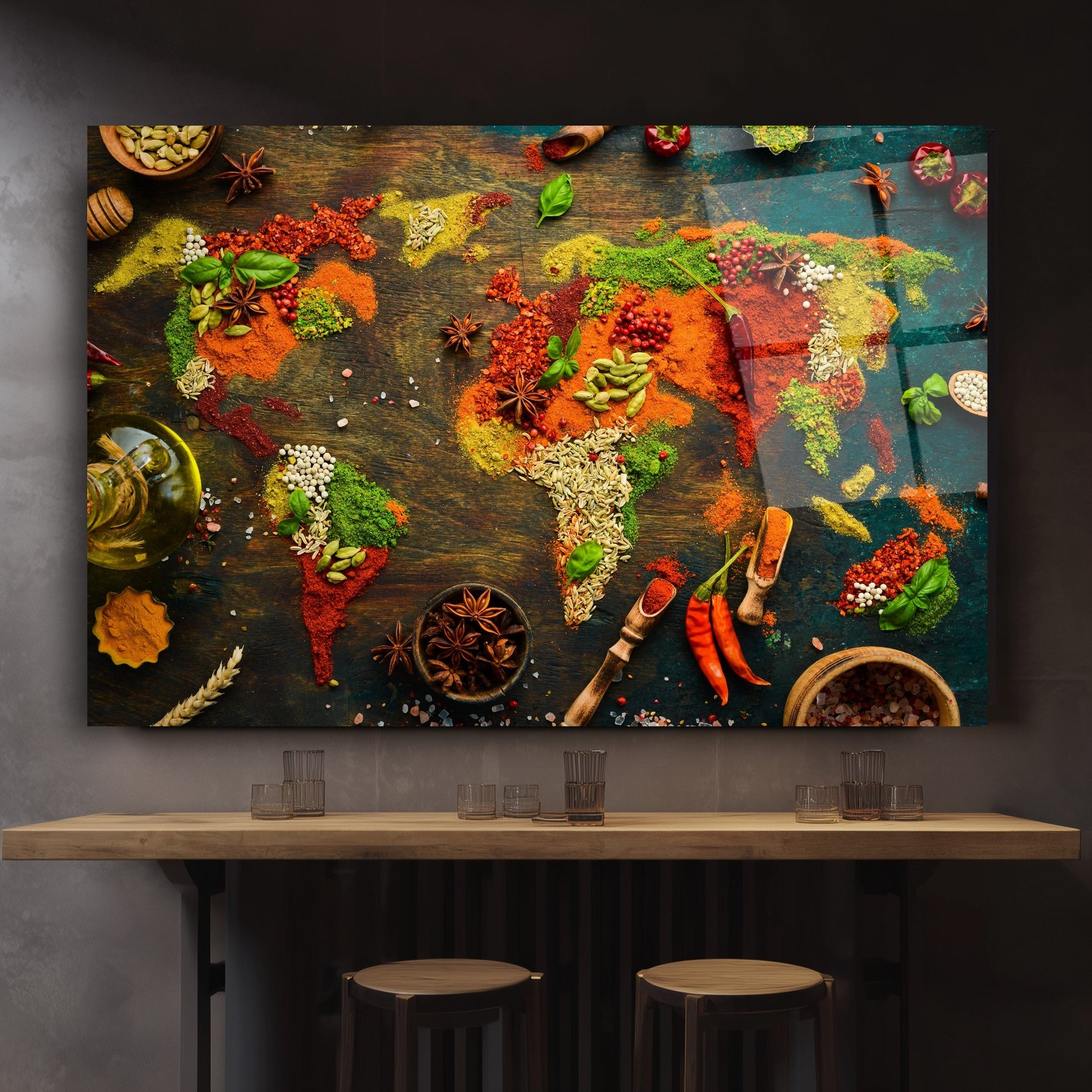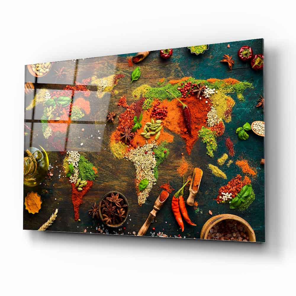 Mekanlarınıza Global Bir Lezzet Katın: Baharatlı Dünya Haritası Cam Tablo