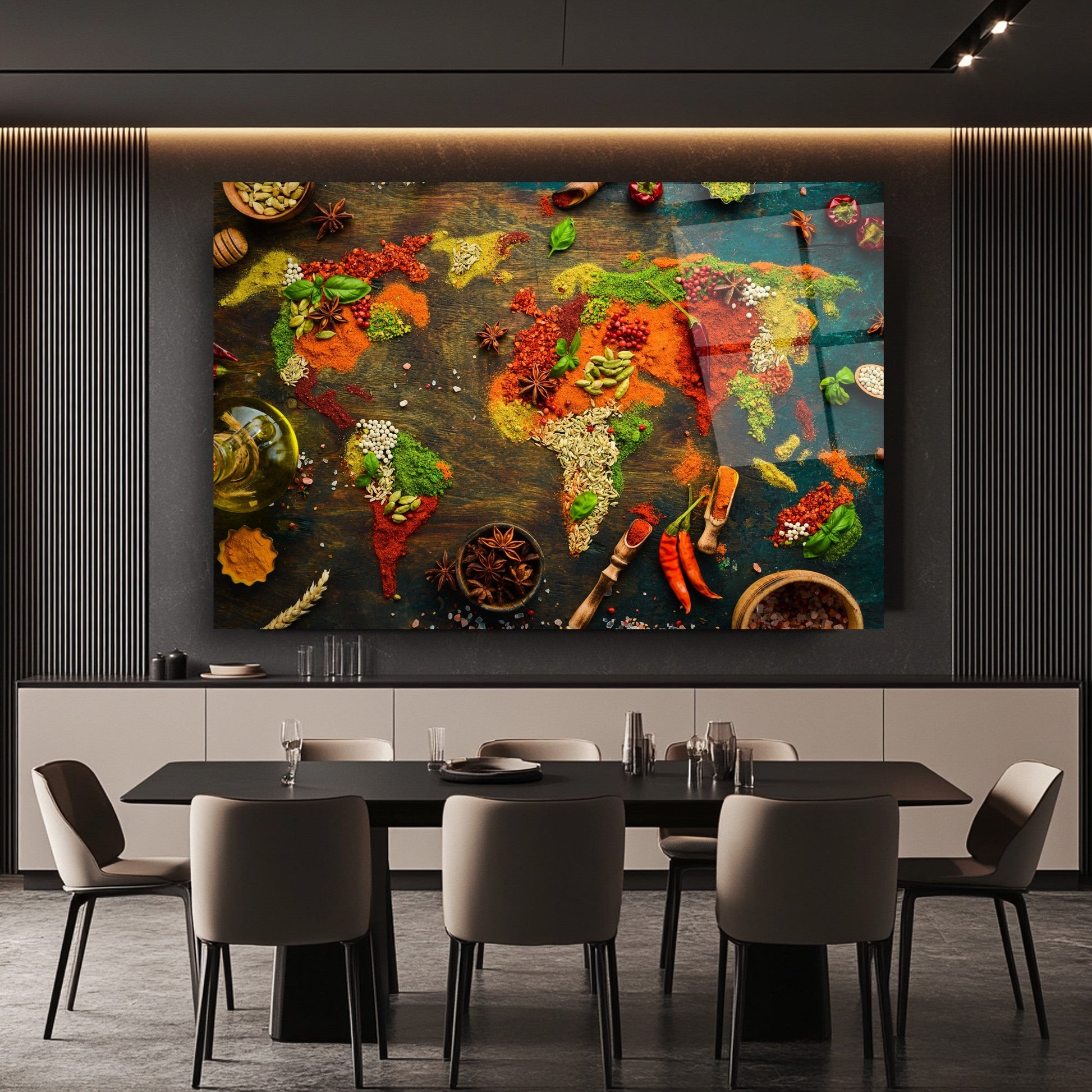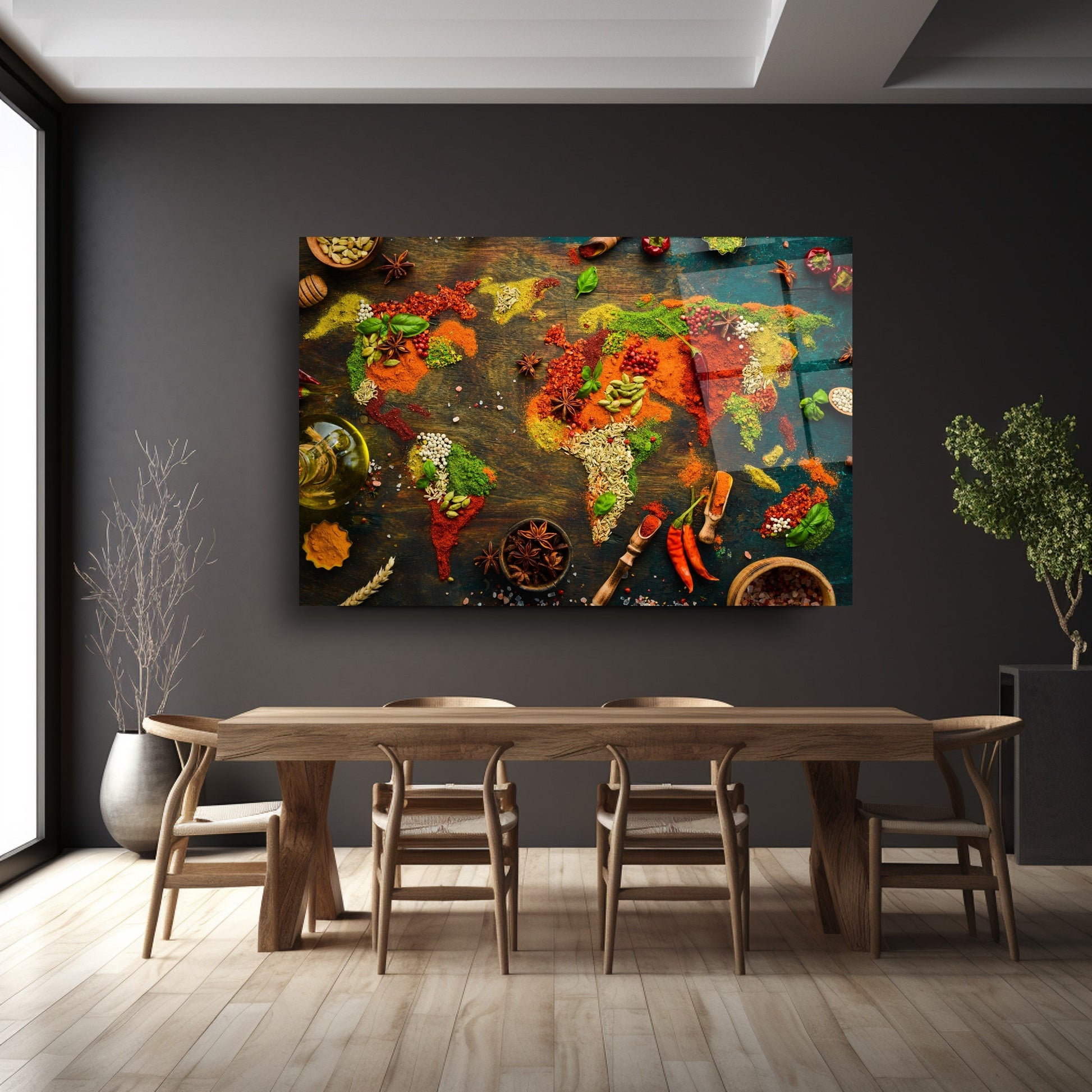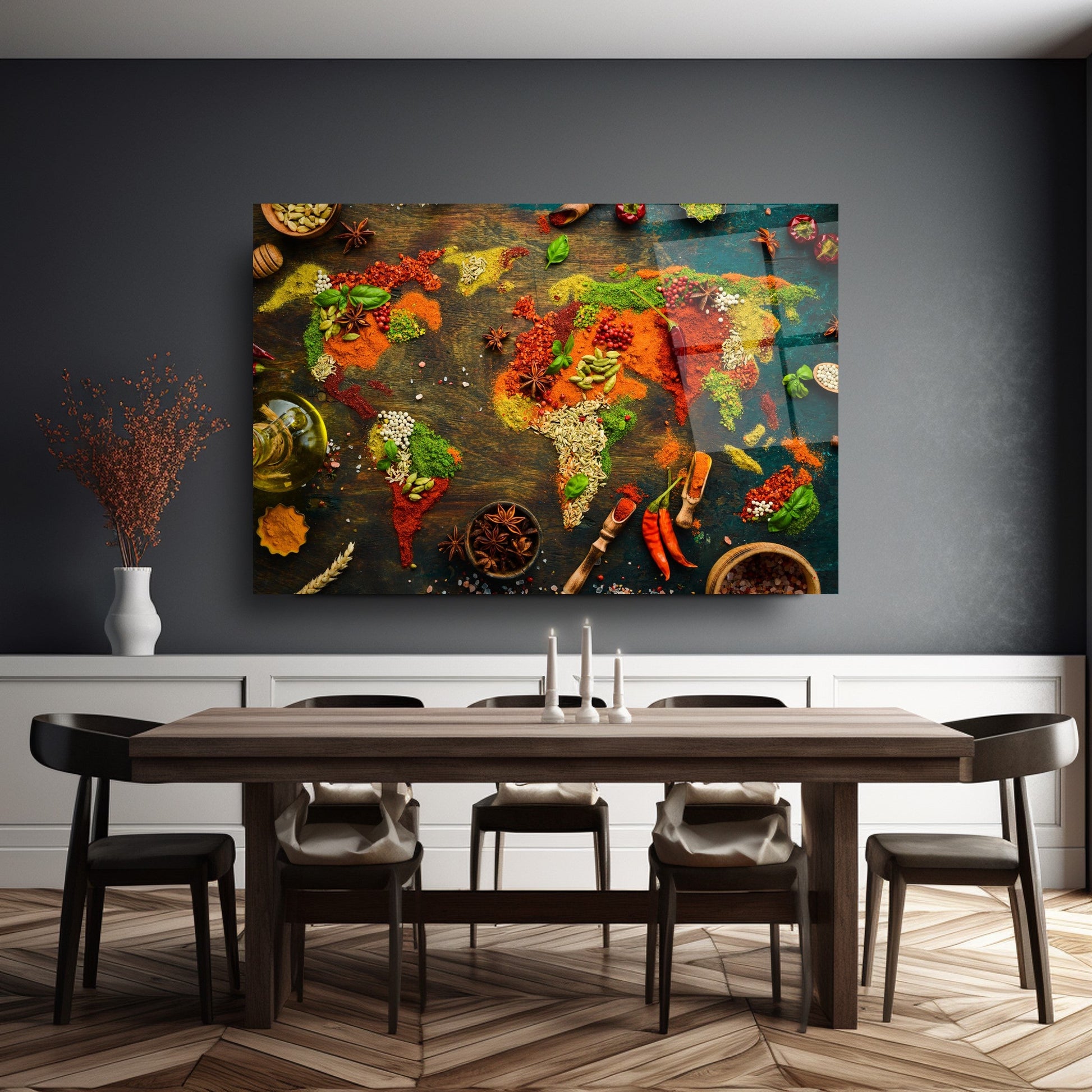 Mekanlarınıza Global Bir Lezzet Katın: Baharatlı Dünya Haritası Cam Tablo