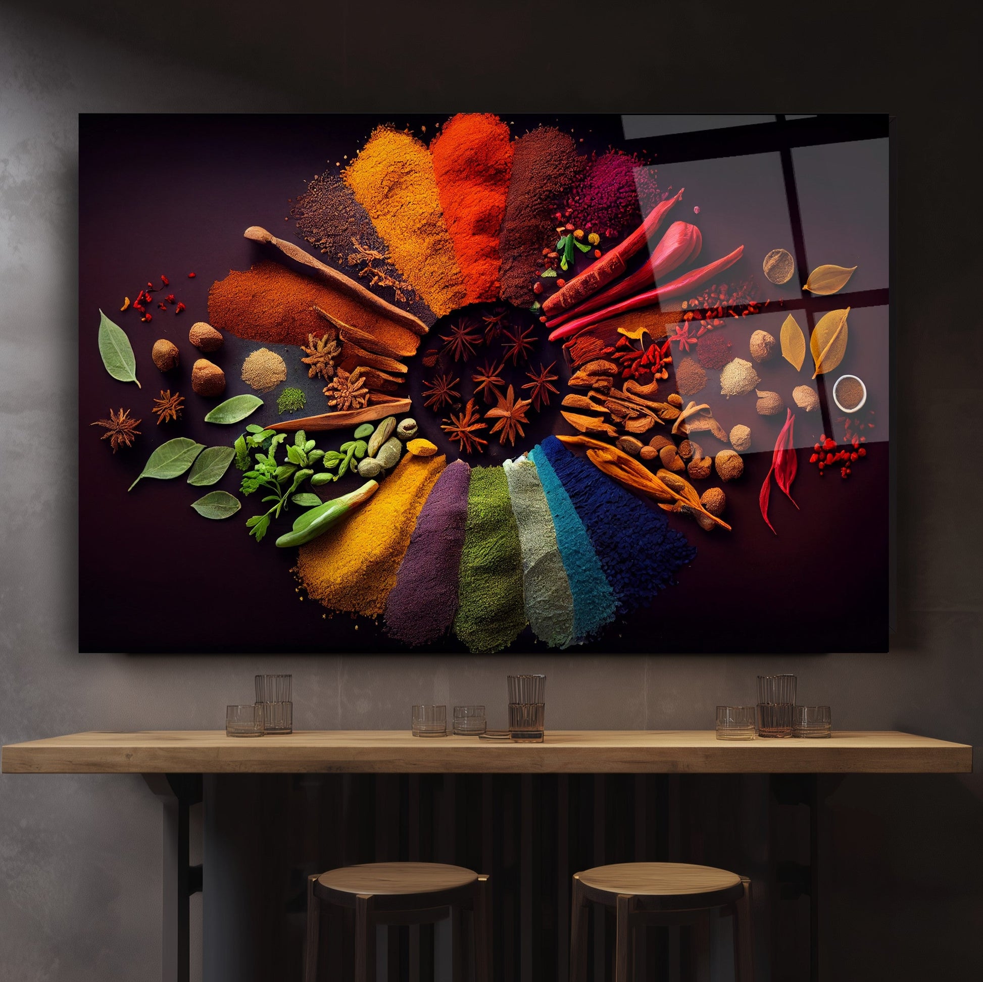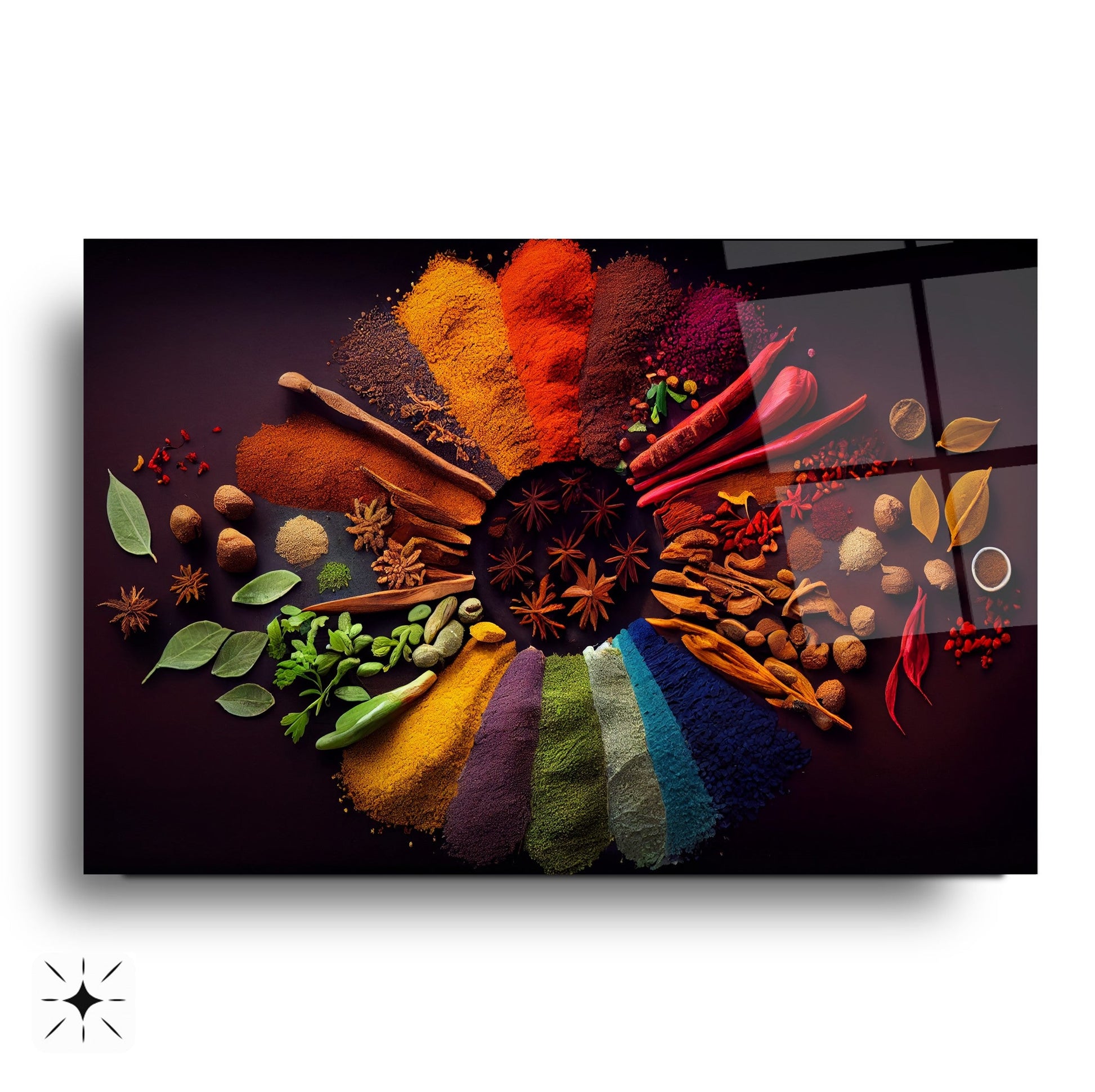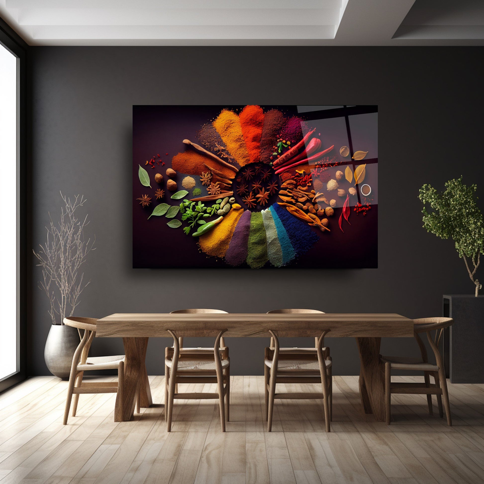 Mutfak ve Mekanlarınıza Lezzetli Bir Dokunuş: Renkli Baharatlar Duvar Dekor Cam Tablo