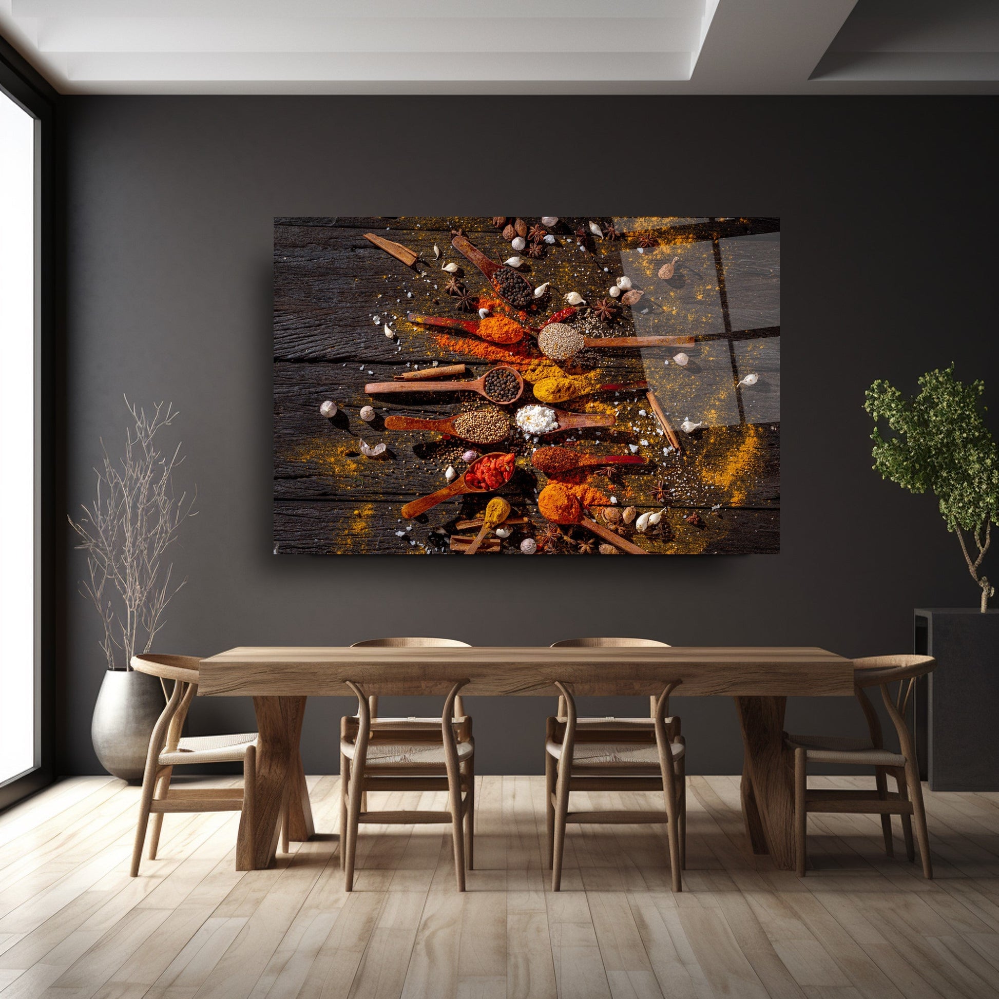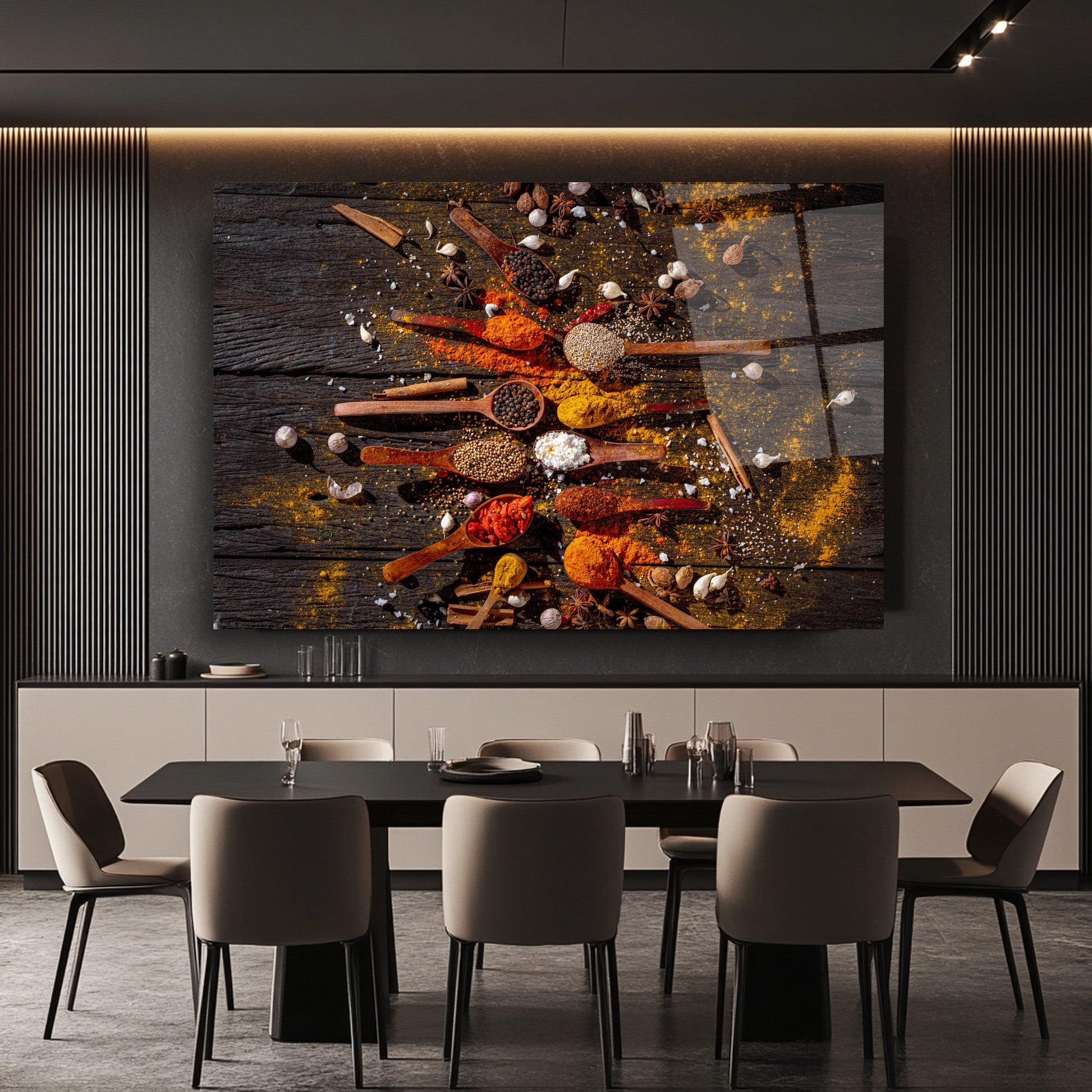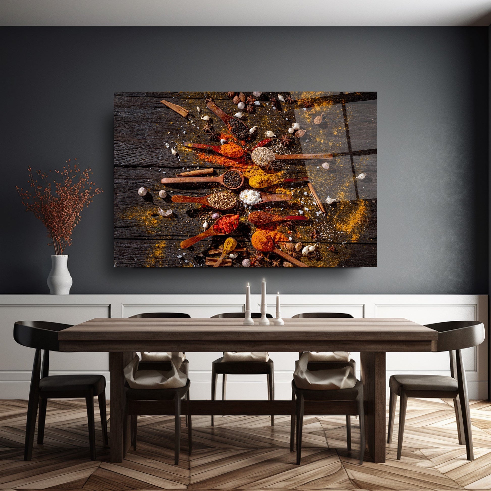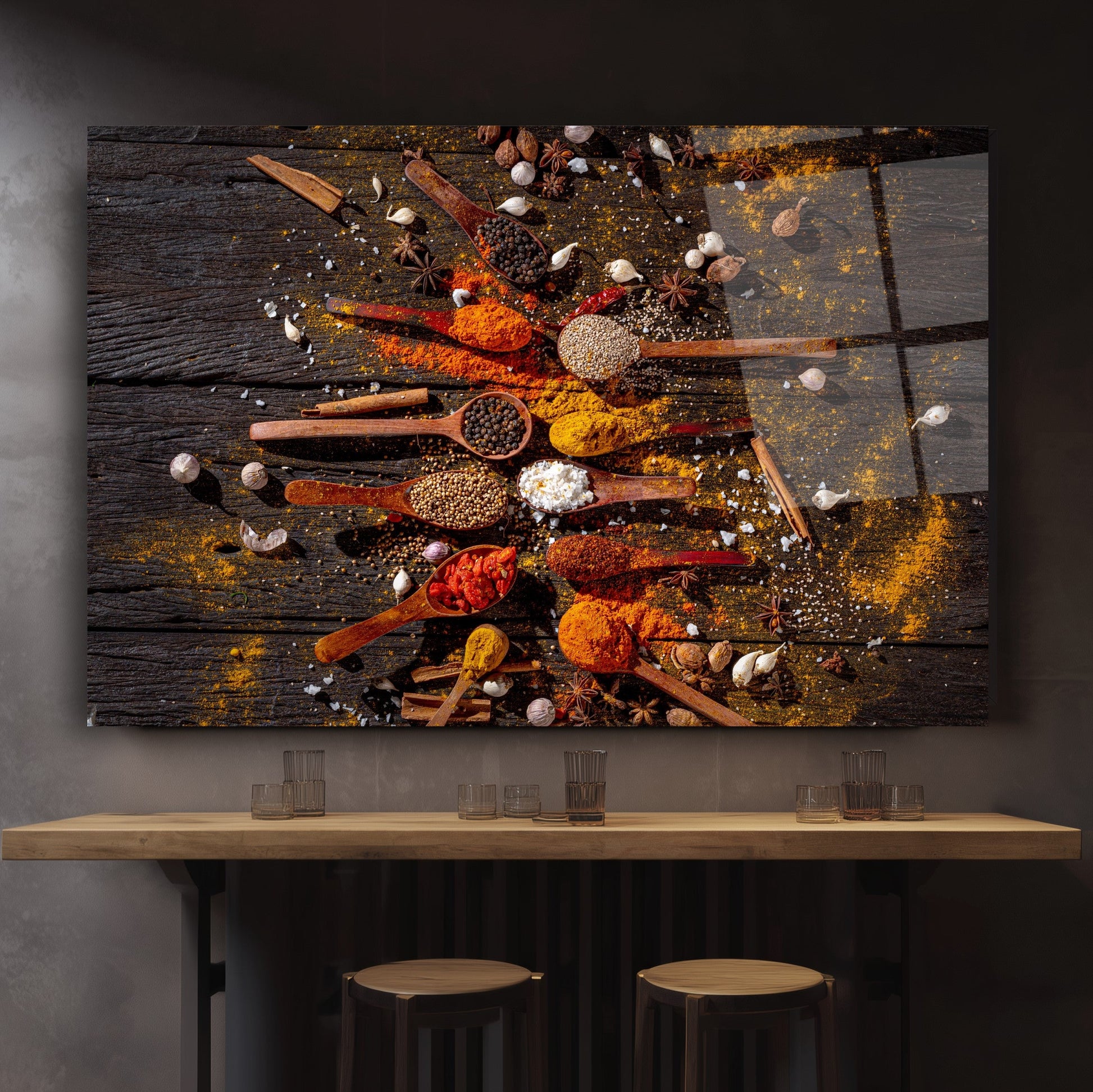 Mutfak ve Mekanlarınıza Lezzetli Bir Dokunuş: Renkli Baharatlar Cam Tablo