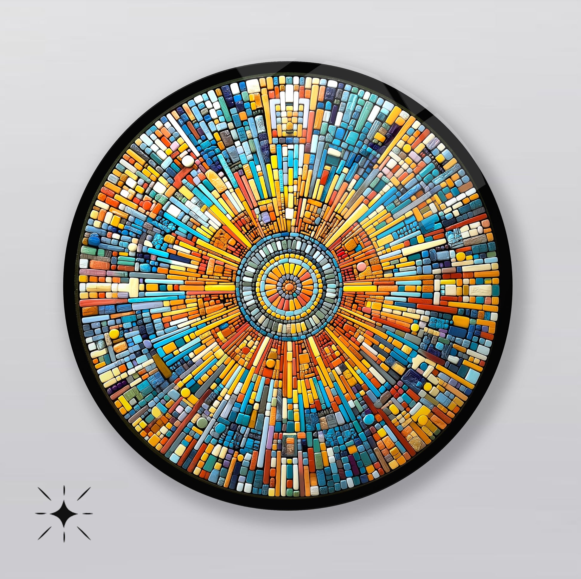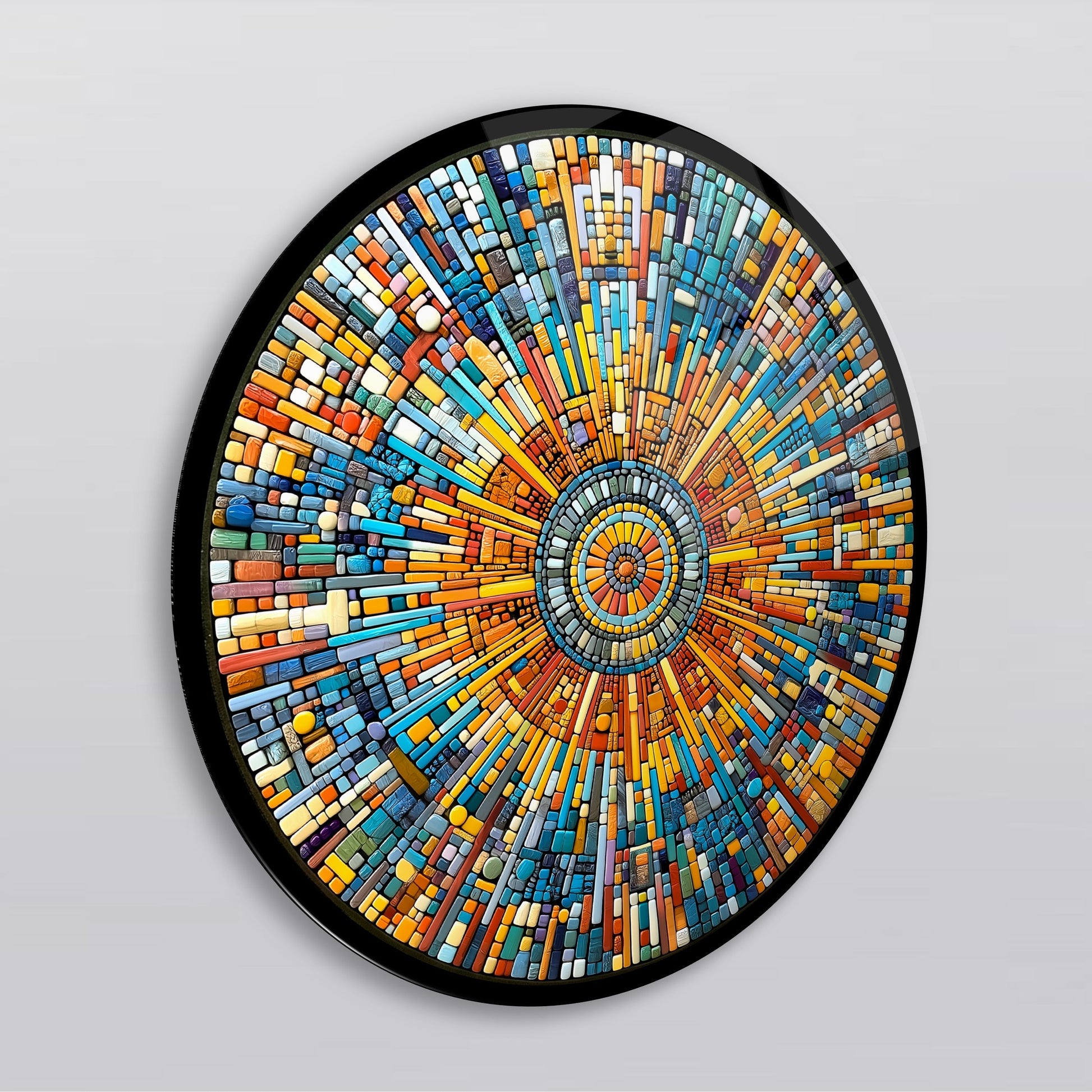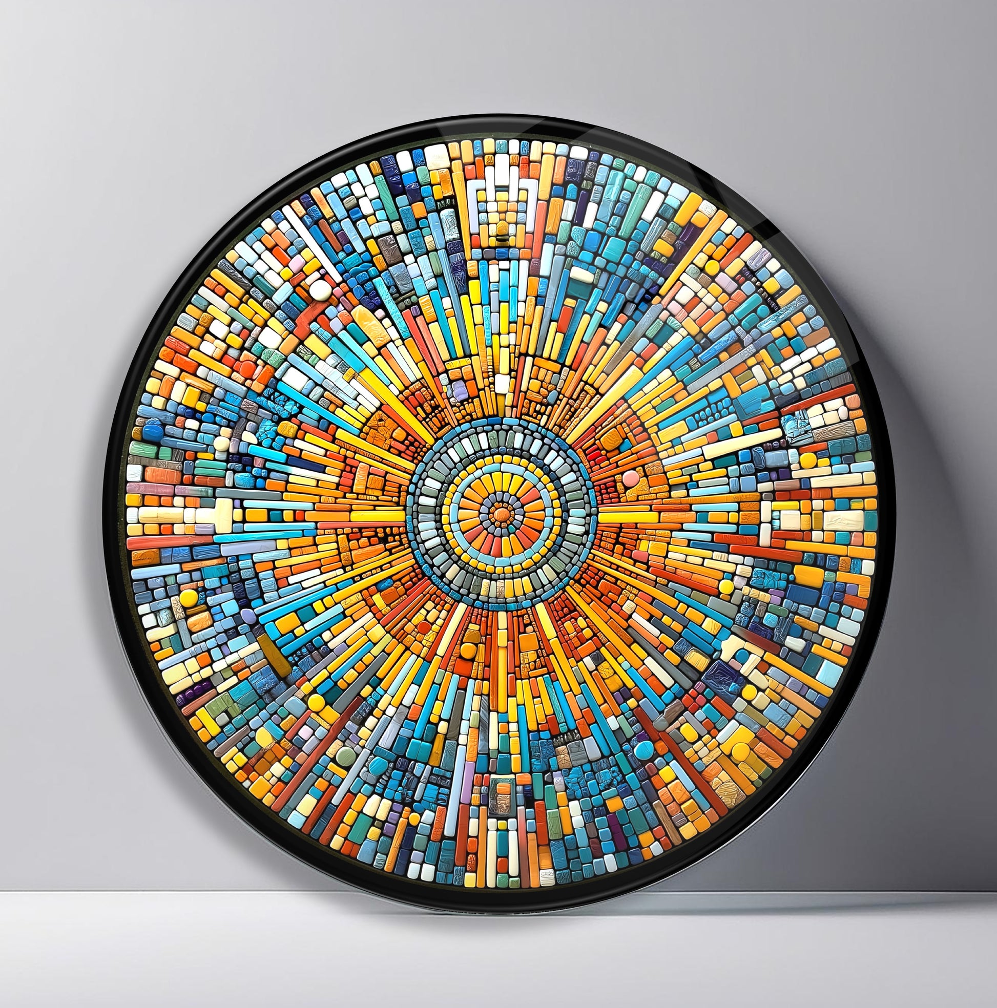 Soyut Mozaik Desen Yuvarlak Cam Tablo