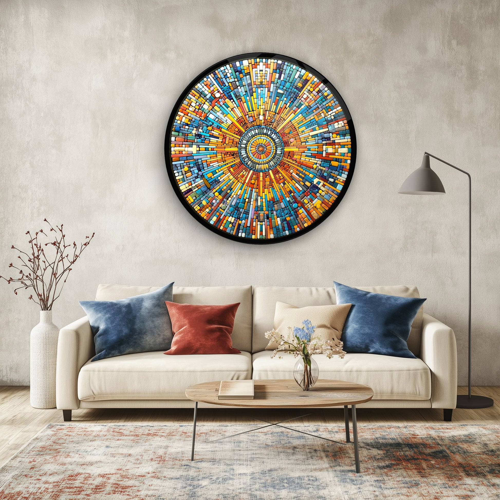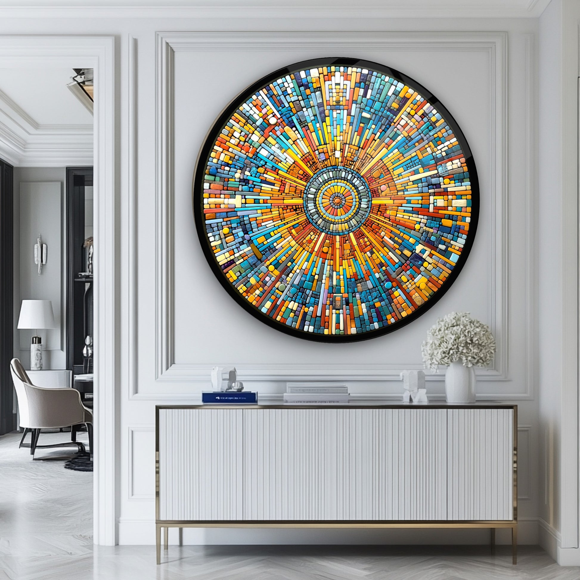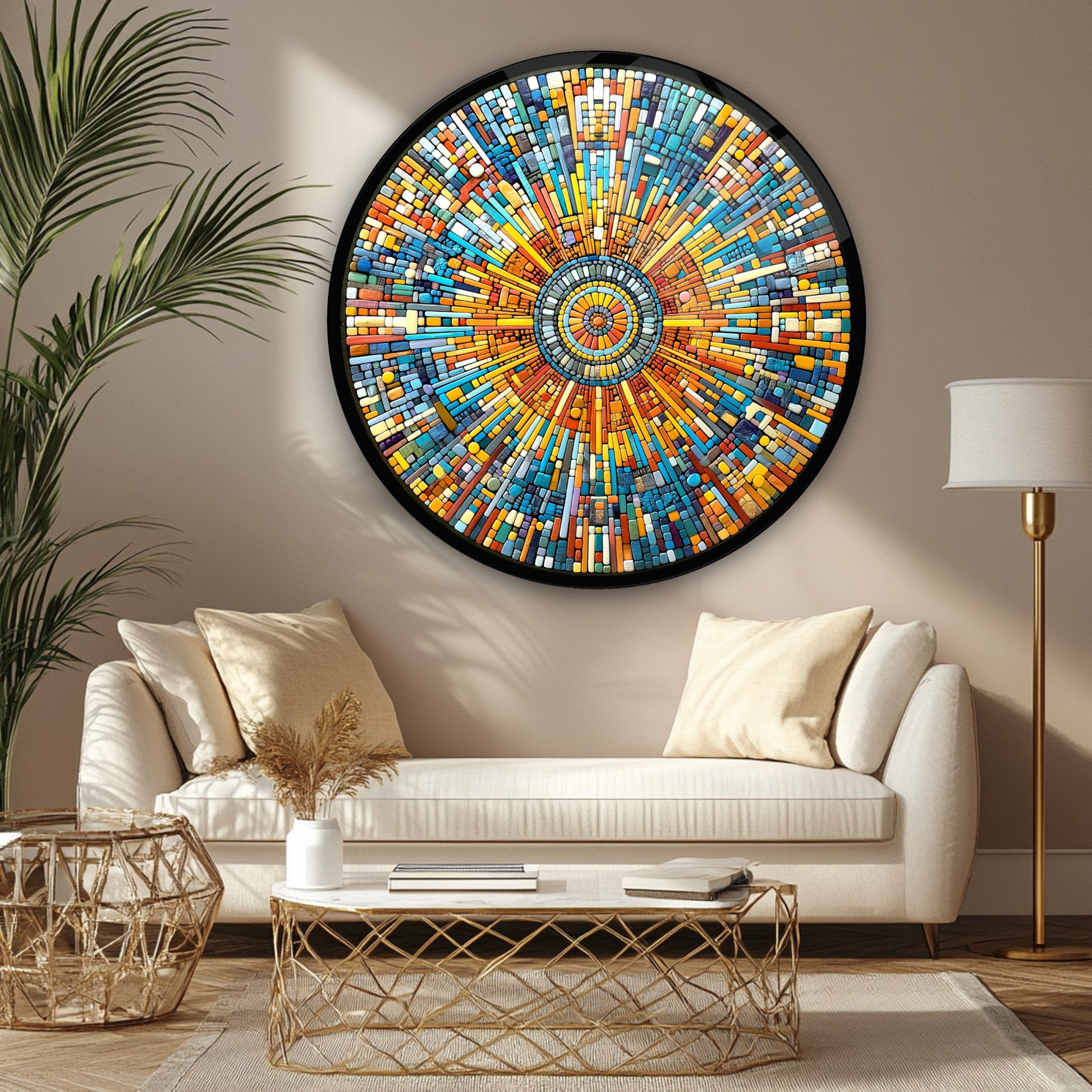 Soyut Mozaik Desen Yuvarlak Cam Tablo