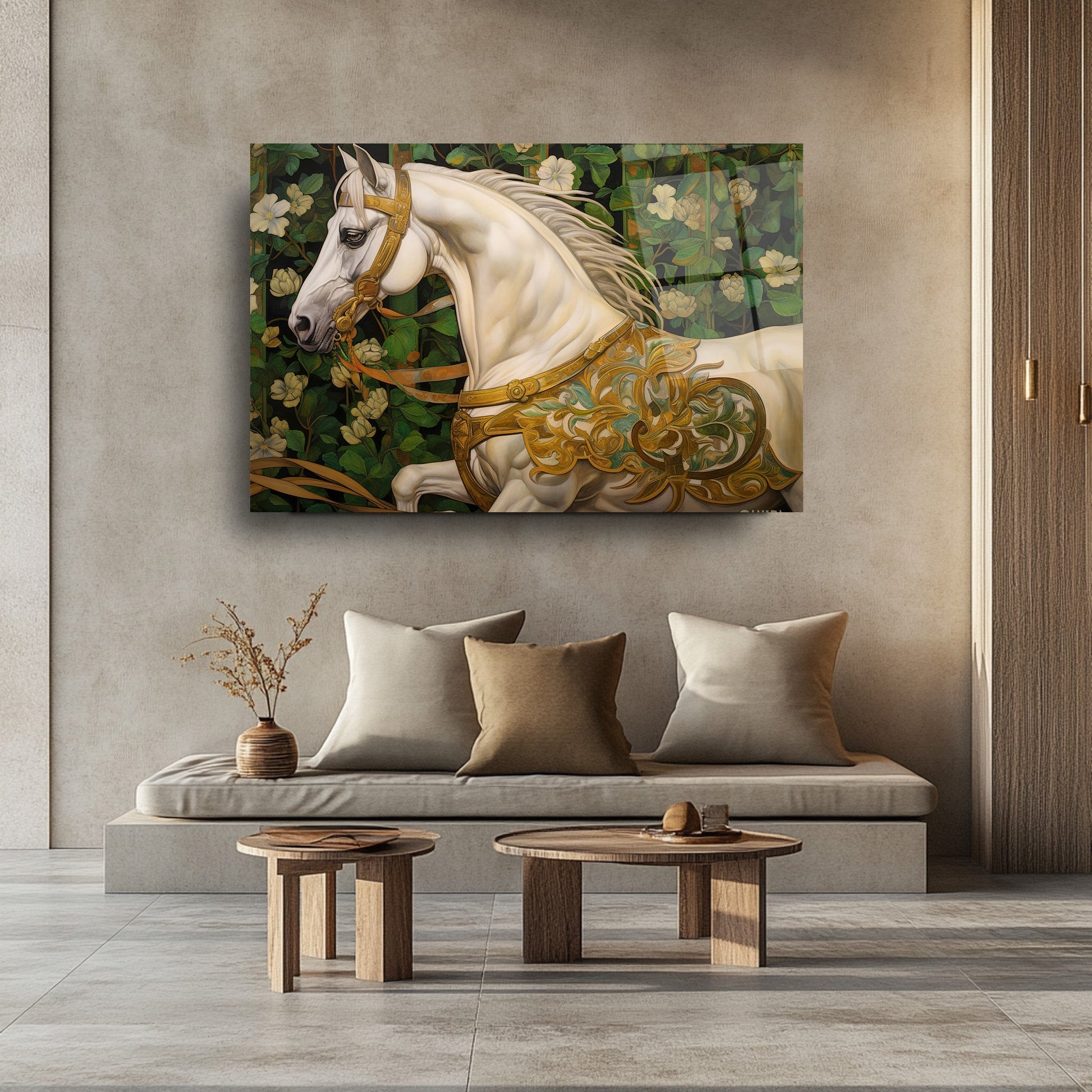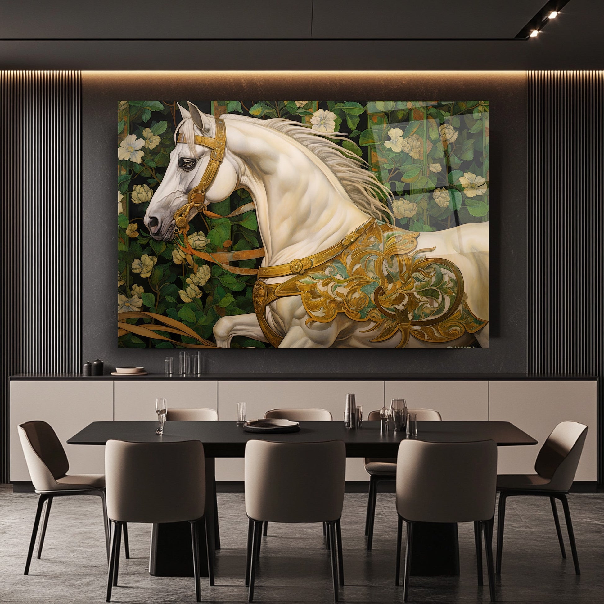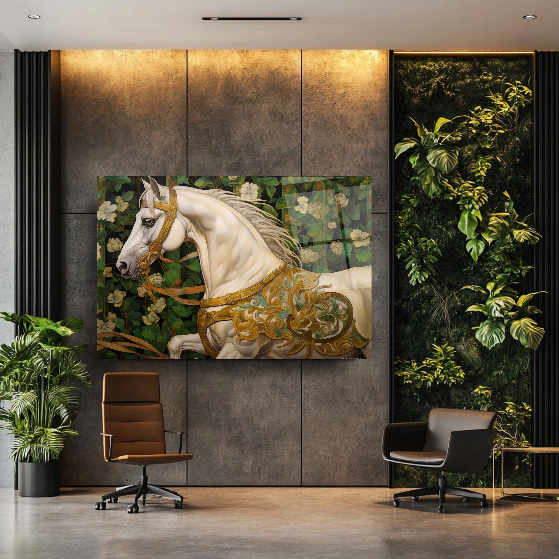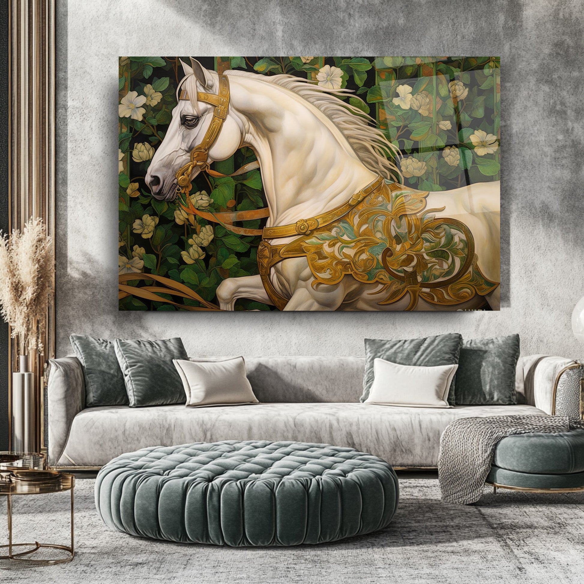 Rüya gibi çiçeklerle süslenen beyaz at figürü, altın detaylarla bütünleşerek mekânınıza zarif bir dokunuş katıyor. Zarif siluet, her açıdan dikkat çeken sanatsal bir vurgu sağlar. Ultra-clear temperli cam ve HD UV baskı teknolojisi sayesinde renkler solmadan uzun ömürlü kalır. Çerçevesiz minimal tasarımıyla salon, yatak odası veya ofis gibi alanlara estetik, lüks ve canlılık getirir. Sanat ve doğayı bir araya getiren dekor arayanlar için mükemmel tercih.