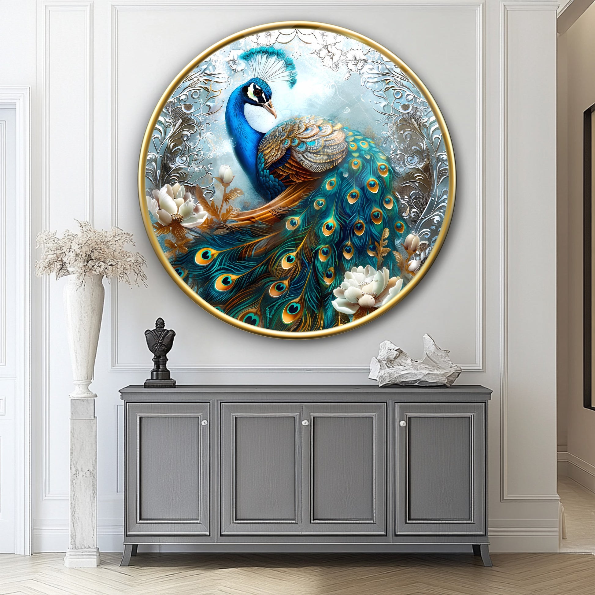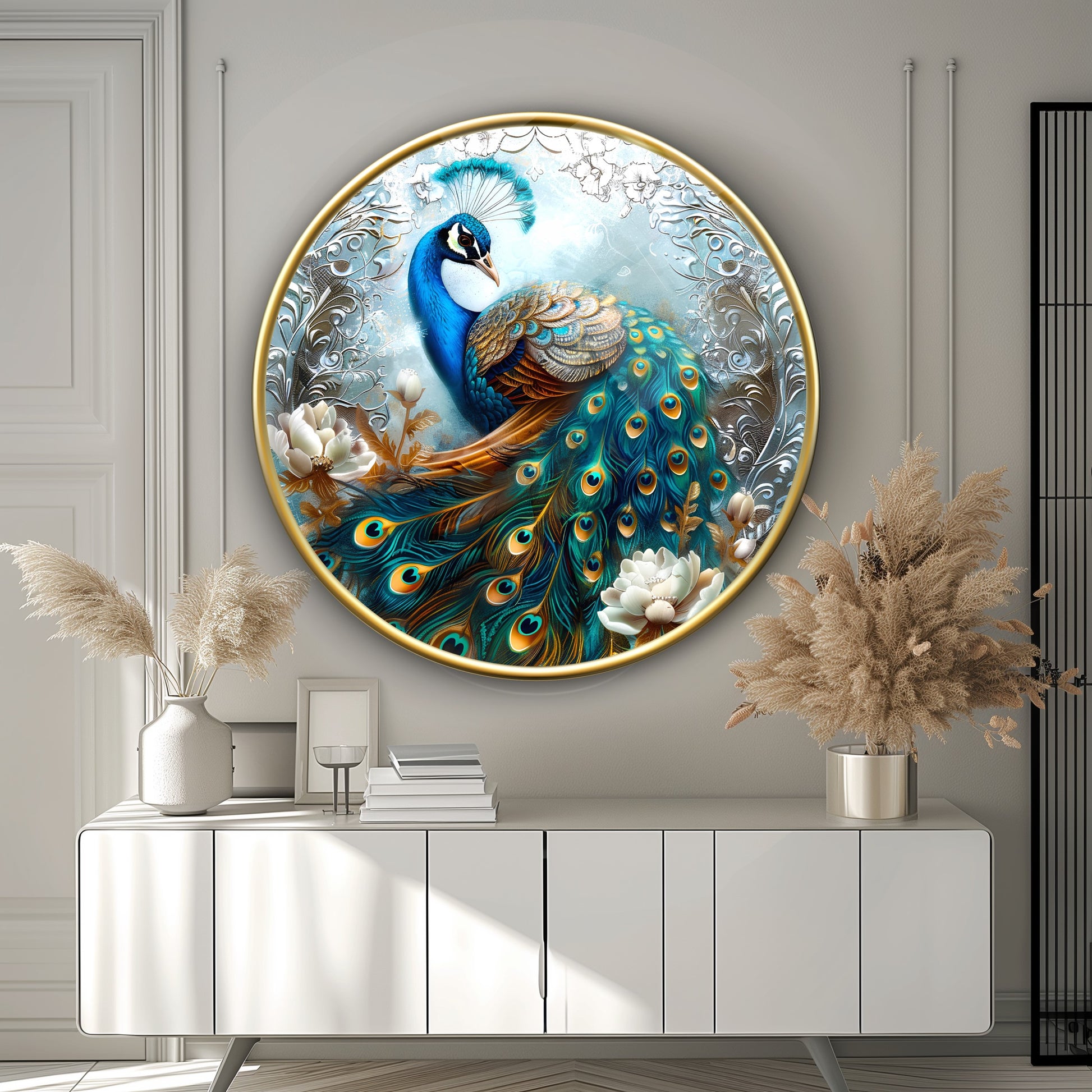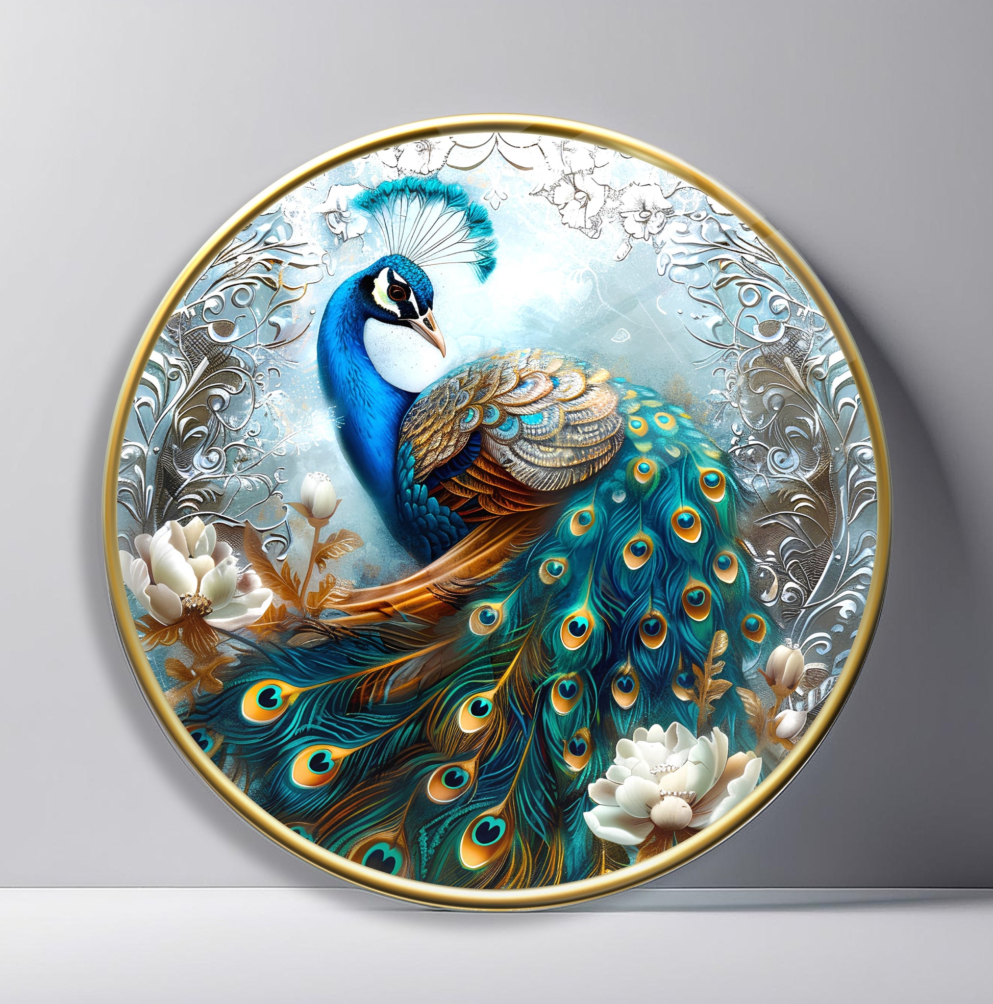 Çiçekli Tavus Kuşu Yuvarlak Cam Tablo