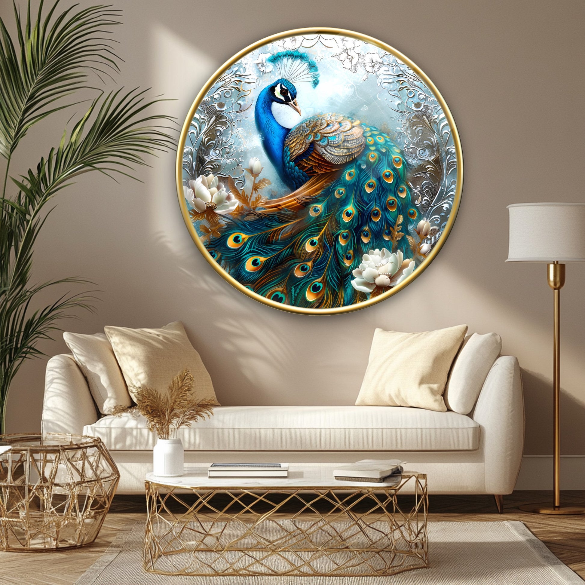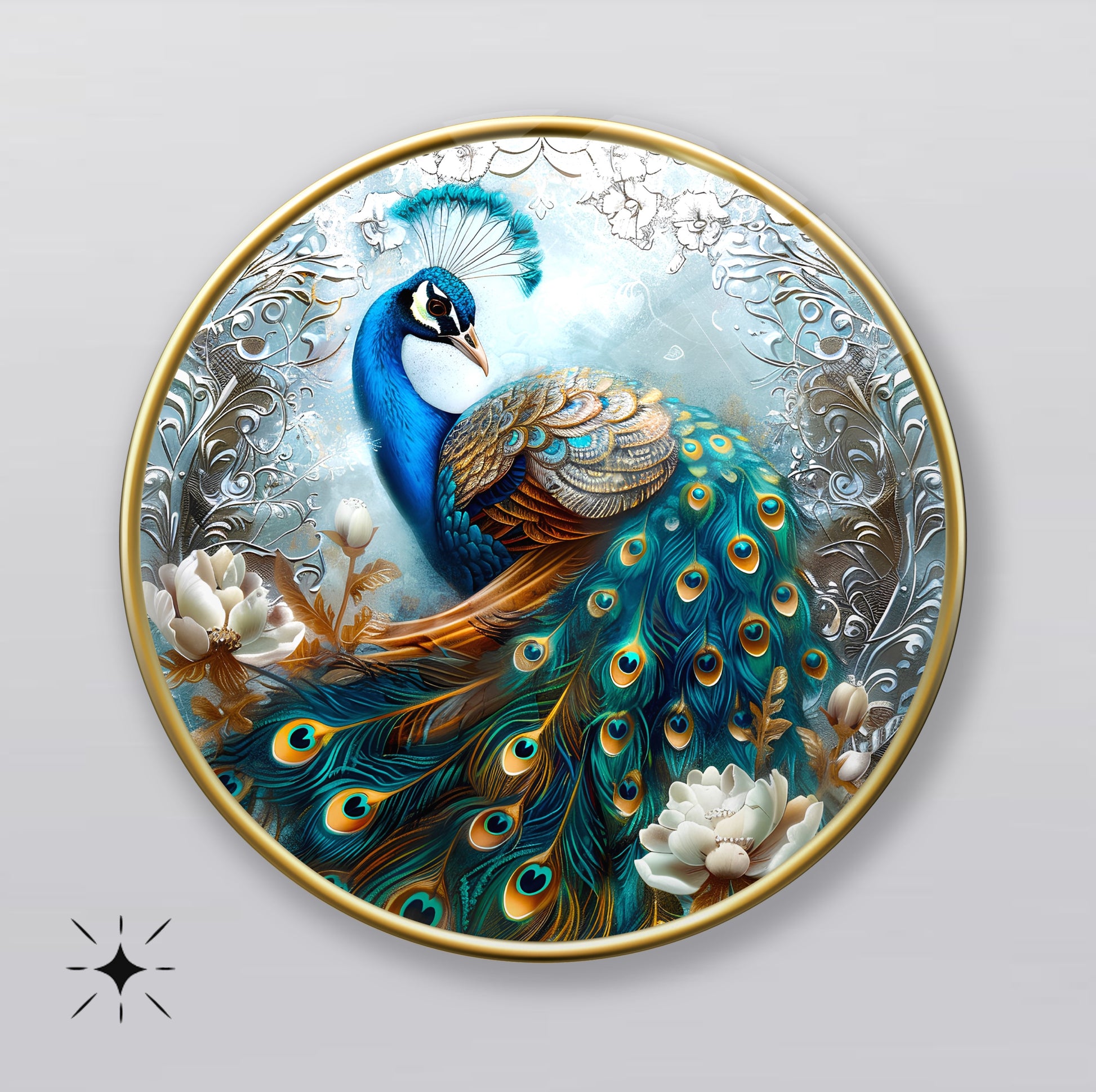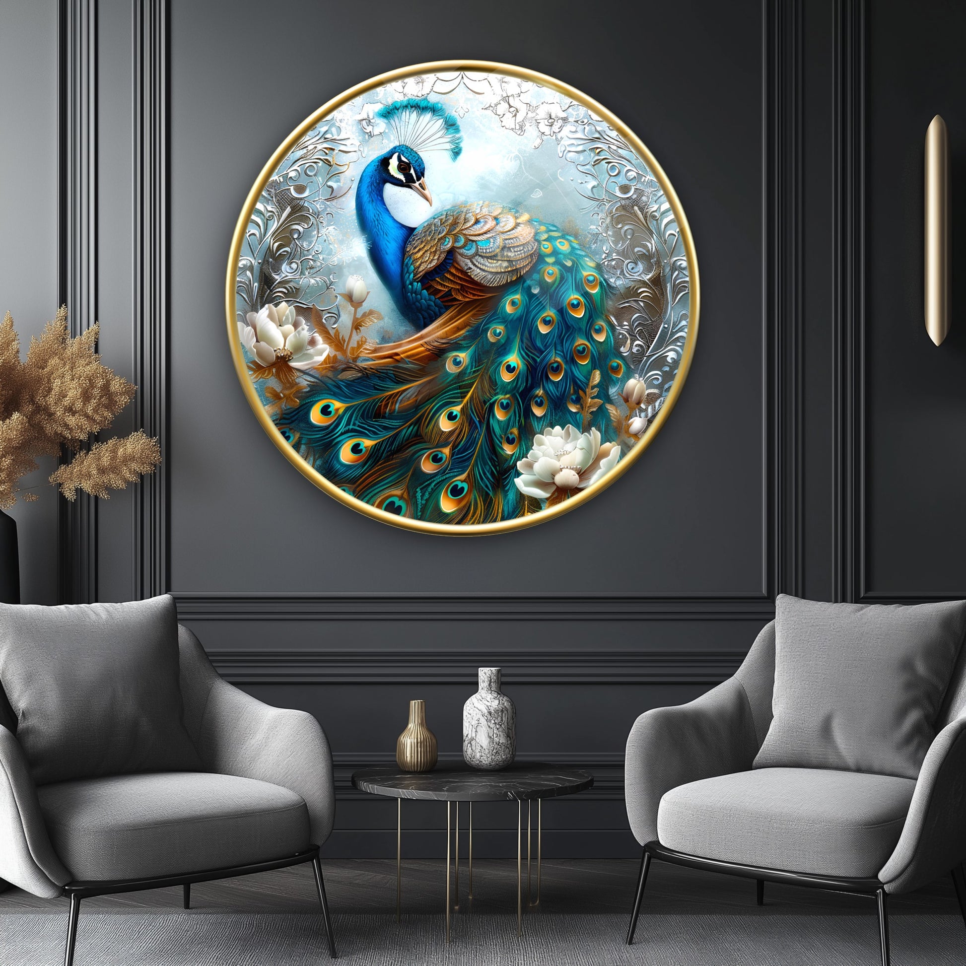 Çiçekli Tavus Kuşu Yuvarlak Cam Tablo