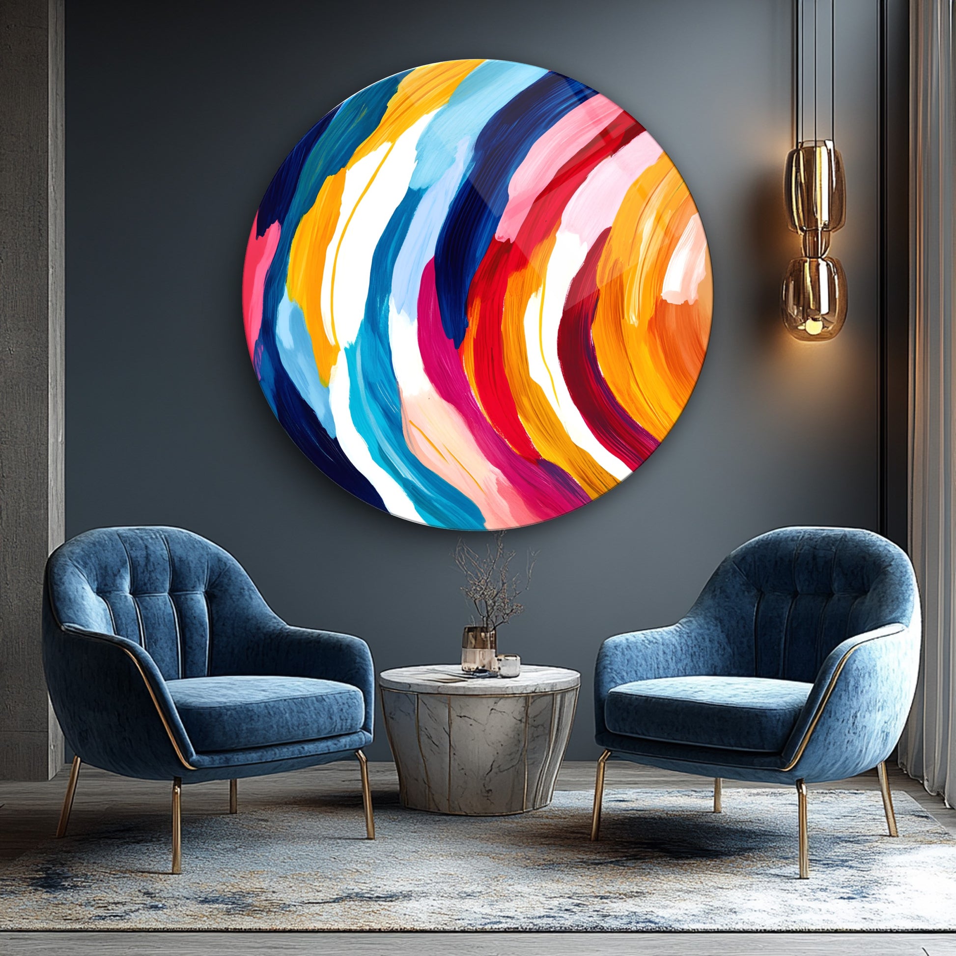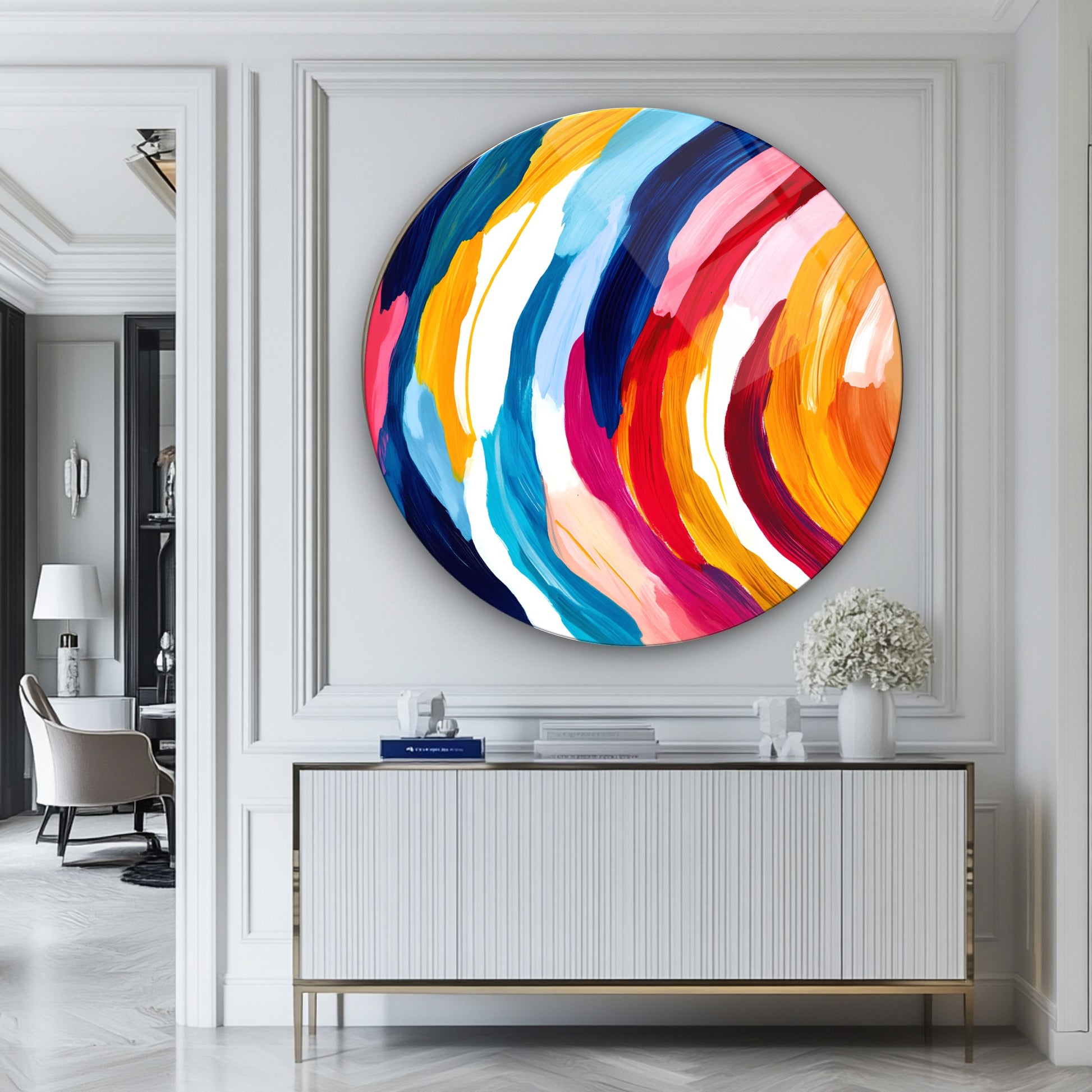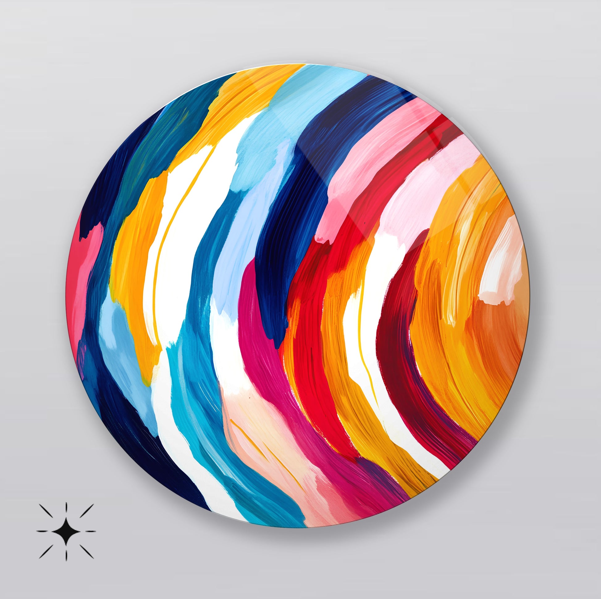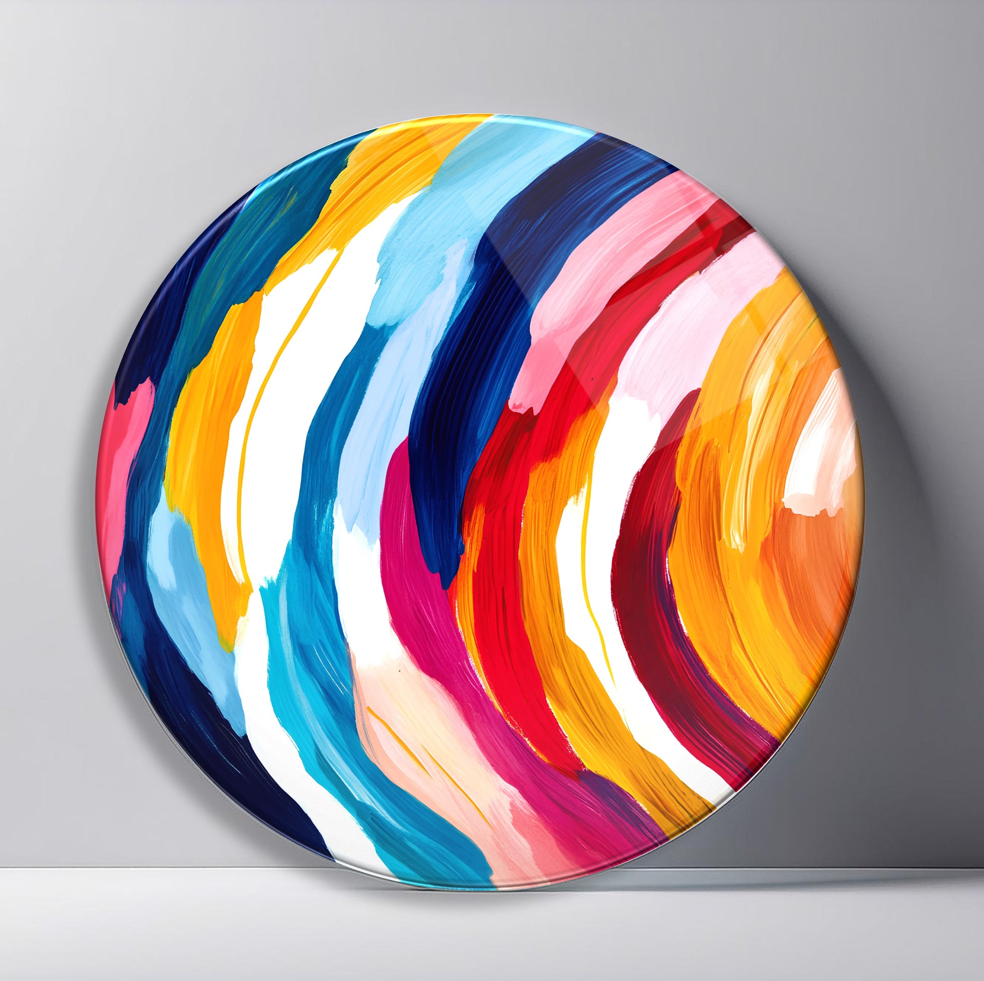 Çok renkli ve soft tonların uyumlu birleşimiyle hazırlanan bu soyut tasarım, yuvarlak cam tabloda ferah ve modern bir hava yaratıyor. CamDeko kalitesiyle kırılmaz temperli cam üzerine UV baskı yöntemiyle üretilen ürün, ev, ofis, kuaför salonu ve butik mekanlarda dekorasyonun vazgeçilmez parçası olur. Yumuşak renk geçişleri ve soyut form, bulunduğu mekâna sakinlik ve estetik katar. Dayanıklı yapısıyla uzun ömürlü kullanım sağlar. Modern ve şık dekorasyon anlayışını benimseyenler için ideal bir seçenektir.