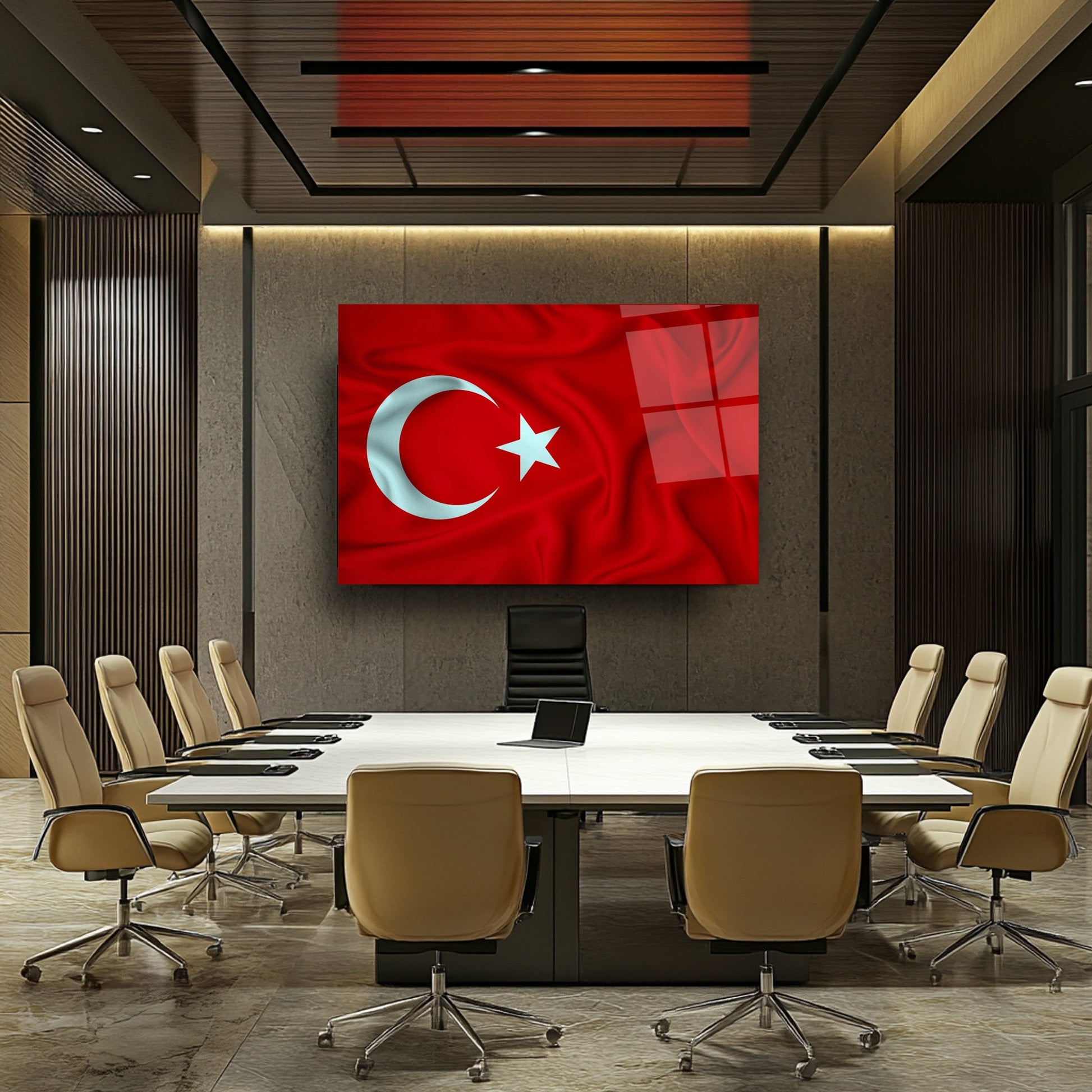 Camdeko’nun Dalgalı Türk Bayrak Cam Tablosu, güçlü kırmızı zemin üzerinde zarif dalga hareketleriyle öne çıkan ay-yıldız motifini UV baskıyla canlı ve kalıcı renklere dönüştürüyor. Temperli, kırılmaz cam yüzey, parlak ve ultra-silindirli yapısıyla hem ofis hem ev dekorasyonuna anlamlı bir milli dokunuş katıyor. Farklı boyut seçenekleriyle salon, çalışma alanı veya makam odasına kolayca uyum sağlarken, tek çivili askı sistemi ile pratik montaj imkânı sunar. Milliyetçi ve dekoratif detay arayan kullanıcılar için ideal, estetik ve şık bir duvar dekorudur.