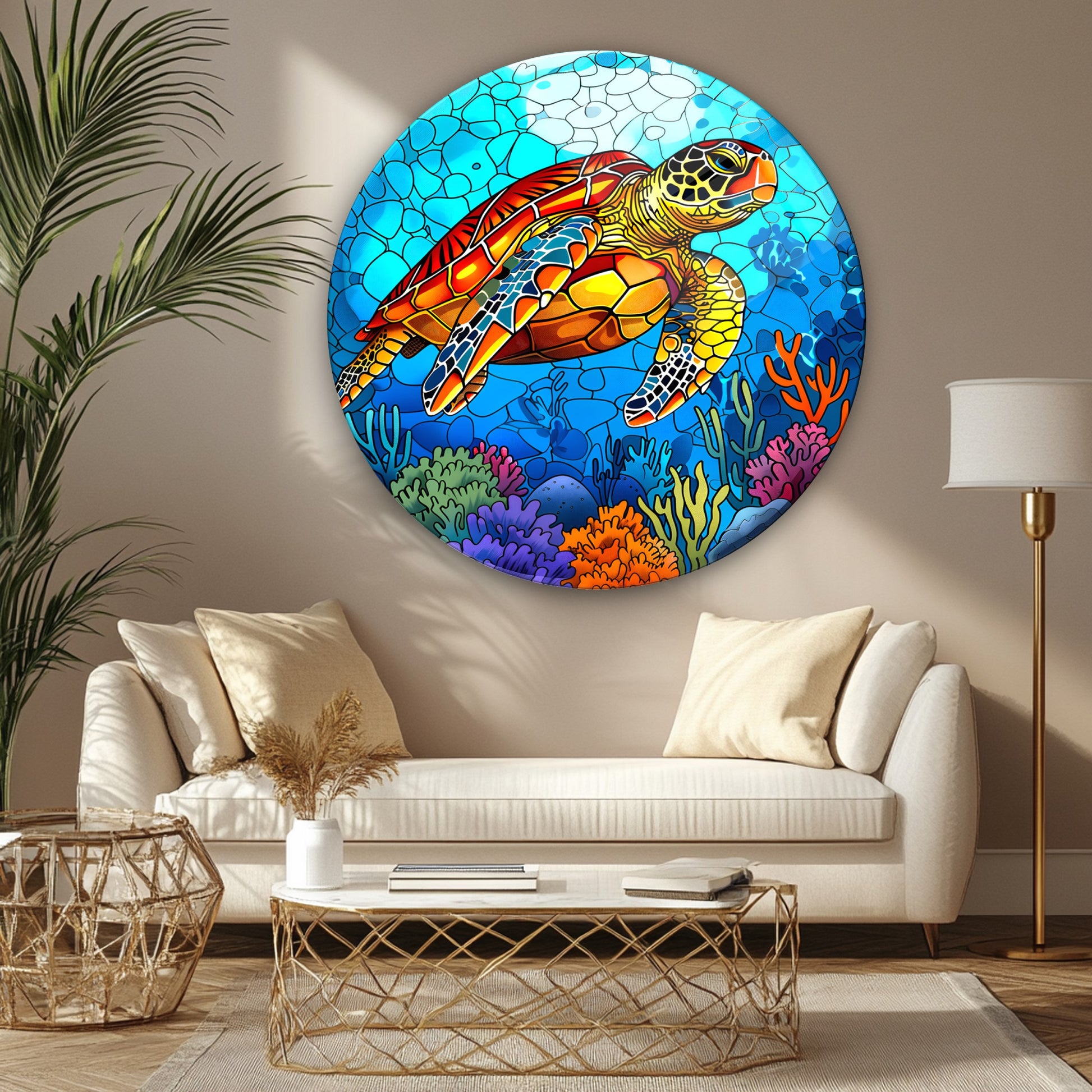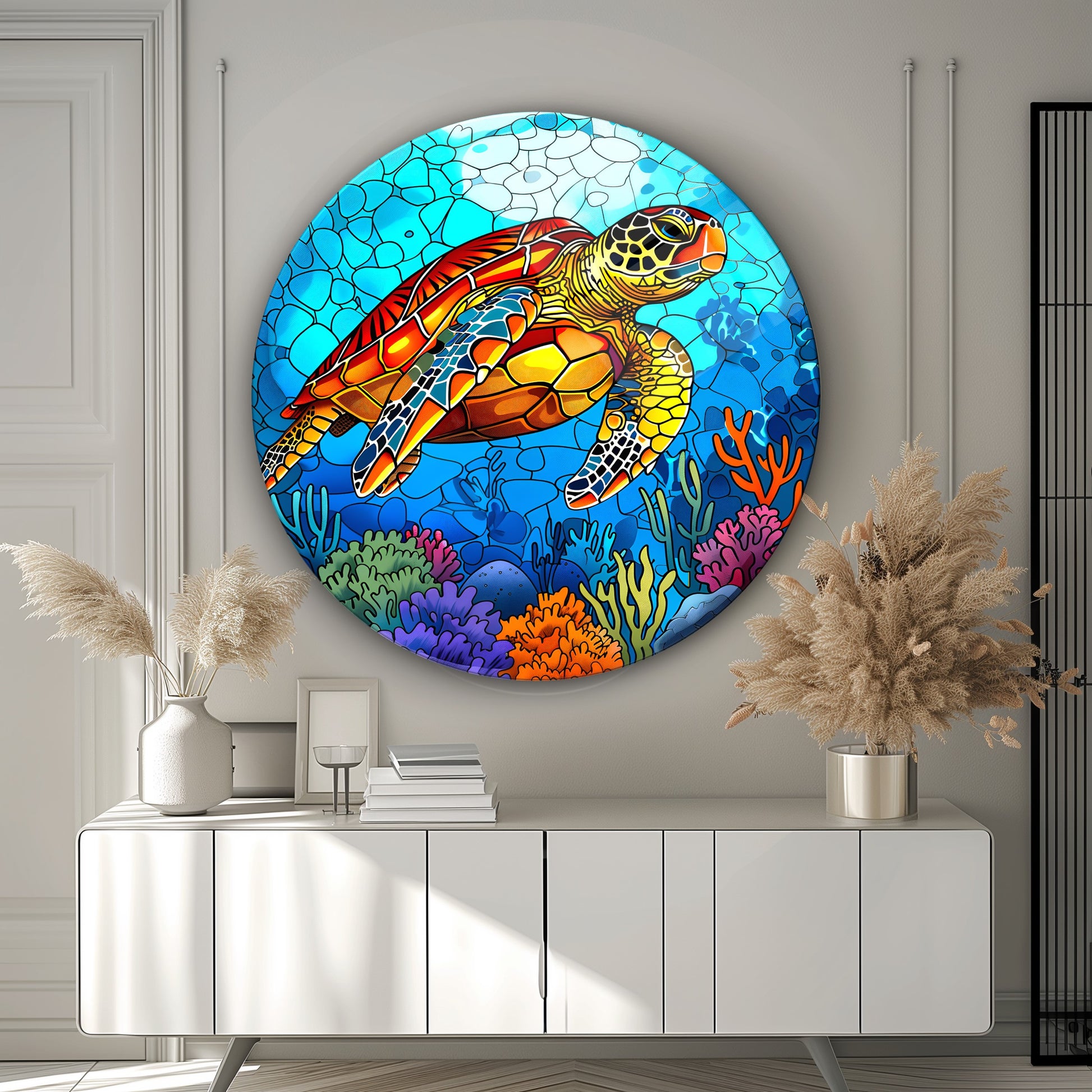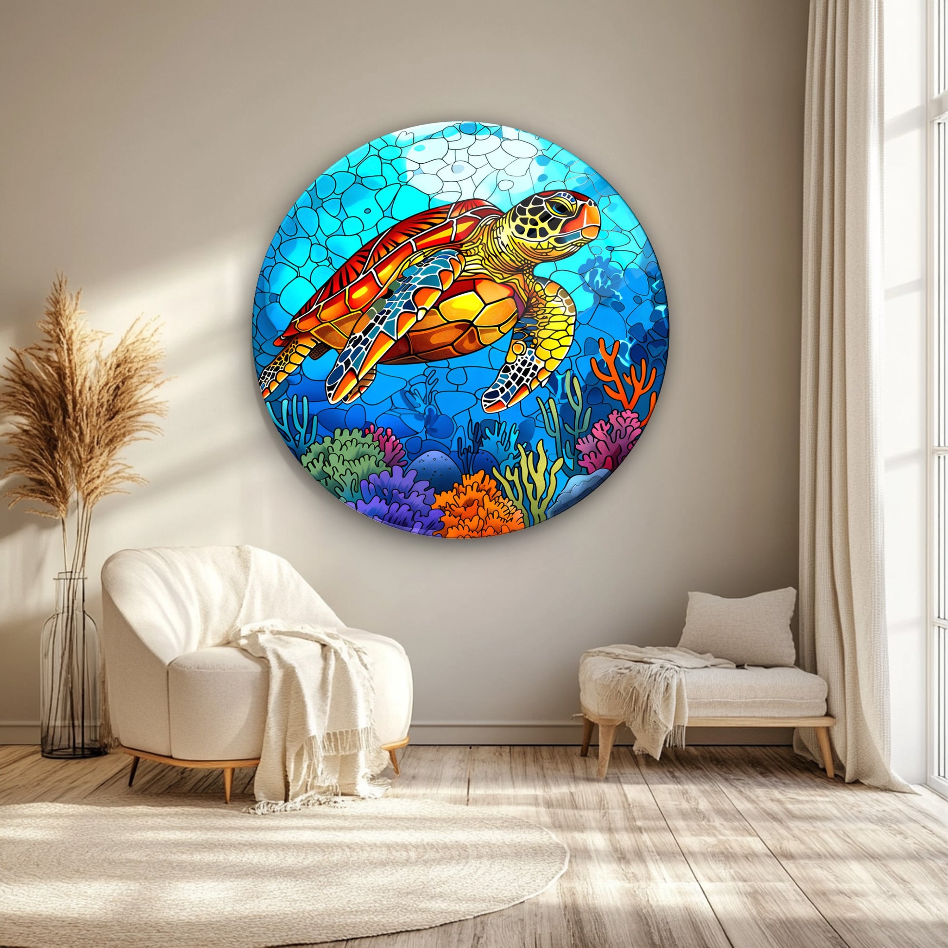 Deniz Kaplumbağası Yuvarlak Cam Tablo