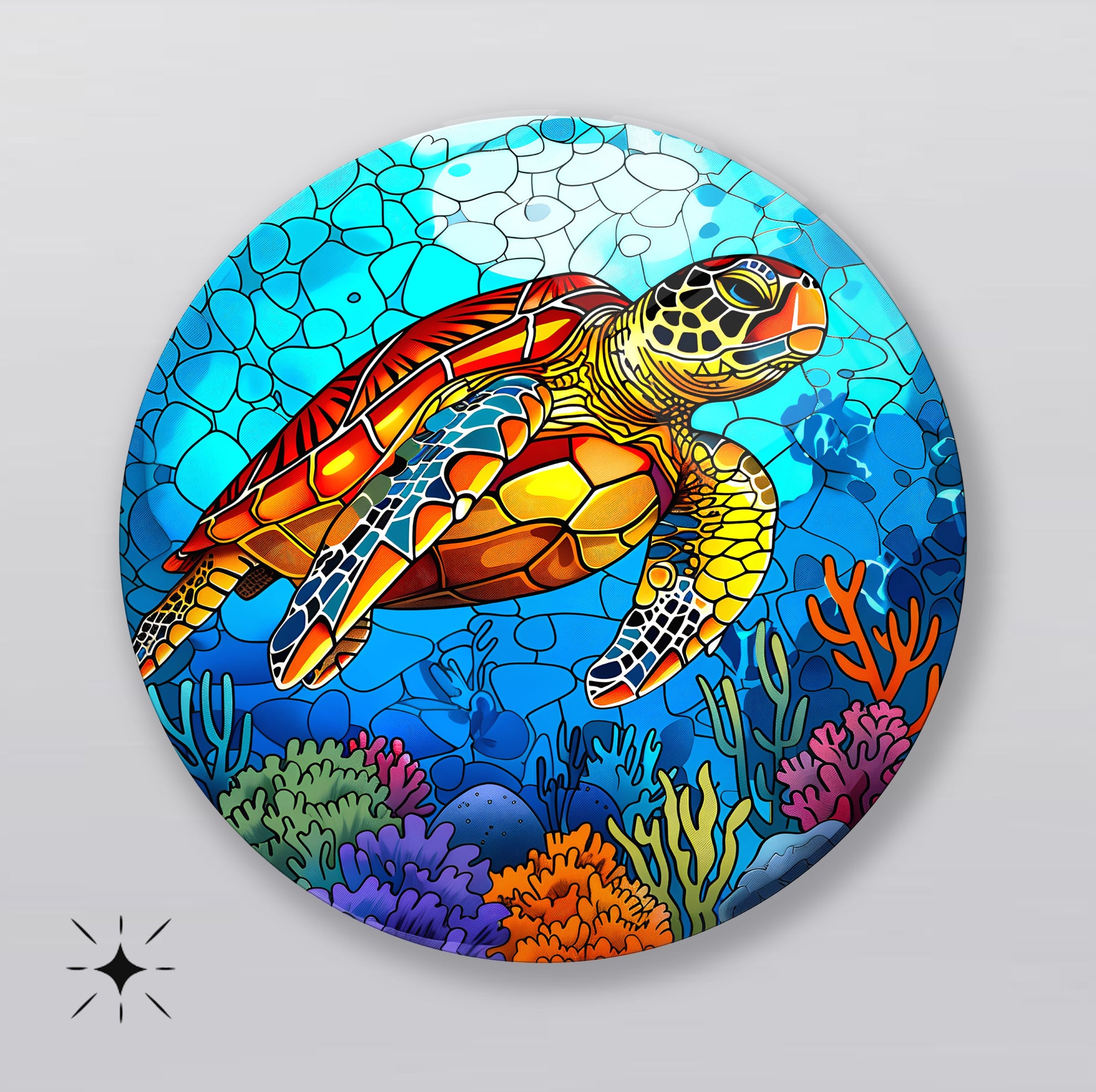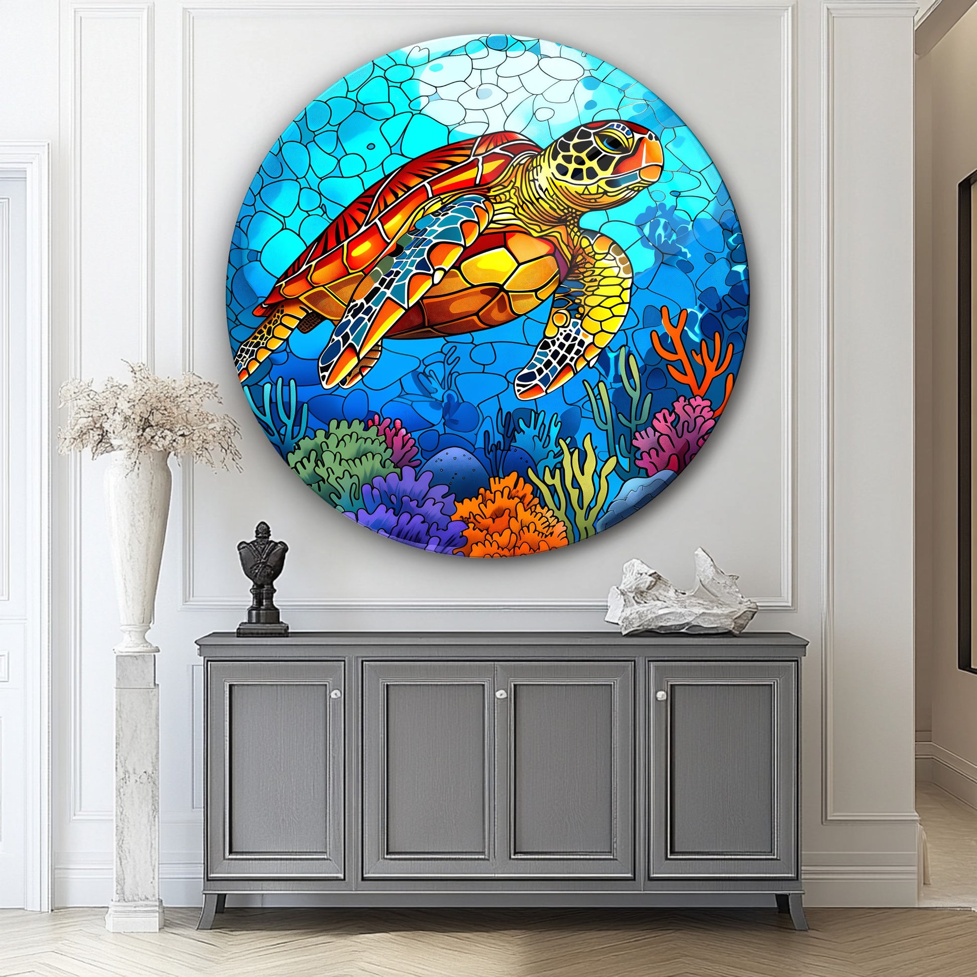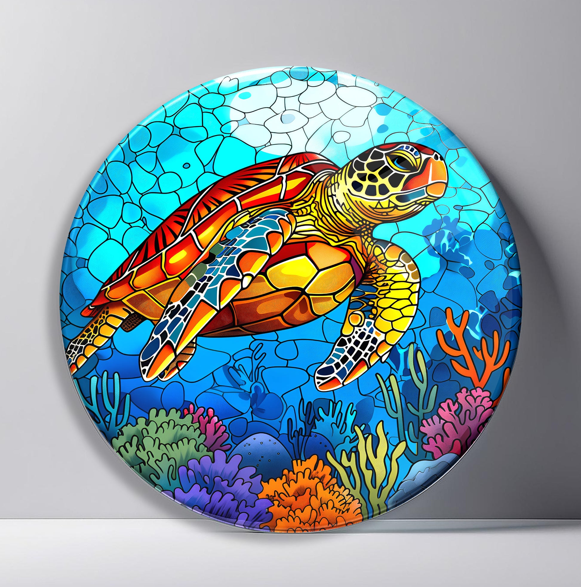 Deniz Kaplumbağası Yuvarlak Cam Tablo