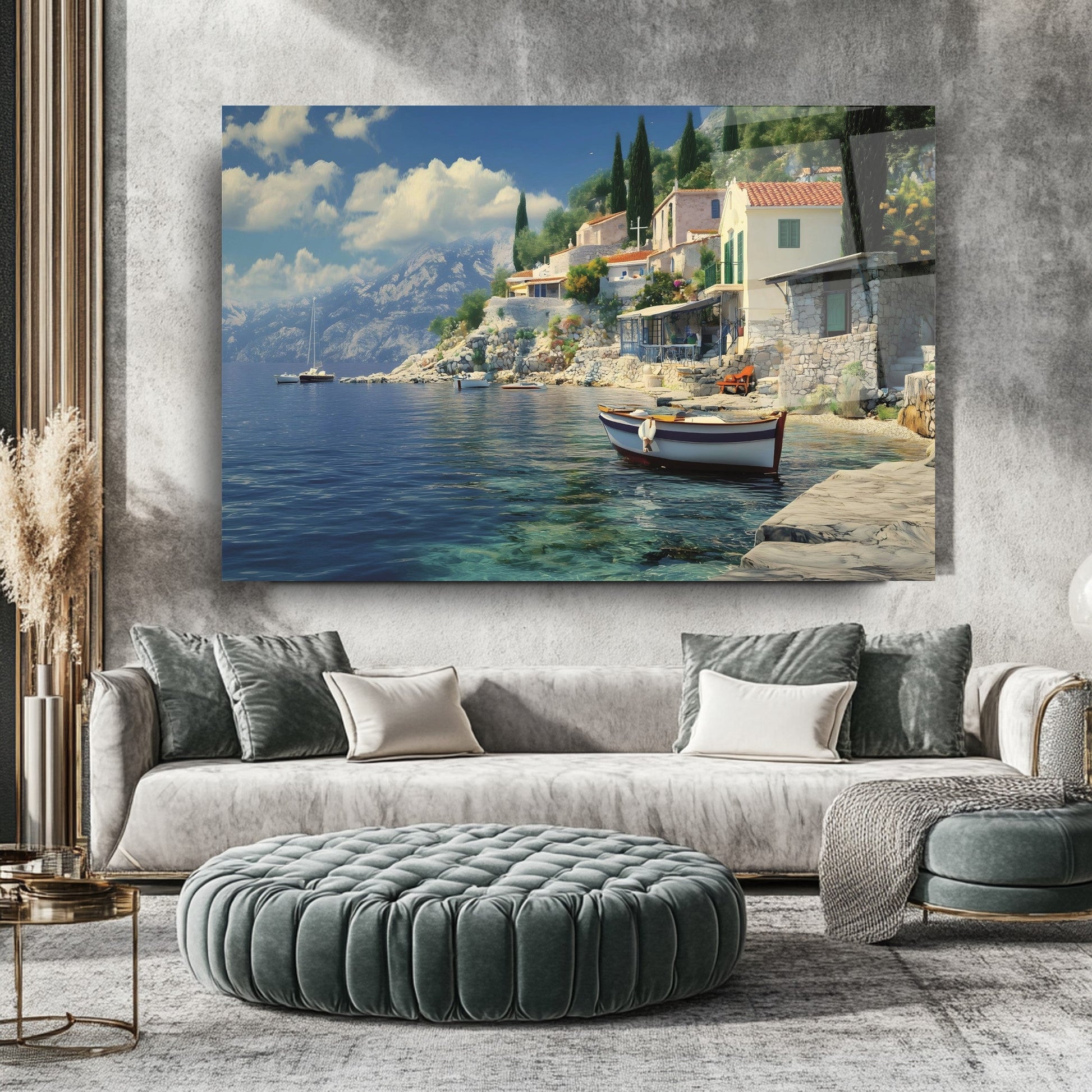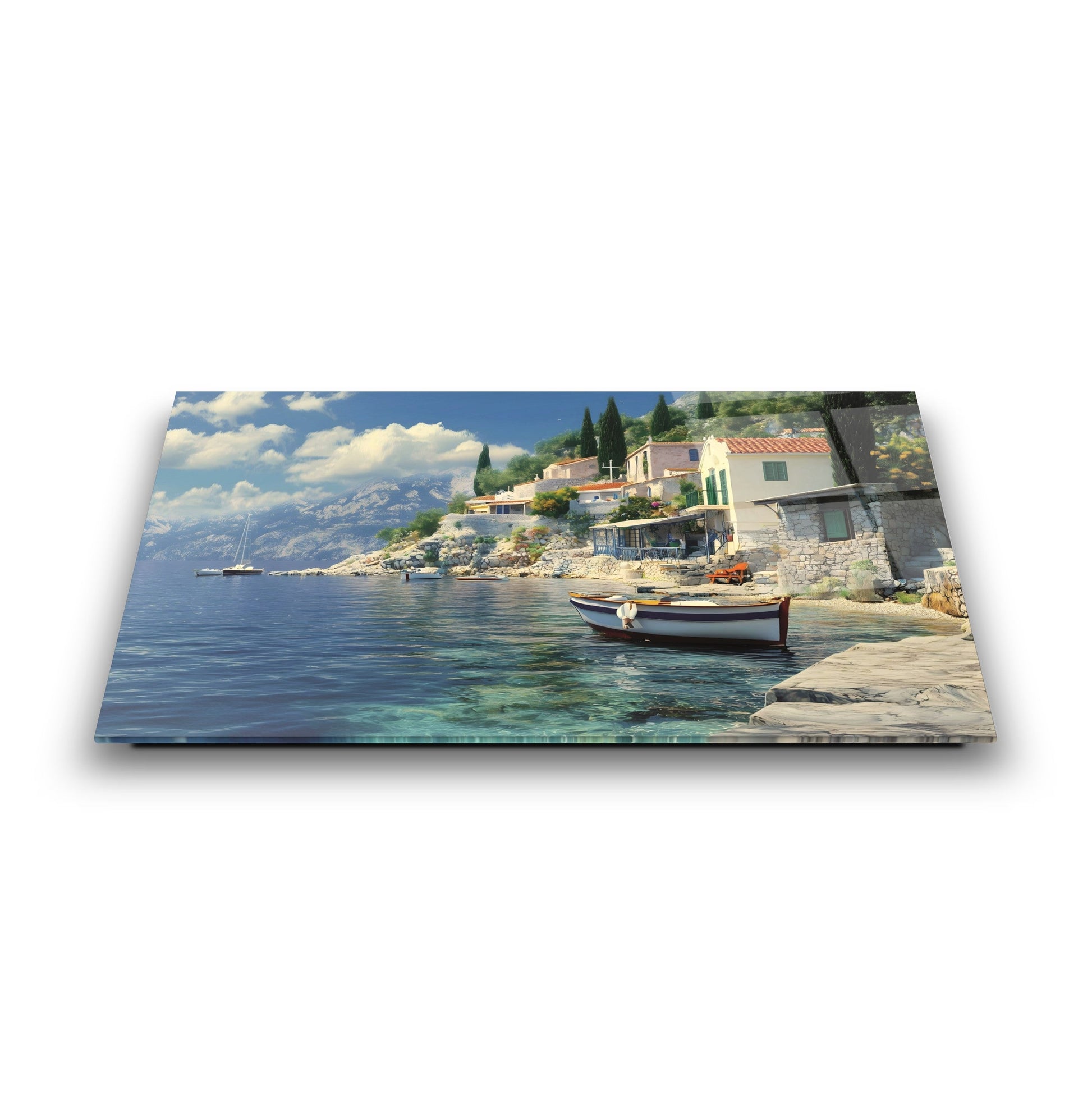 Mekanlarınıza Dingin Bir Deniz Esintisi: Deniz ve Sandal Manzarası Cam Tablo