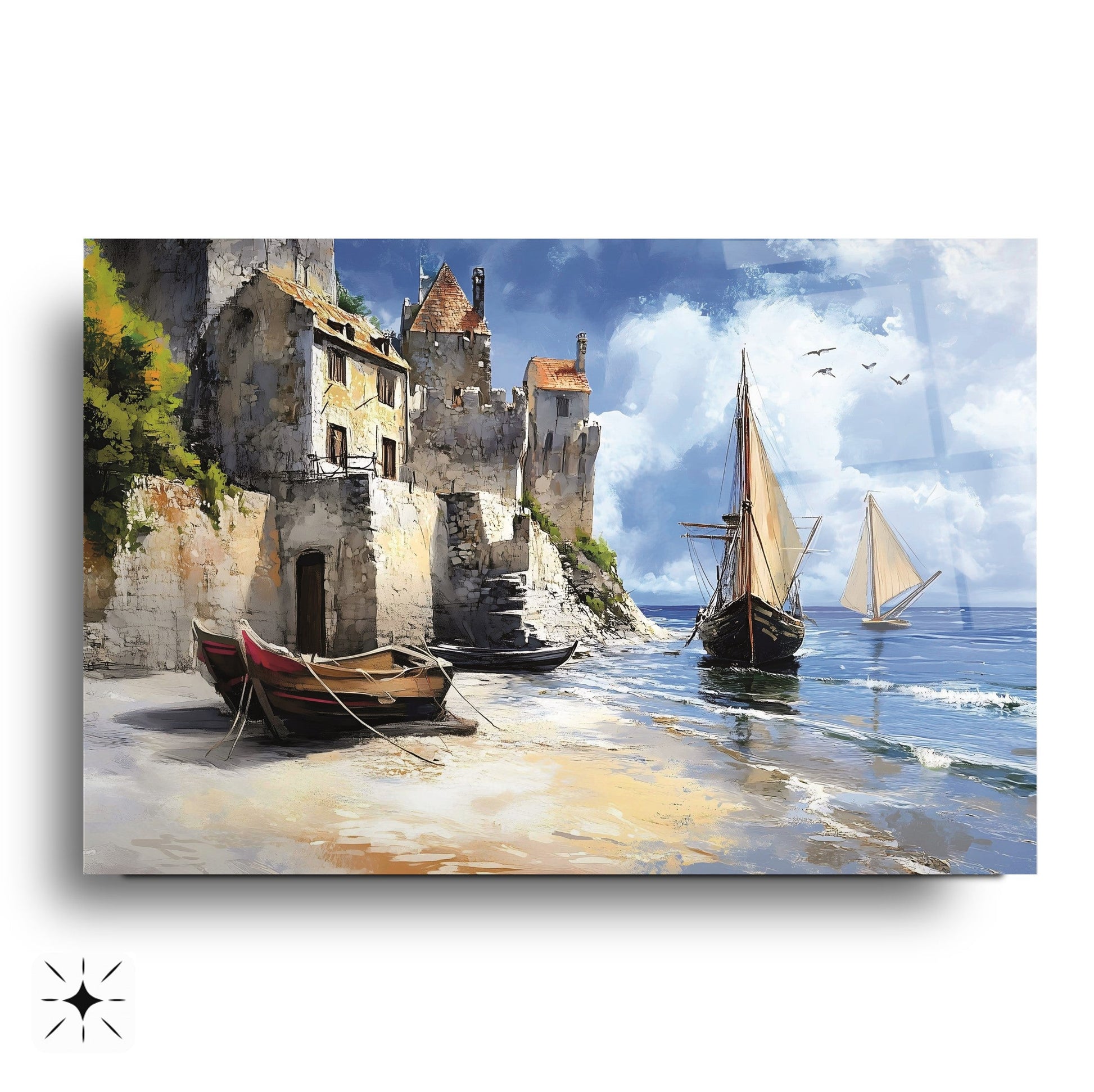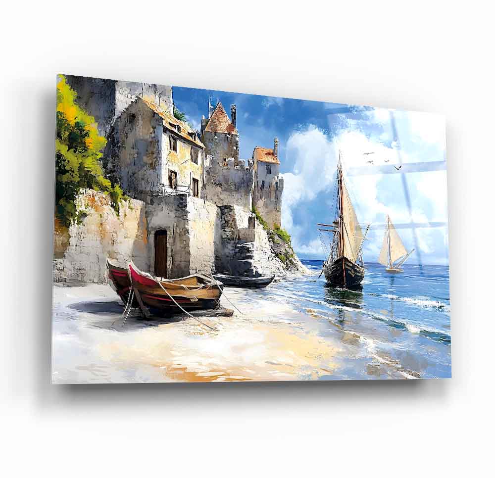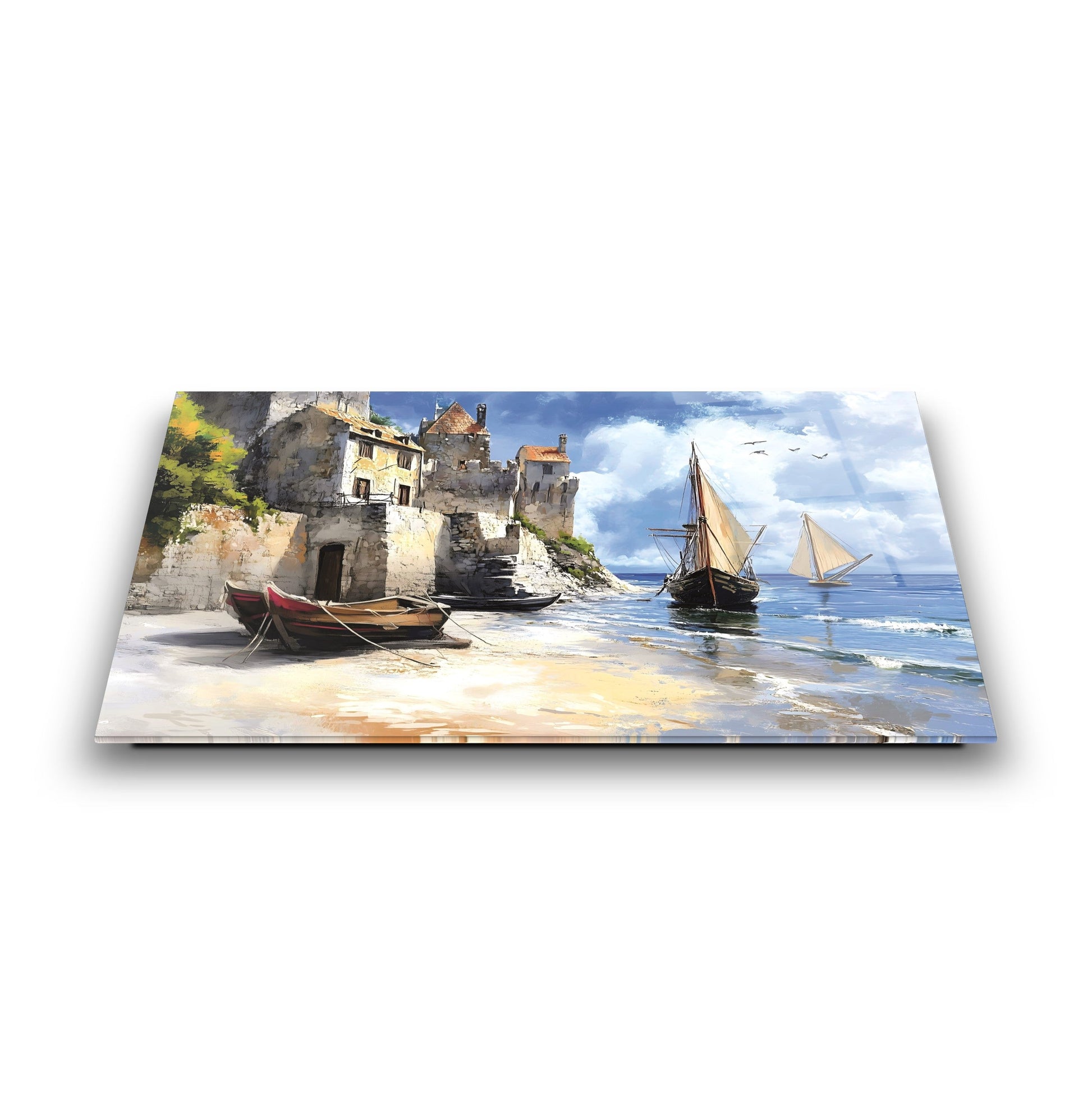 Mekanlarınıza Deniz Esintisi ve Yelkenli Gemi Huzuru: Deniz ve Sandal Manzarası Cam Tablo