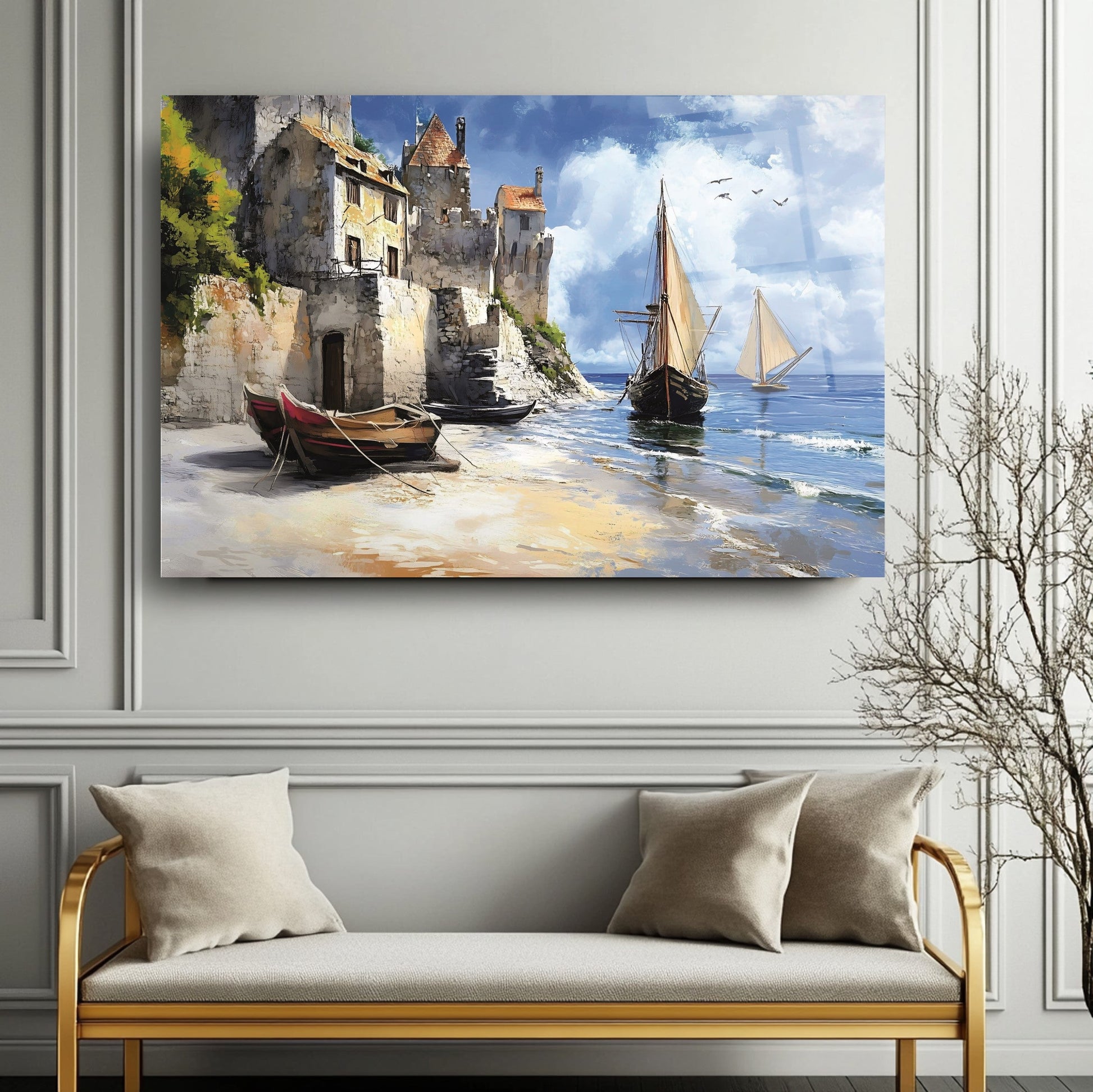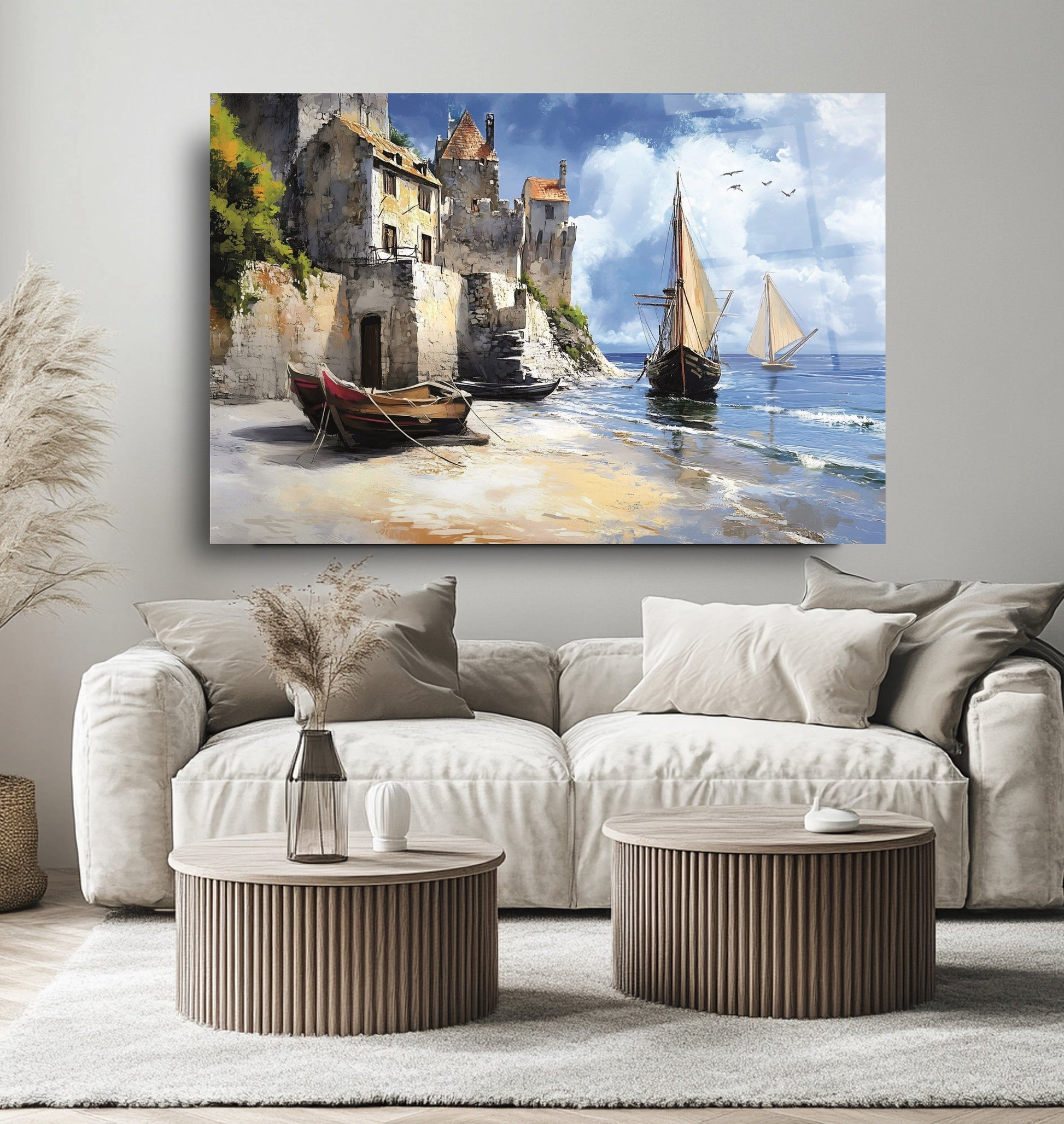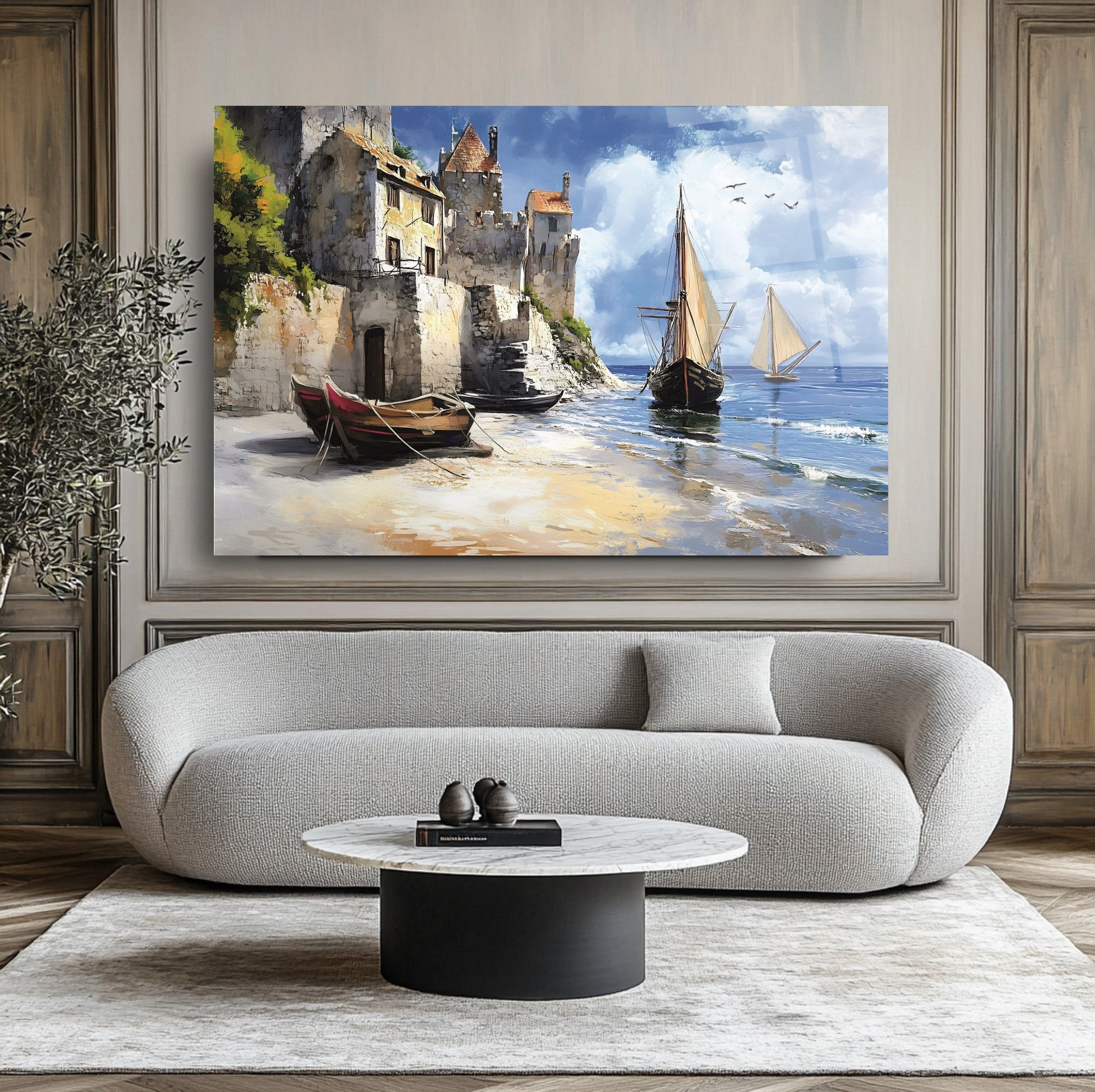 Mekanlarınıza Deniz Esintisi ve Yelkenli Gemi Huzuru: Deniz ve Sandal Manzarası Cam Tablo