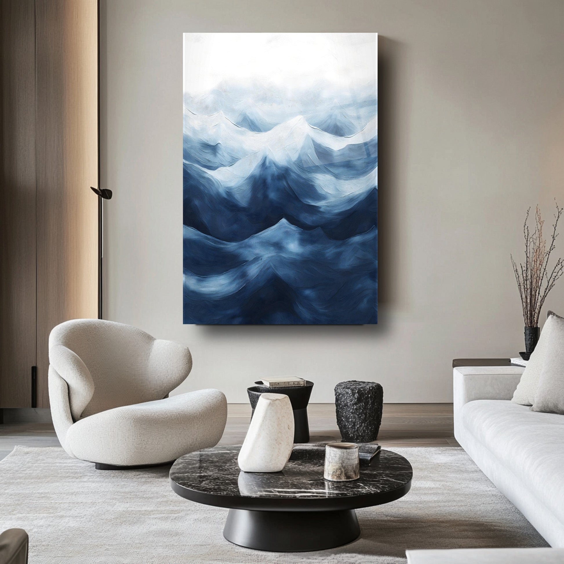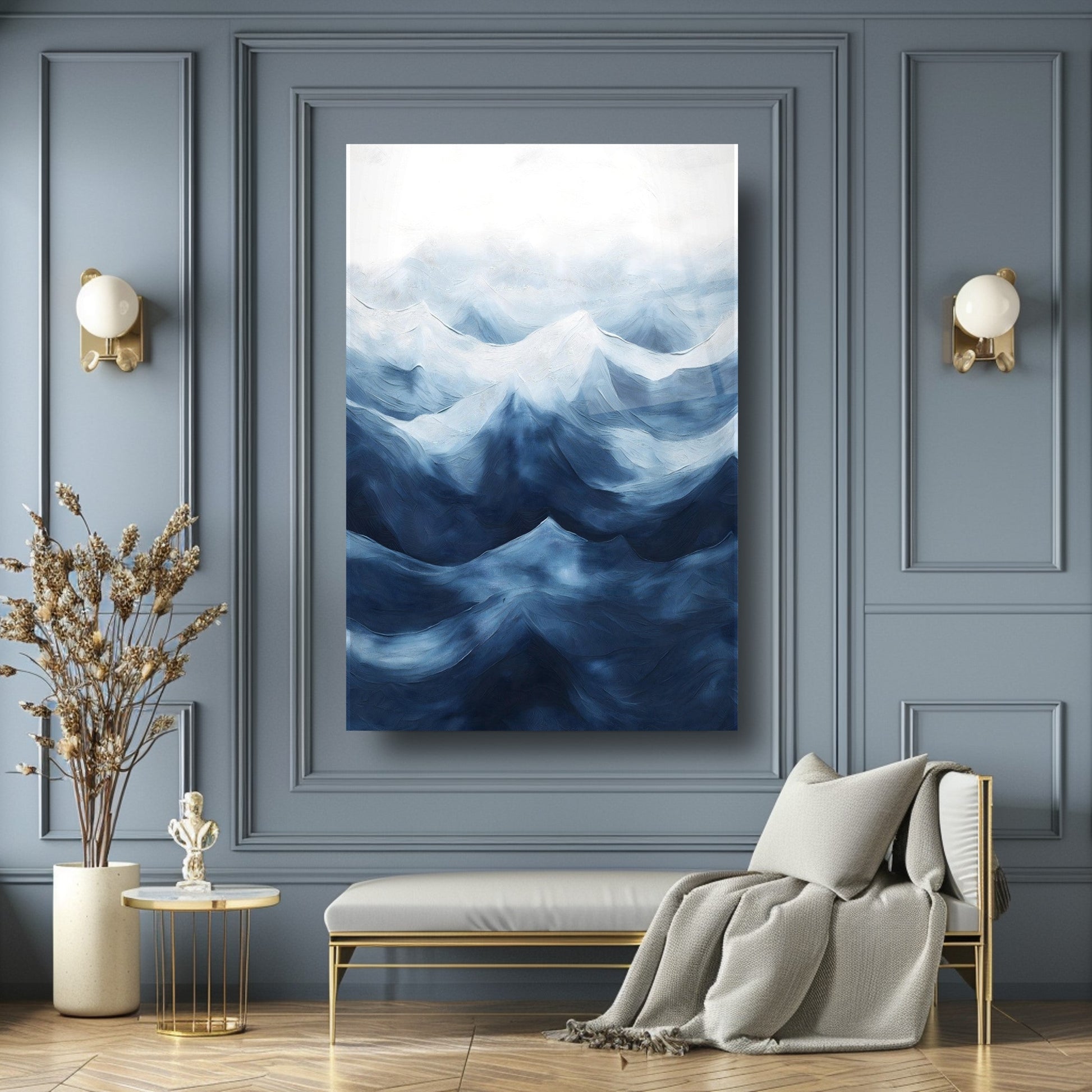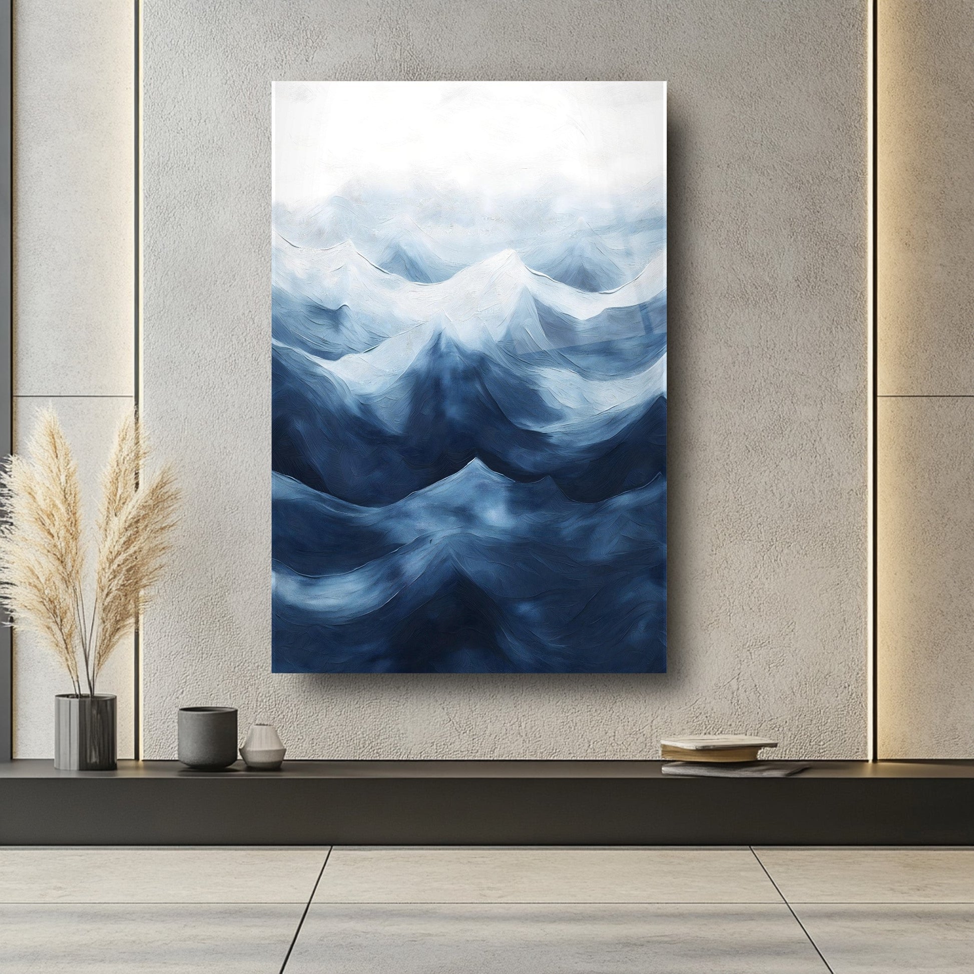 2025'in dekor trendlerine uygun olarak tasarlanmış bu cam tablo, mavi tonlarla bezenmiş soyut dağ siluetleri ve duman efektiyle mekânınıza dinginlik ve derinlik katar. Cam tablo ve temperli cam malzemesi estetik ve dayanıklılığı bir arada sunar. 4 mm ultra-clear cam, darbelere karşı ekstra koruma sağlarken rodajlanmış kenarlar güvenli kullanım sunar. UV baskı teknolojisi ile canlı ve solmayan renklerle hazırlanmıştır. Çerçevesiz ve kolay montajlı yapısıyla modern duvar dekoru arayanlar için ideal çözüm. Salon, antre veya ofisler için mükemmel seçim.