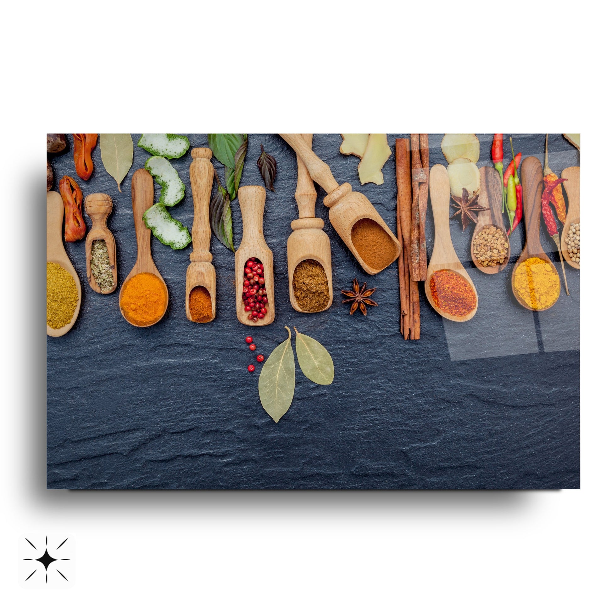 Mutfak ve Mekanlarınıza Lezzetli Bir Dokunuş: Renkli Baharatlar Duvar Dekorasyon Cam Tablo