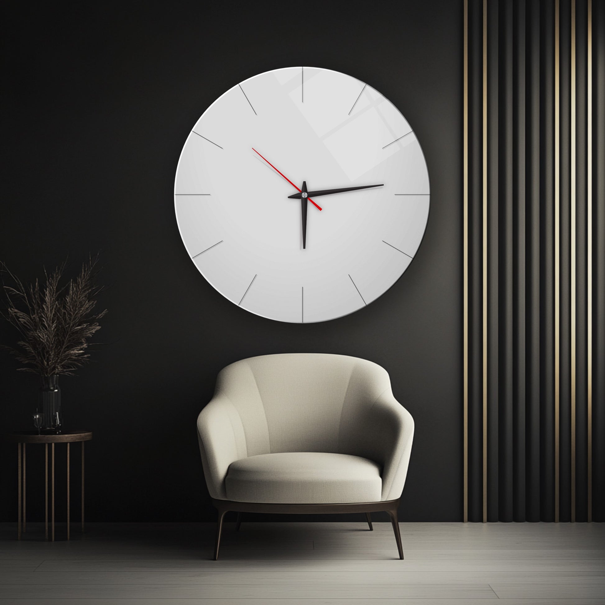 Minimalist beyaz tasarımıyla bu büyük boy cam tablo saat, sade ve şık bir dekorasyon için idealdir. Kırılmaz cam yapısıyla dayanıklı olan ürün, salon ve ofislerde hem işlevsel hem estetik bir dokunuş sağlar. Modern çizgileri ve düz zemin arkaplanıyla her mekana uyum sağlayan zarif bir cam tablo saat modelidir.
