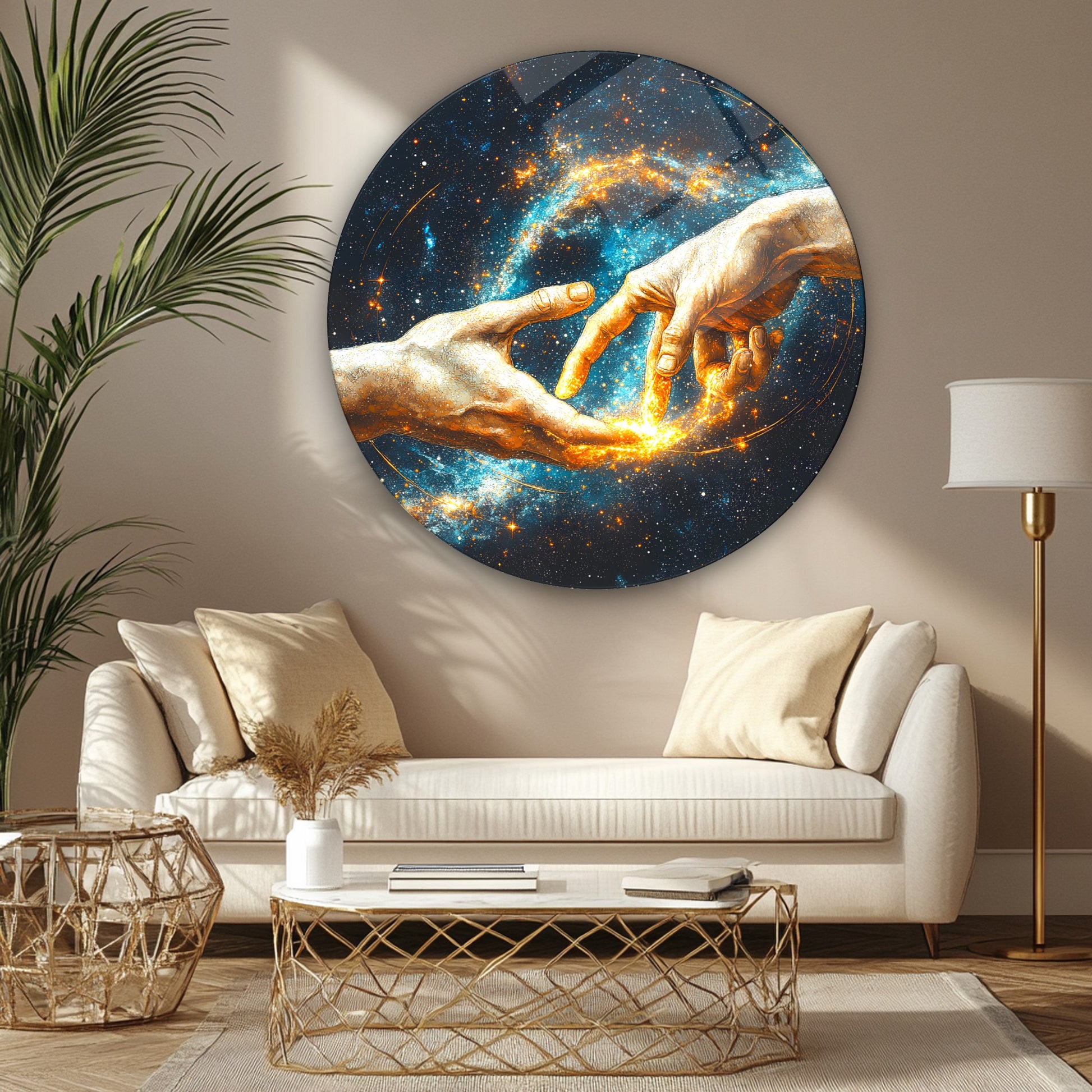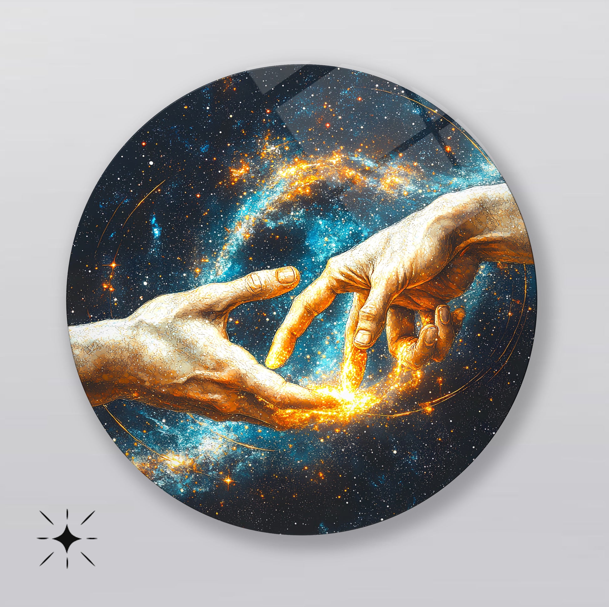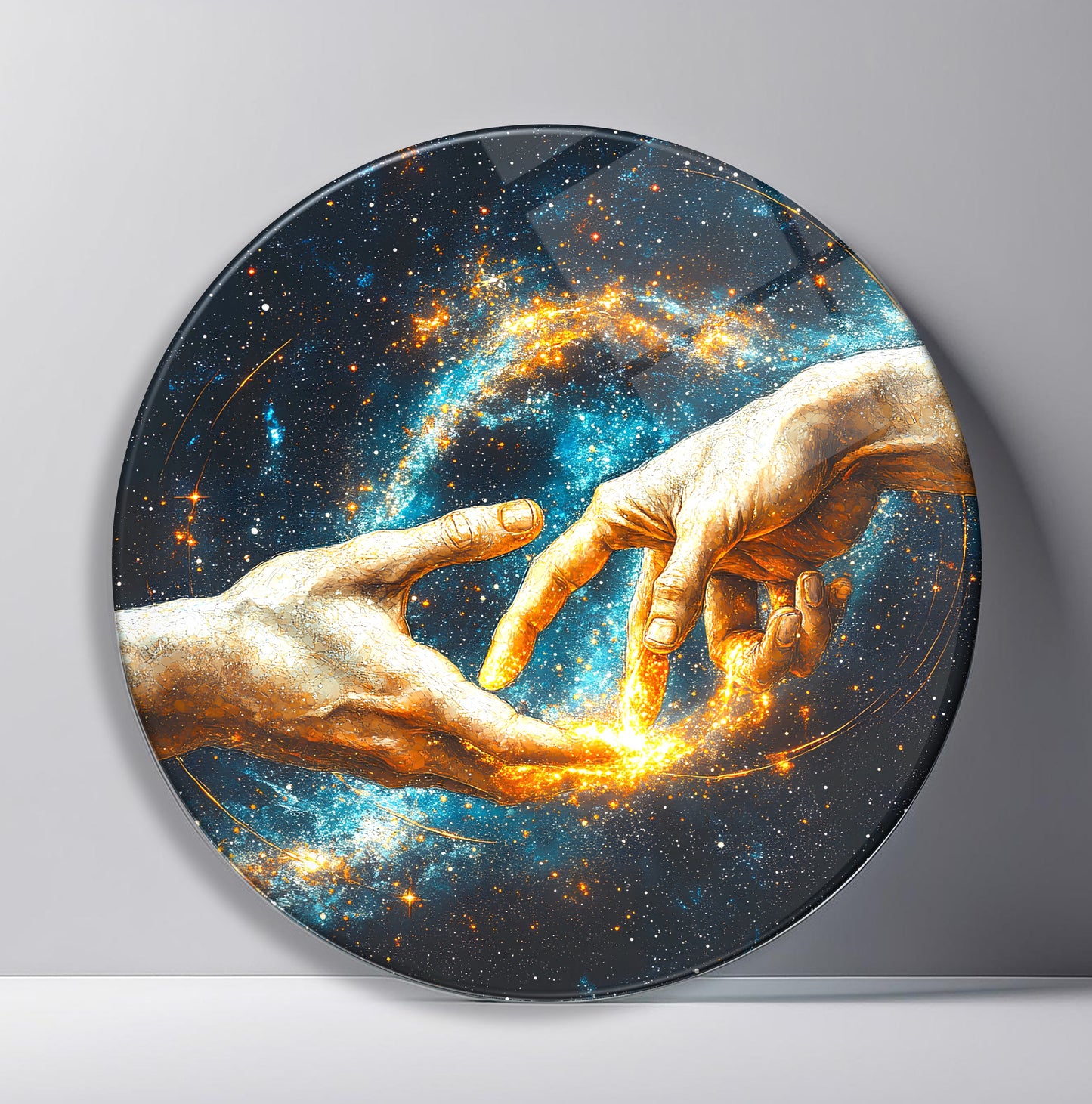 Ellerin Kavuşması Yuvarlak Cam Tablo