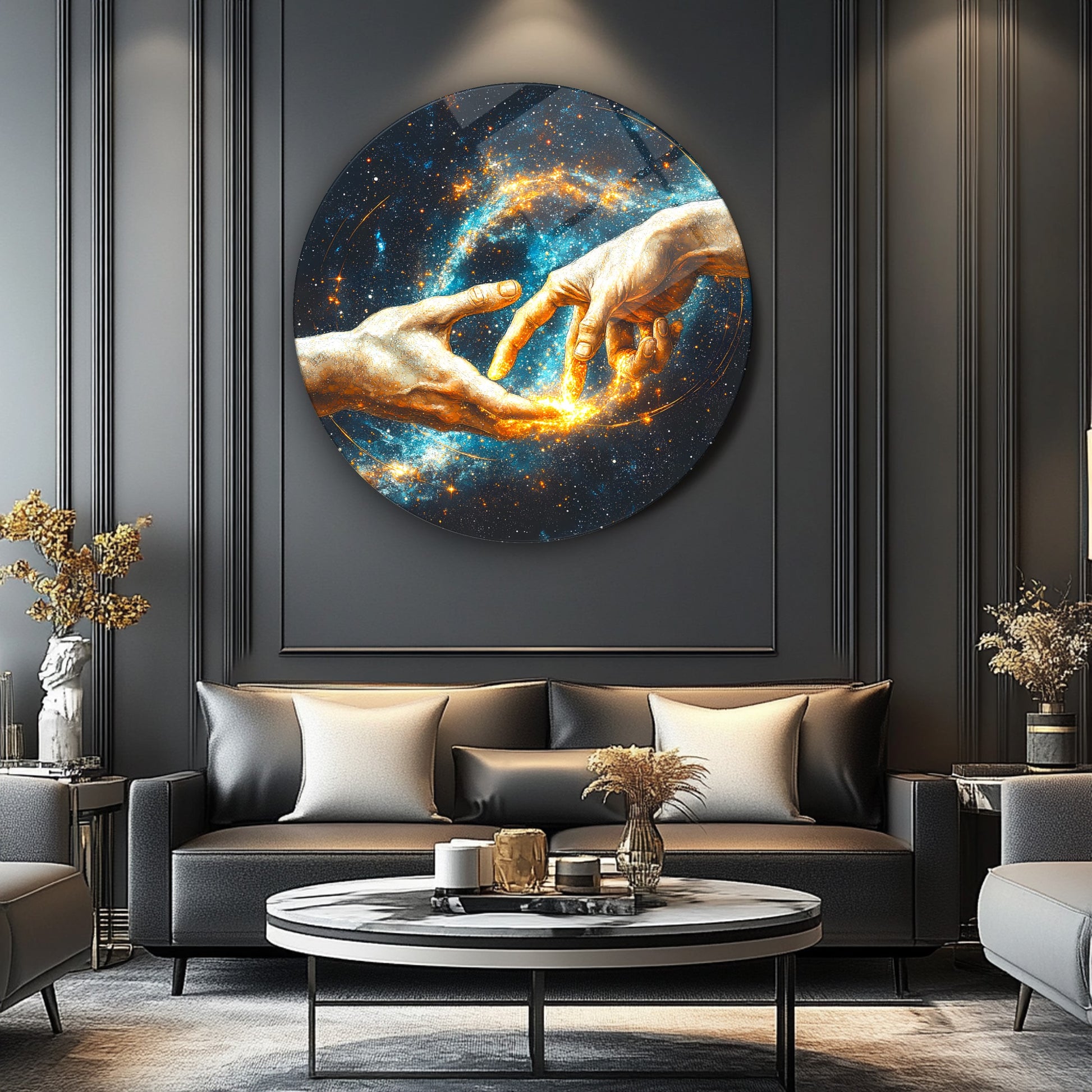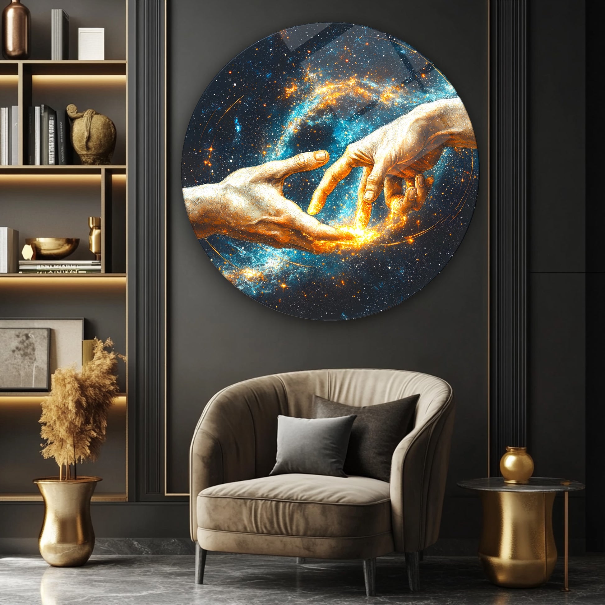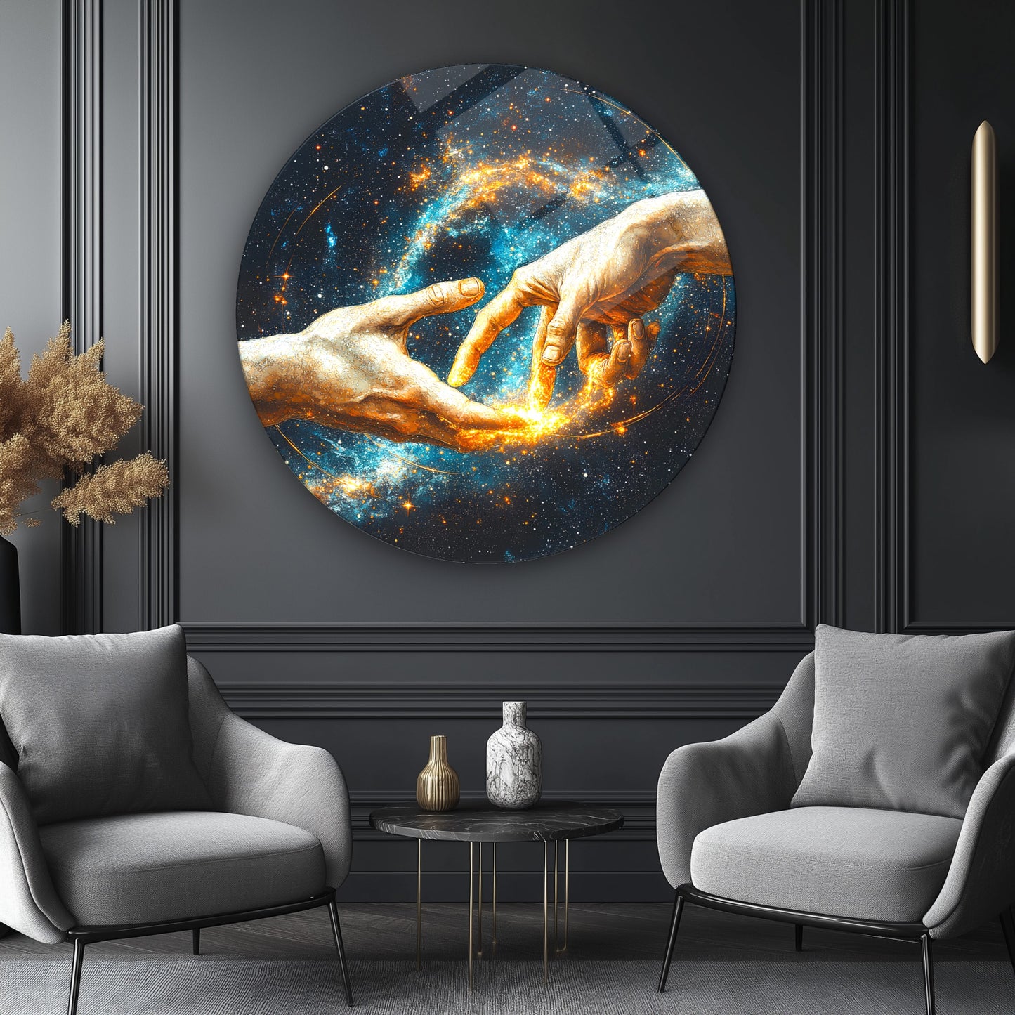 Ellerin Kavuşması Yuvarlak Cam Tablo